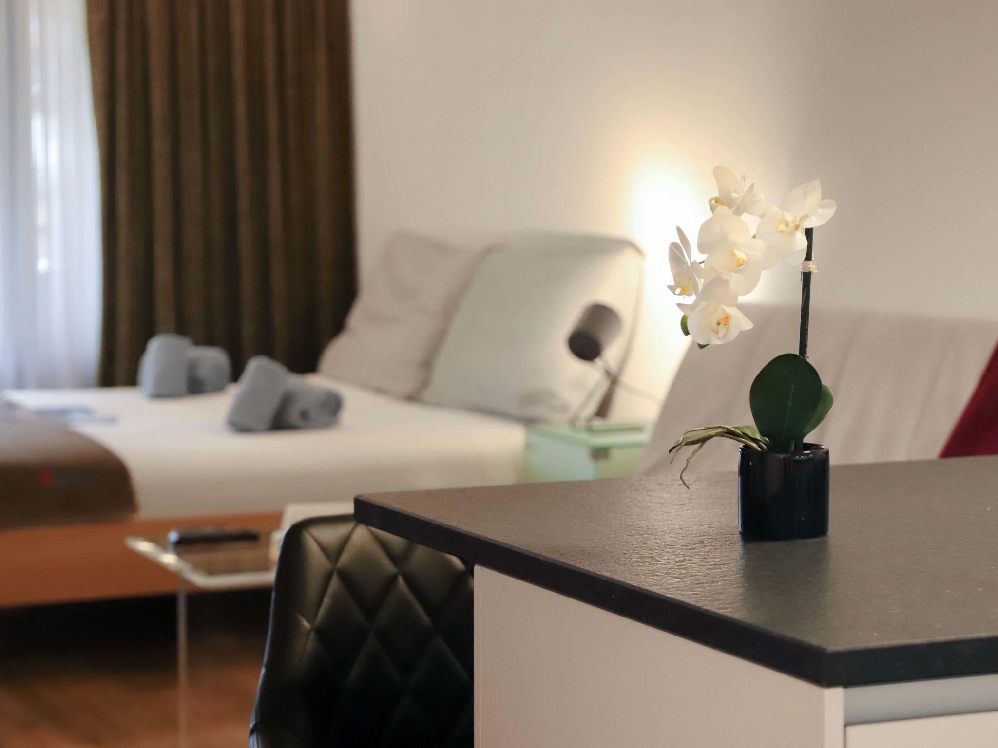 "Pasadena", 1-Zimmer-Wohnung 46 m2 im 1. Stock. Geräumig und hell, schön und gemütlich eingerichtet: Wohn-/Schlafzimmer mit 1 Doppelbett (2 x 90 cm, Länge 200 cm), Esstisch und TV. Ausgang zum Balkon. Offene Küche (4 Induktionskochplatten, Toaster, Wasserkocher, Mikrowelle, Tiefkühler, elektrische Kaffeemaschine). Bad/WC. Balkon. Balkonmöbel. Seitliche Sicht auf die Berge. Zur Verfügung: Haartrockner. Internet (Wireless LAN, gratis). Bitte beachten: Nichtraucher-Unterkunft.