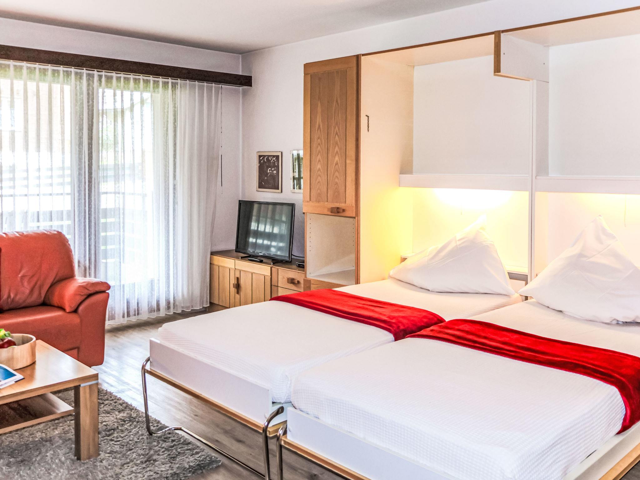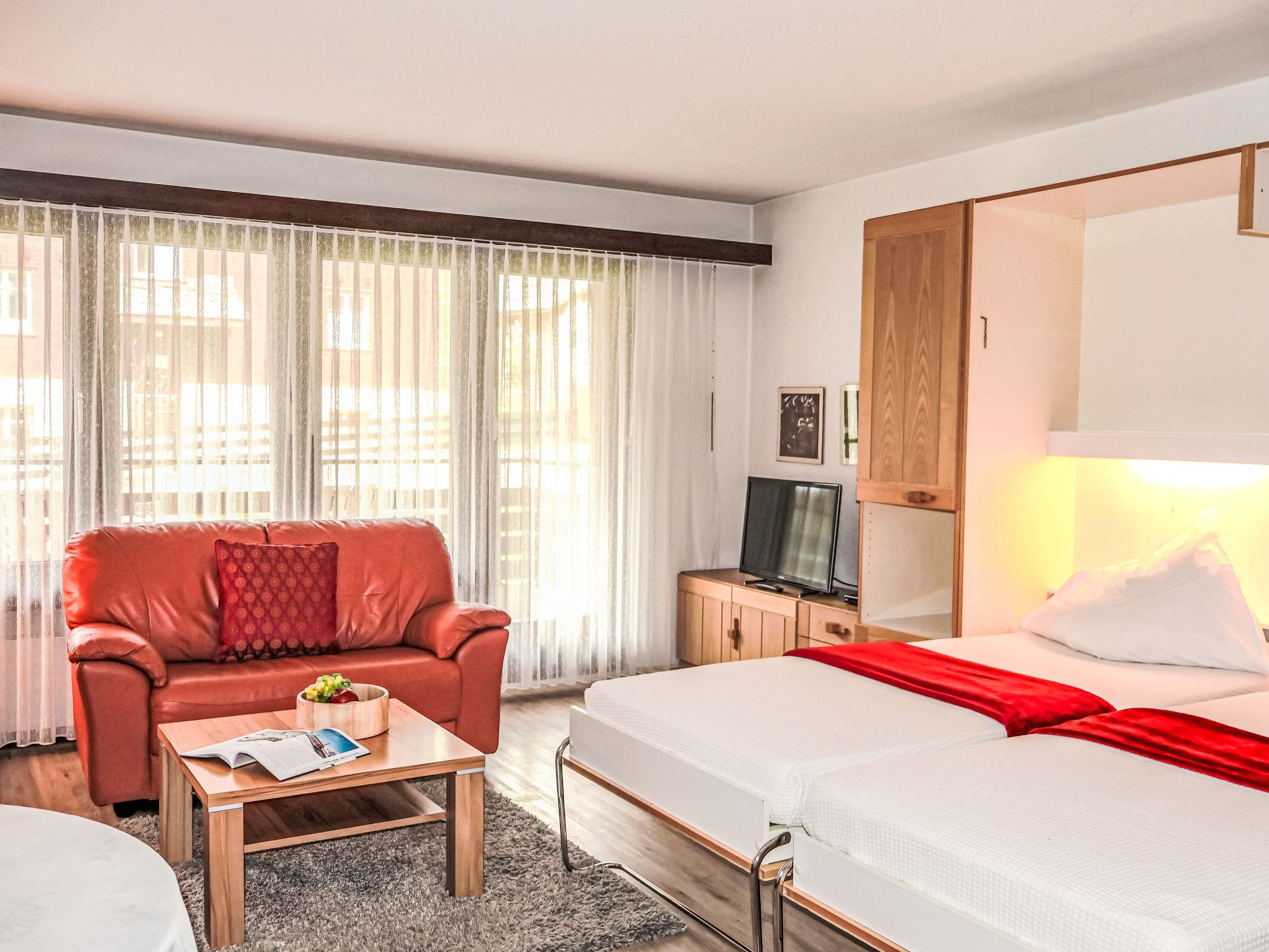 "Pasadena 5", 1-Zimmer-Wohnung 25 m2 im 1. Stock. Hell, geschmackvoll und gemütlich eingerichtet: Wohn-/Schlafzimmer mit 2 Wandschrankbetten (90 cm, Länge 200 cm), Esstisch und Digital-TV. Ausgang zum Balkon. Küche im Eingang (Backofen, Geschirrspüler, 4 Glaskeramikplatten, Toaster, Wasserkocher, Tiefkühler, elektrische Kaffeemaschine). Bad/WC. Parkettboden. Balkon. Balkonmöbel. Seitliche Sicht auf die Berge und das Matterhorn. Zur Verfügung: Haartrockner. Internet (WLAN, gratis). Bitte beachten: Nichtraucher-Unterkunft.