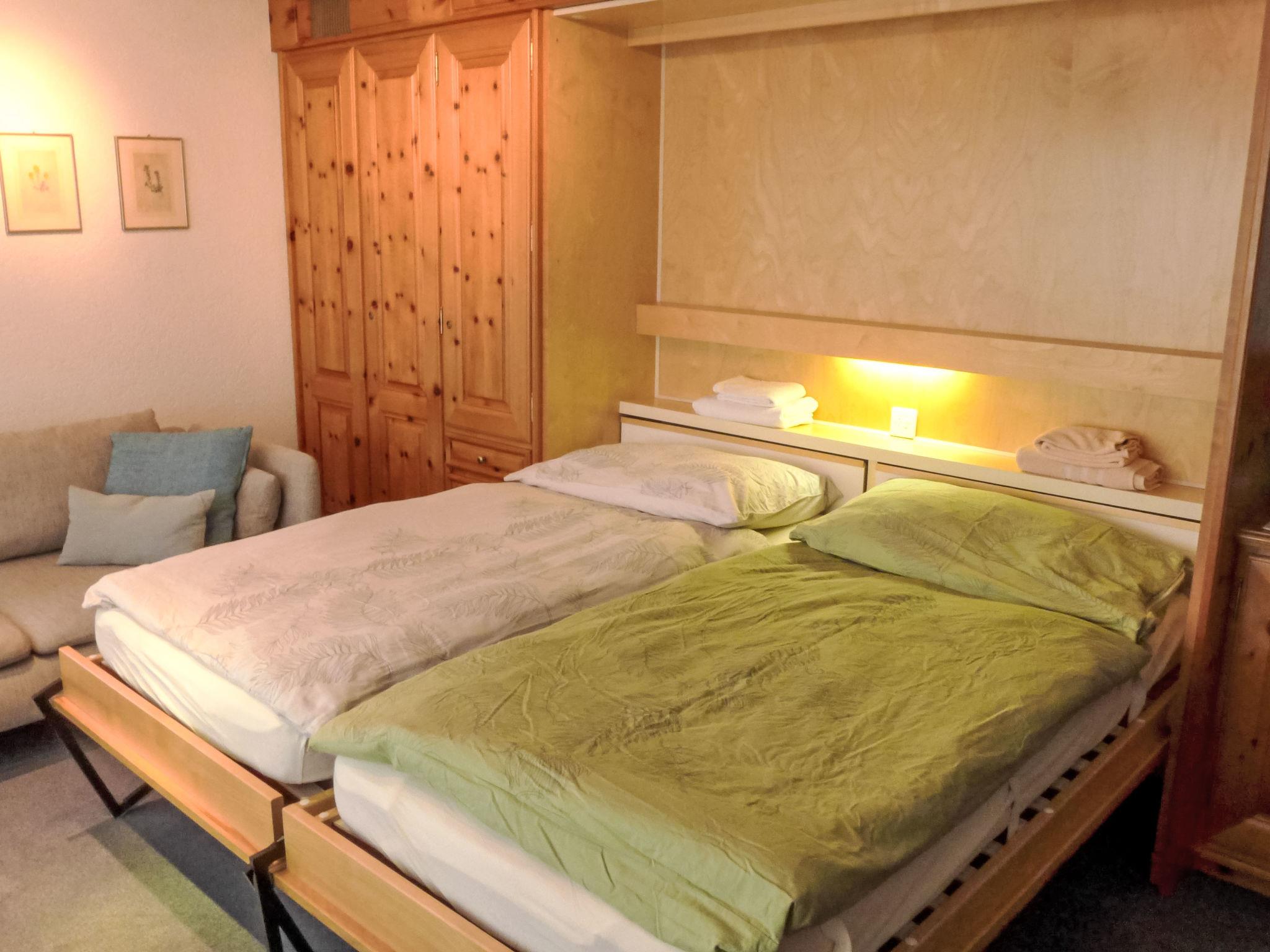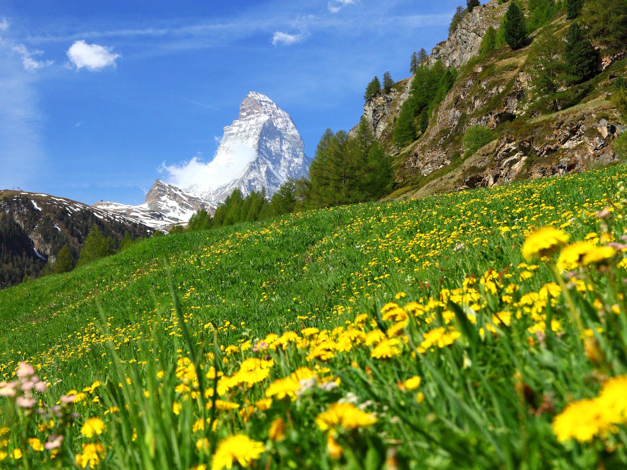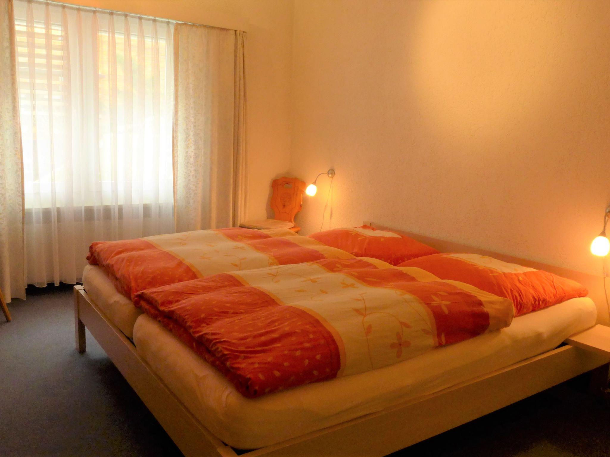 2-Zimmer-Wohnung 60 m2, im Erdgeschoss. Hell, einfach und komfortabel eingerichtet: Wohn-/Schlafzimmer mit 2 Wandschrankbetten (90 cm, Länge 200 cm), Esstisch und TV. Ausgang zum Balkon. 1 Doppelzimmer mit 1 Doppelbett (2 x 90 cm, Länge 200 cm). Kleine Küche (4 Kochplatten, Backofen, Geschirrspüler, Toaster, Wasserkocher, elektrische Kaffeemaschine, Racletteofen, Fondue Set (Chinoise, Käse)). Bad/WC. Balkon. Balkonmöbel. Schöne Sicht auf das Matterhorn. Zur Verfügung: Internet (Wireless LAN, gratis). Bitte beachten: Nichtraucher-Unterkunft.