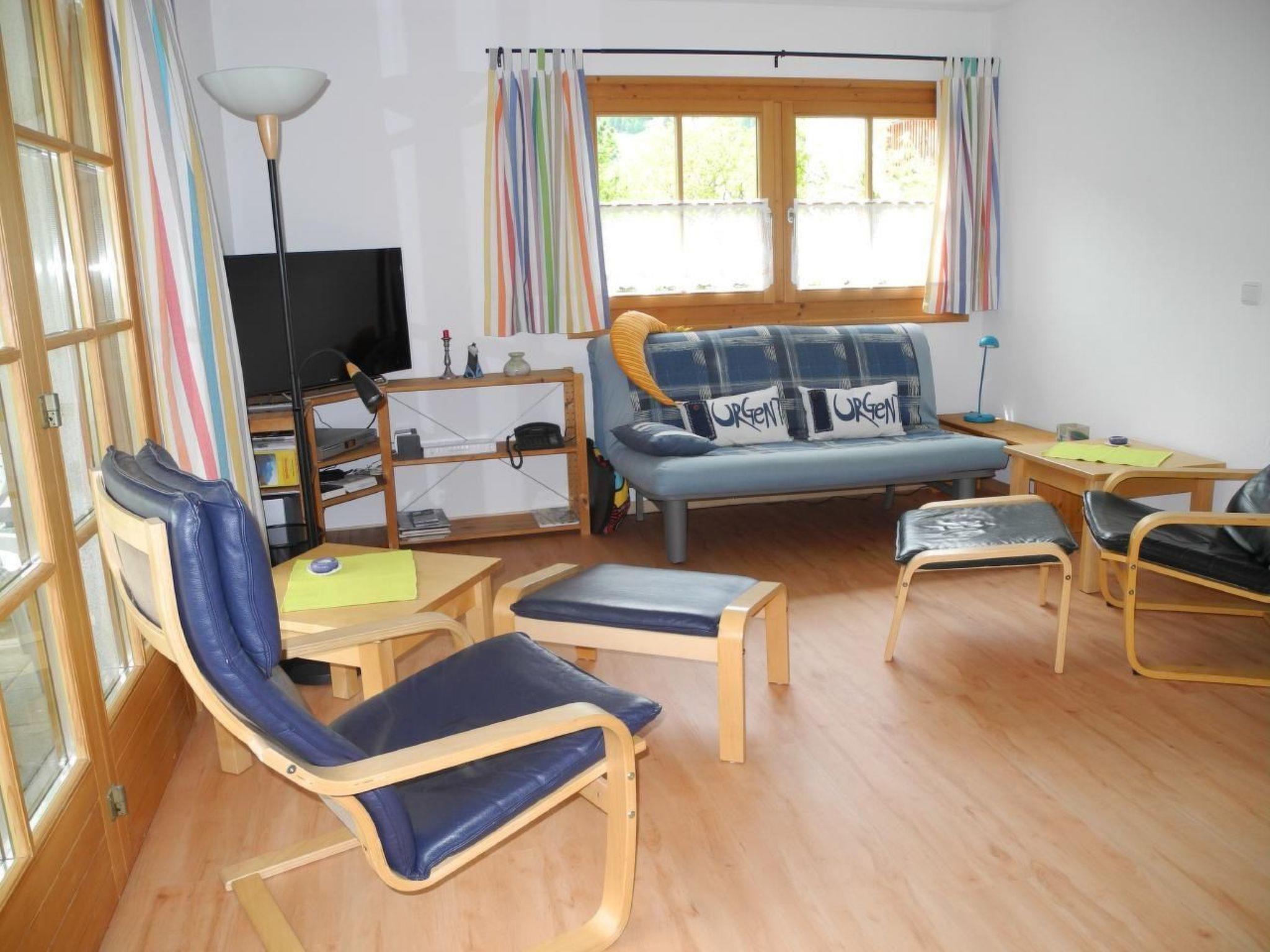 Helle, freundlich eingerichtete 2 Zimmerwohnung im Erdgeschoss mit direktem Blick auf die angrenzenden Wiesen. Im Winter besteht direkter Zugang zur Loipe. Die Wohnung ist für 2-4 Personen geeignet und verfügt über eine gut eingerichtete Küche. Freier Internetzugang (WLAN und Kabel), Fernseher mit Rückspulfunktion sind vorhanden. Eine grosszügige, überdachte Terrasse und der anschliessende Garten laden zum Entspannen ein. Für Aktive stehen eine Slackline und eine Schaukel im Garten. Ein Parkplatz ist vor dem Haus. Im Winter kann die Skiausrüstung im Keller gelagert werden und der Wachsraum mitbenutzt werden.