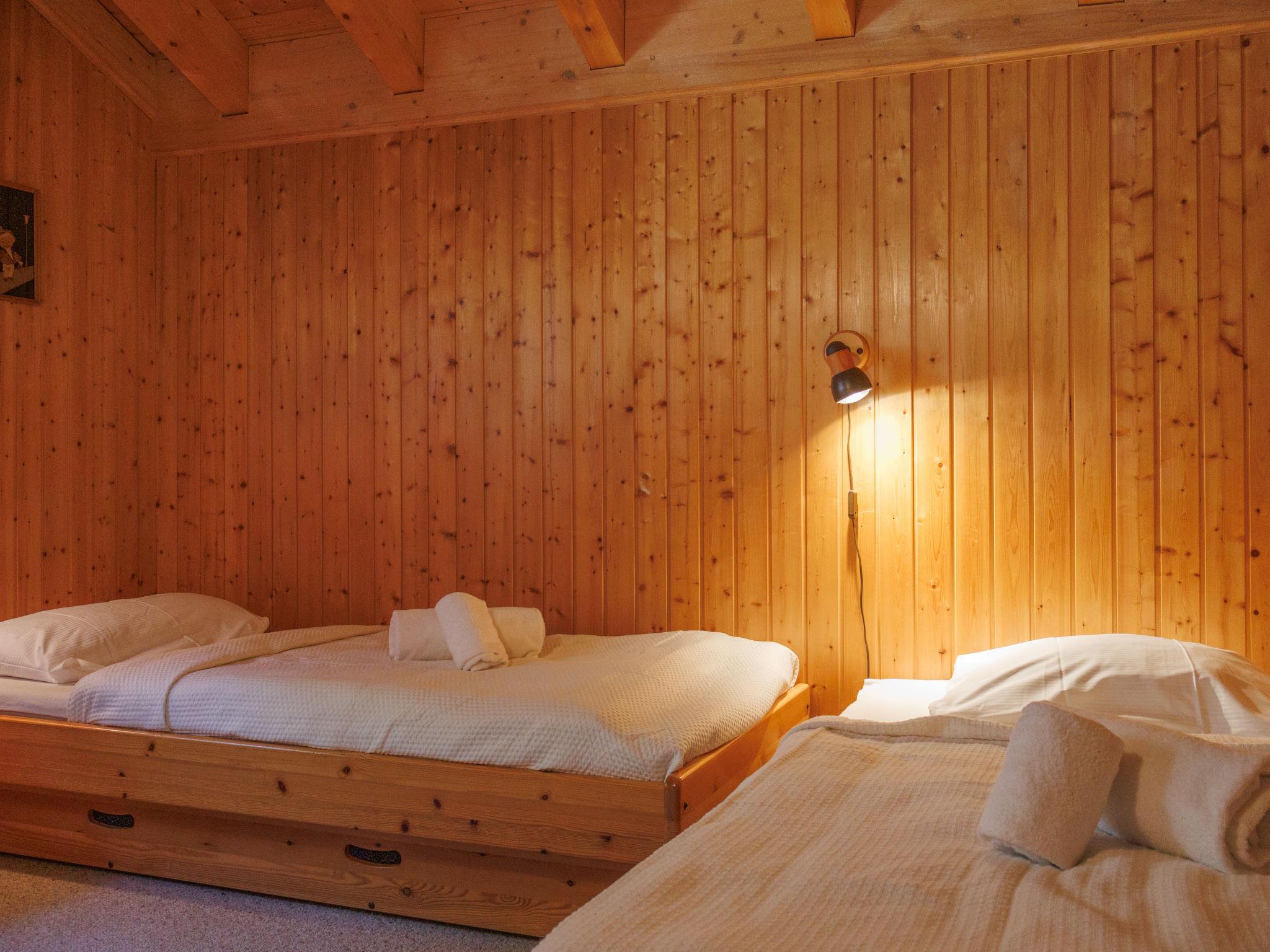 "Notre Rêve", 4-Zimmer-Chalet 120 m2 auf 2 Stockwerken. Geschmackvoll und gemütlich eingerichtet: Wohn-/Esszimmer mit Schwedenofen, Essecke, Sat-TV, Flachbildschirm und Radio. Ausgang zum Gartensitzplatz. Offene Küche (4 Kochplatten, Backofen, Geschirrspüler, Toaster, Wasserkocher, Mikrowelle, elektrische Kaffeemaschine, Kapseln für die Kaffeemaschine (Filter), Racletteofen, Fondue Set (Chinoise, Käse)) mit Durchreiche. Sep. WC. Obergeschoss: 3 Zimmer, jedes Zimmer mit 2 Betten (90 cm, Länge 200 cm). Bad/Dusche/WC. Balkon, grosser Gartensitzplatz. Terrassenmöbel. Herrliche Sicht auf die Berge, die Skipiste und die Landschaft. Zur Verfügung: Waschmaschine. Internet (WLAN, extra). Parkplatz beim Haus. Bitte beachten: Nichtraucher-Unterkunft.