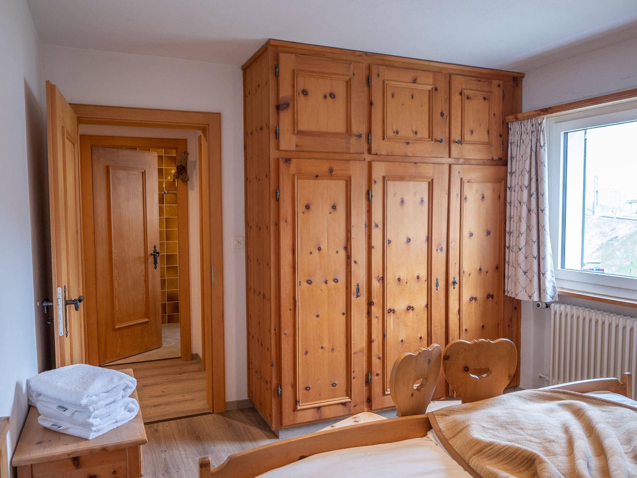 "Chesa Clüs 6", 3-Zimmer-Wohnung 85 m2 im 2. Stock. Geräumig, einfach und gemütlich eingerichtet: grosses Wohn-/Esszimmer mit TV. Ausgang zum Balkon. 1 Zimmer mit 1 x 2 Etagenbetten (90 cm, Länge 190 cm). 1 Doppelzimmer mit 2 Betten (90 cm, Länge 200 cm). Küche (Backofen, Geschirrspüler, 4 Glaskeramikplatten, Toaster, Wasserkocher, Mikrowelle, elektrische Kaffeemaschine, Kapseln für die Kaffeemaschine (Nespresso) extra, Racletteofen, Fondue Set (Chinoise, Käse)). Bad, sep. WC. Holzdielenboden. Balkon. Balkonmöbel. Sicht auf die Berge und die Landschaft. Zur Verfügung: Bügeleisen, Haartrockner. Internet (Wireless LAN, gratis). Parkplatz Nr. 6 (1 Auto) beim Haus. Bitte beachten: geeignet für Familien. Nichtraucher-Unterkunft, Nichtraucher-Haus. Kein Fahrstuhl. Flexibilität bei der Bettenaufteilung: Es stehen mehr Schlafmöglichkeiten zur Verfügung als die maximal zugelassene Personenzahl, diese darf dennoch nicht überschritten werden.