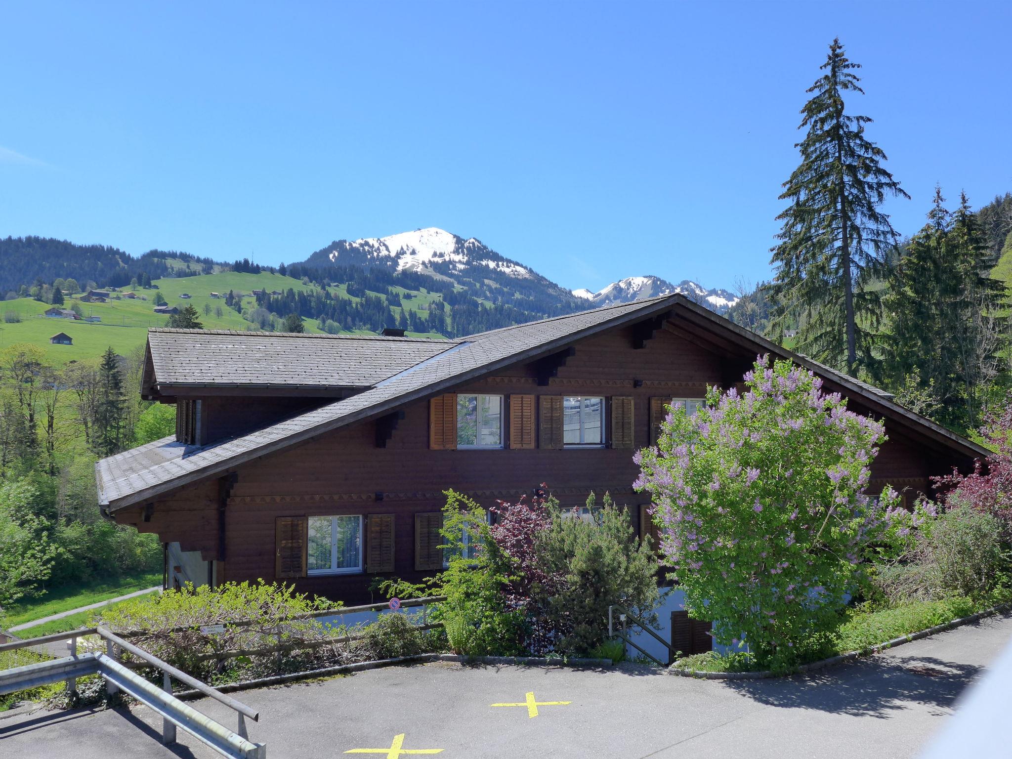 Mehrfamilienhaus auf 3 Stockwerken. Sonnige, erhöhte Lage in einem Wohnquartier. Im Hause: Einstellraum für Fahrräder, Skiraum. Parkplatz beim Haus. Einkaufsgeschäft, Restaurant 200 m, Zentrum zu Fuss in 5 Minuten erreichbar, Bushaltestelle 200 m, Bahnstation 500 m, Freibad 900 m. Golfplatz (18 Loch) 10 km, Tennis 700 m, Wanderwege ab Haus 50 m, Gondelbahn 750 m, Skisportanlagen 2 km, Schlittelbahn 8 km, Langlaufloipe 8 km. Nahe gelegene Sehenswürdigkeiten: Gstaad, Glacier 3000. Bekannte Skigebiete sind gut erreichbar: Rinderberg - Skiwelt Gstaad, Sparenmoos Langlaufparadies. Wandergebiete: Naturschutzgebiet Sparenmoos.