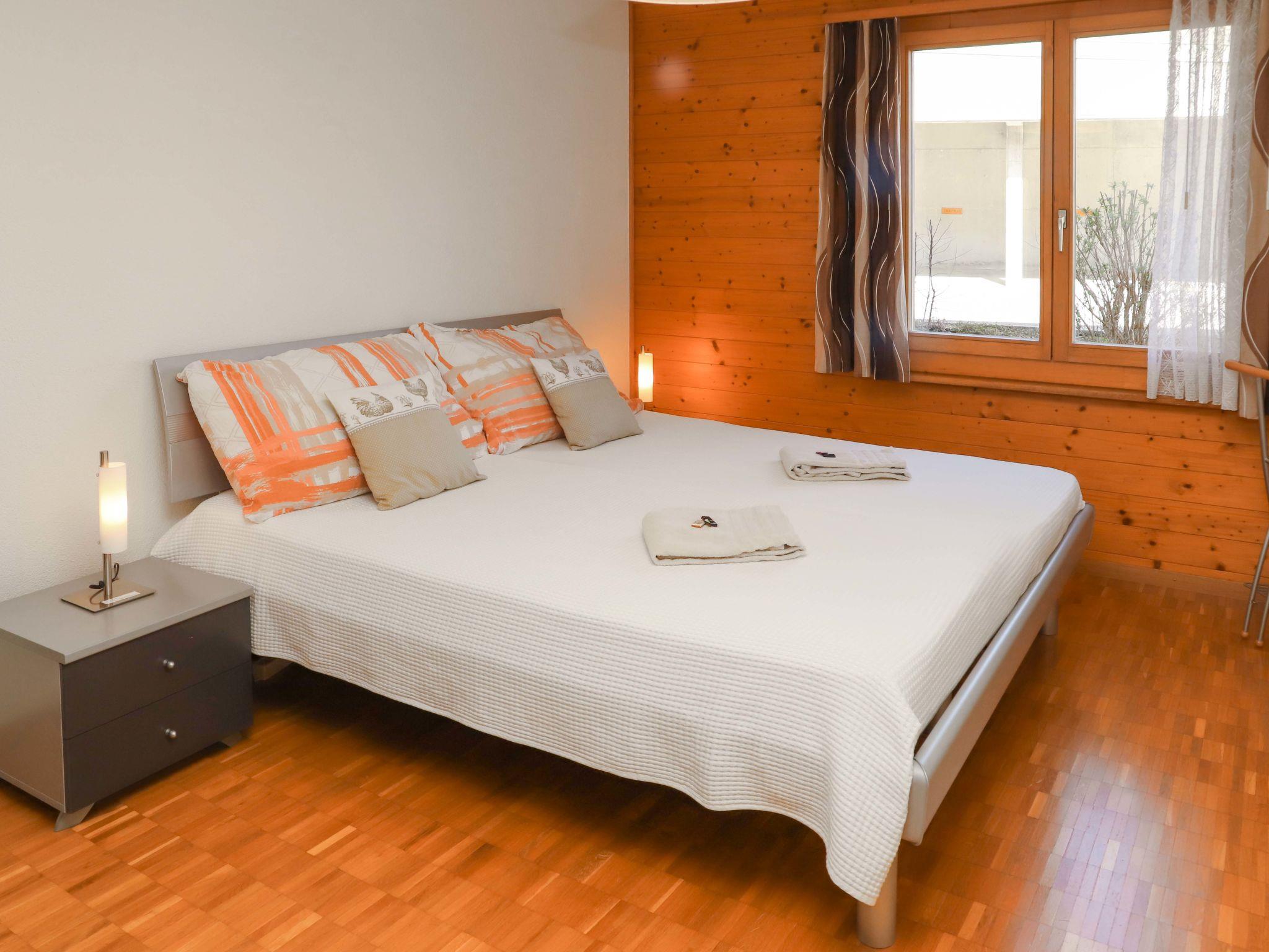 "Belmi", 4-Zimmer-Wohnung 90 m2 im 1. Stock. Geräumig und hell, komfortabel und geschmackvoll eingerichtet: offenes Wohn-/Esszimmer mit Esstisch und TV (Flachbildschirm), Stereoanlage und DVD. Ausgang zum Balkon. 2 Zimmer, jedes Zimmer mit 1 Doppelbett (2 x 90 cm, Länge 200 cm). 1 Zimmer mit 2 Betten (90 cm, Länge 200 cm), TV und Radio. Offene Küche (Backofen, Geschirrspüler, 4 Glaskeramikplatten, Toaster, Wasserkocher, Mikrowelle, elektrische Kaffeemaschine, Kapseln für die Kaffeemaschine (Nespresso) extra, Racletteofen, Fondue Set (Käse)). Bad/WC, sep. WC. Fussbodenheizung. Balkon 9 m2, Südlage. Balkonmöbel, Elektrogrill. Herrliche Panoramasicht auf die Berge, die Landschaft und die Ortschaft. Zur Verfügung: Bügeleisen, Haartrockner. Internet (Wireless LAN, gratis). Parkplatz (überdacht). Bitte beachten: Nichtraucher-Unterkunft. Maximal 1 Haustier/Hund erlaubt. Rauchmelder, Feuerlöscher.