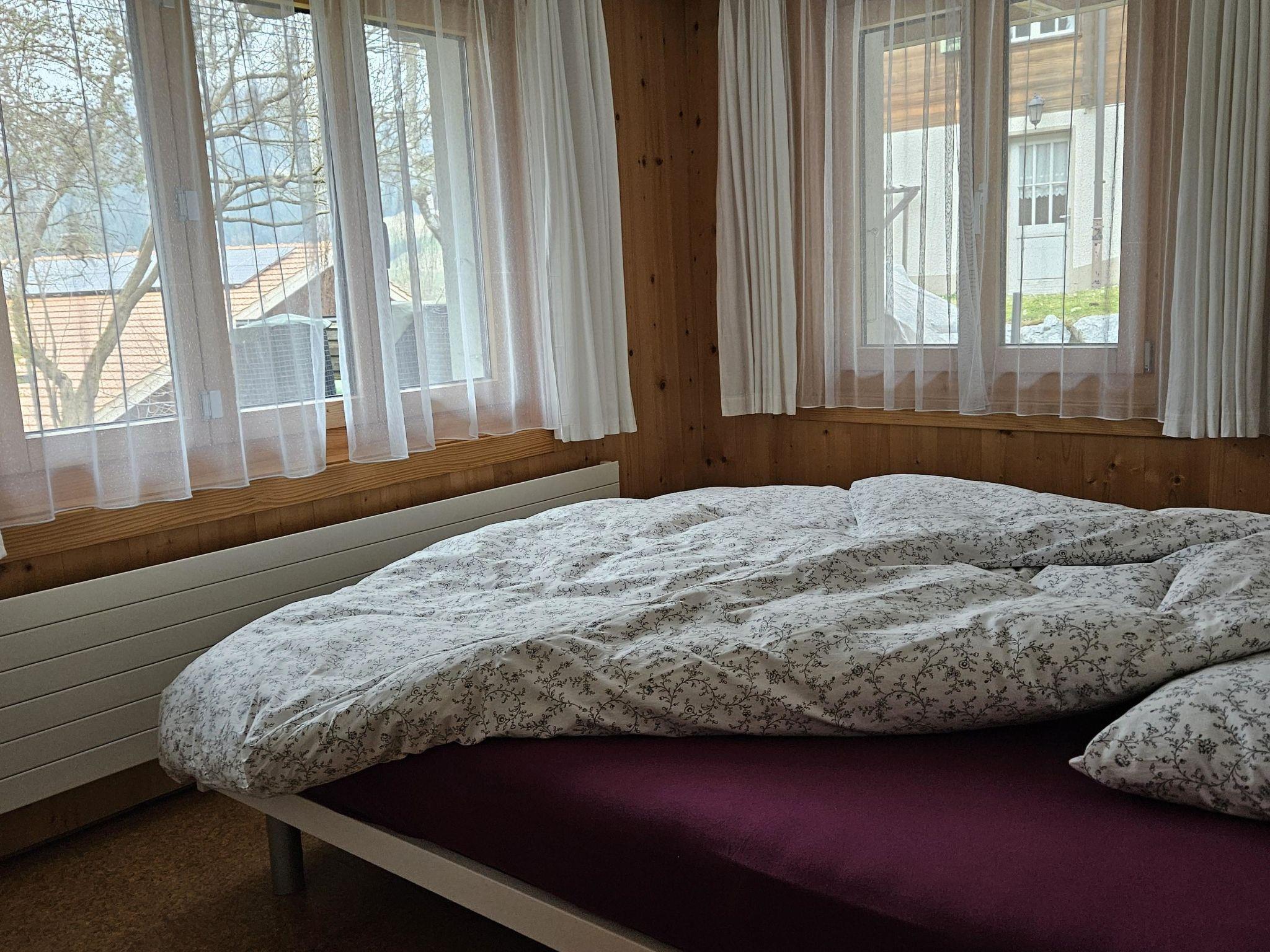 Wohn-/Esszimmer, Küche (u. a. ausgestattet mit Filterkaffeemaschine, Toaster, Fondue- und Raclette-Set), Bad, Heizungsraum mit WC und Lavabo. Radio/Satelliten-TV/Video/DVD-Gerät sowie WiFi. Grill im Garten. 1 Doppelschlafzimmer mit 2 Betten (2x90x200cm) mit Schrank, 1 Doppelschlafzimmer mit 2 Betten (2x80x200cm) mit Schrank und 1 Schlafzimmer mit 1 Etagenbett (je 90x190cm) und 1 Einzelbett (90x190cm) mit Schrank. Kinderbett (70x120cm) inkl. Bettwäsche und Kinderhochstuhl vorhanden. Nichtraucher-Wohnung!