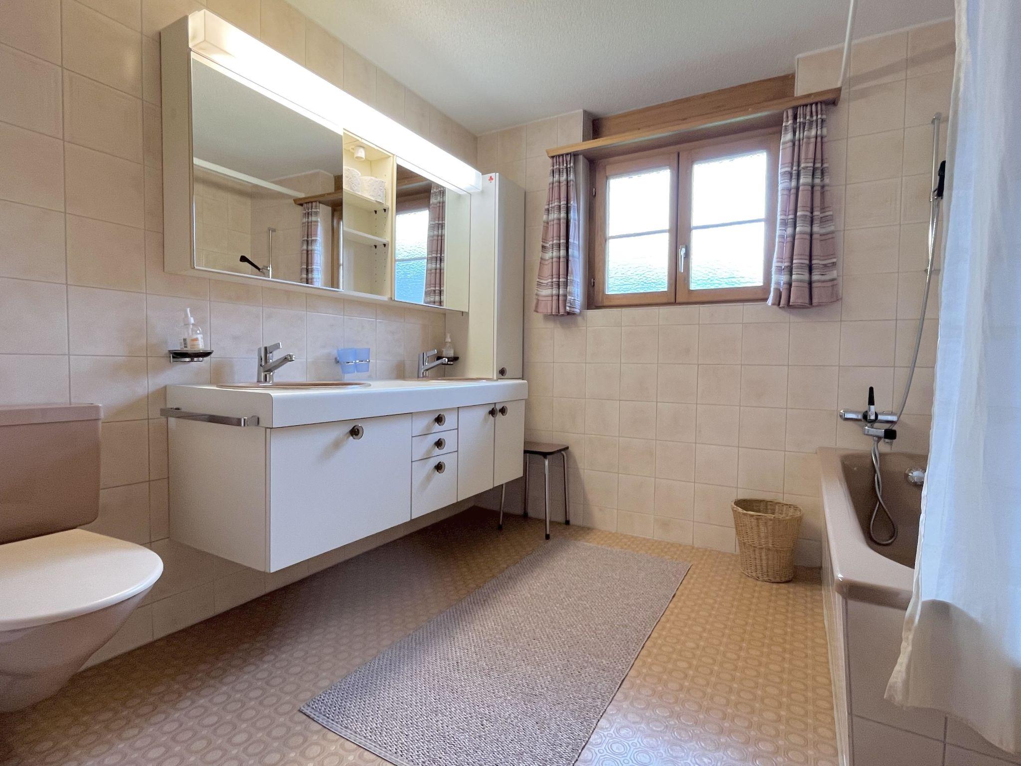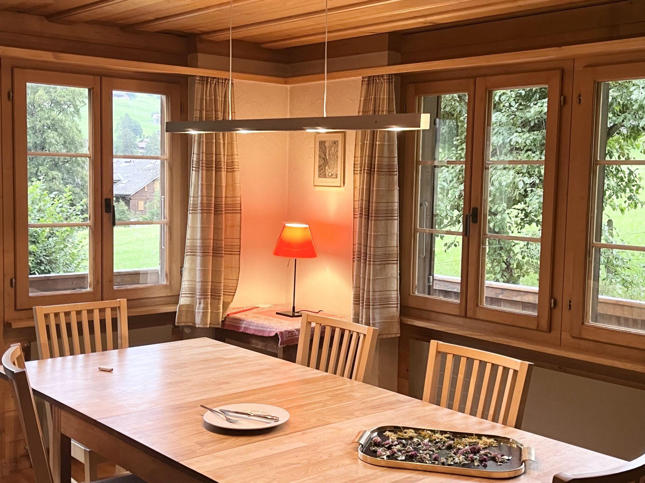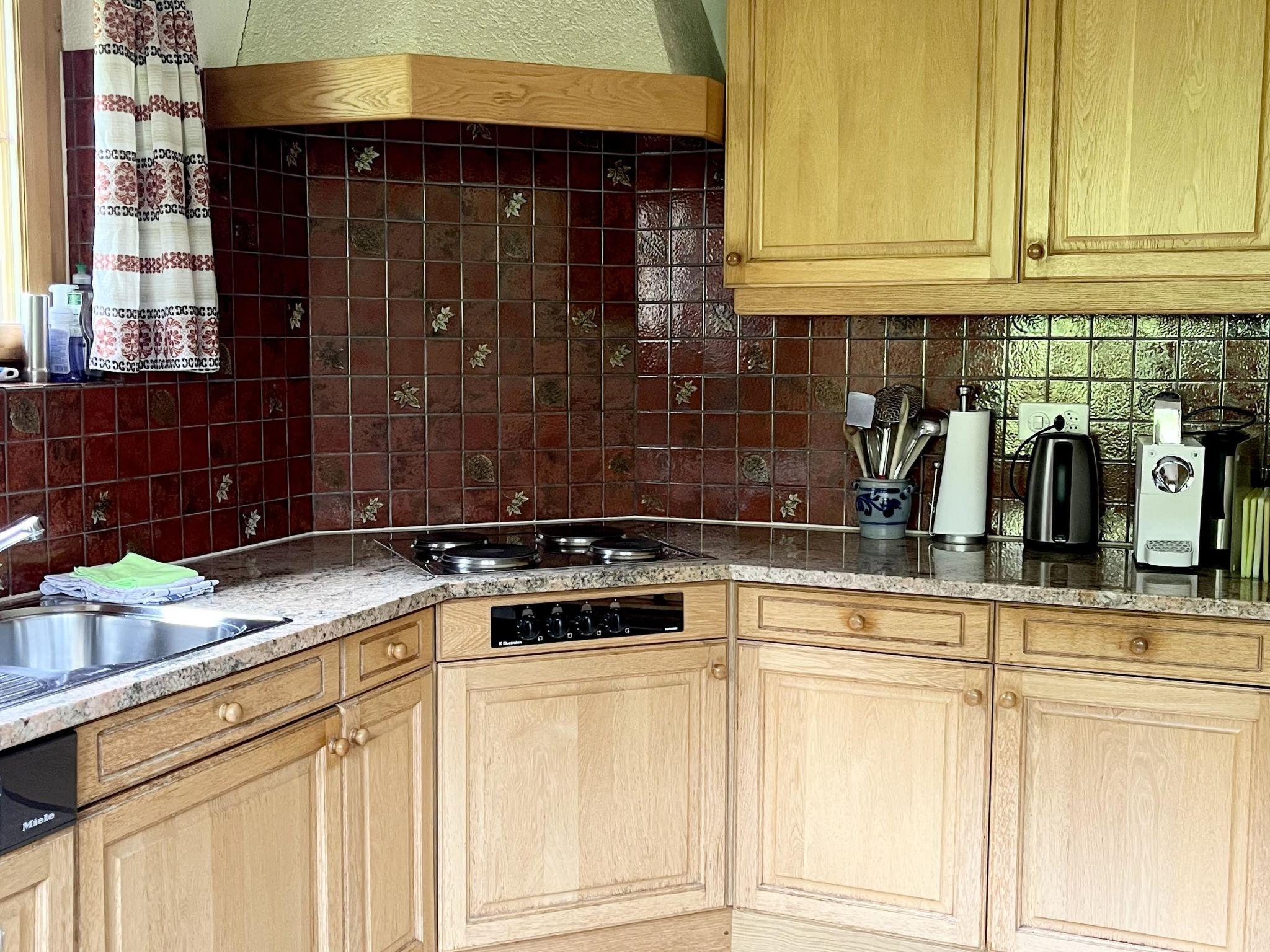 Separate Küche mit Esstisch, Geschirrspüler, Kapsel-Kaffeemaschine (Delizio) sowie Fondue- und Raclette-Set. Grosses Wohnzimmer mit Cheminée und Esstisch, TV/Telefon/Radio, WiFi. 1 Badezimmer mit Badewanne/Dusche und WC. 1 Schlafzimmer mit 2 Einzelbetten (2x100x190cm). 1 Schlafzimmer mit 3 Einzelbetten (3x90x190cm), 1 Unterziehbett (90x190cm) sowie 1 Badezimmer mit Dusche/WC. 1 Schlafzimmer mit 2 zusammengeschobenen Einzelbetten (2x90x190cm). Kinderbett (70x140cm), Reisekinderbett inkl. Bettwäsche und Kinderhochstuhl vorhanden.