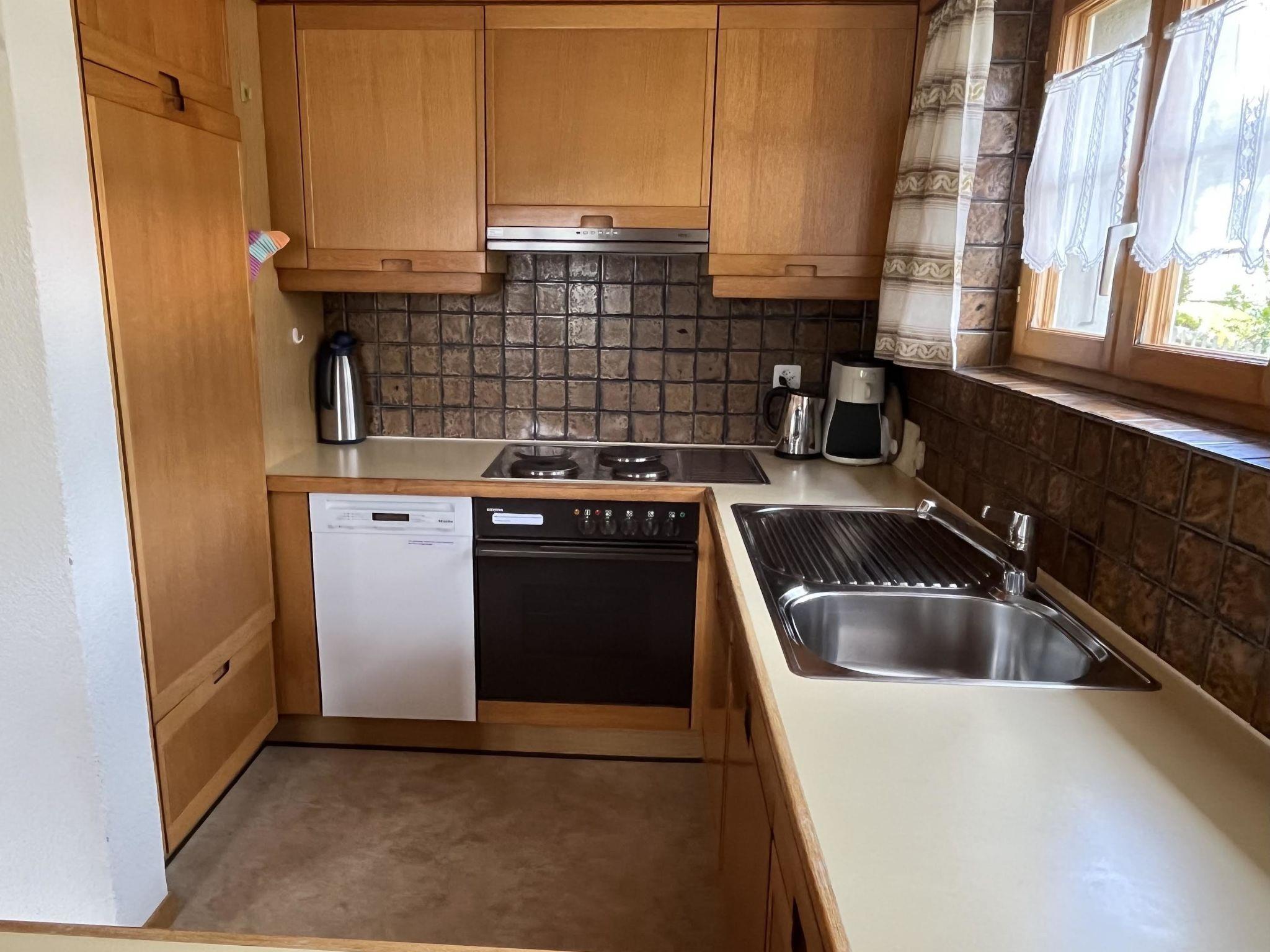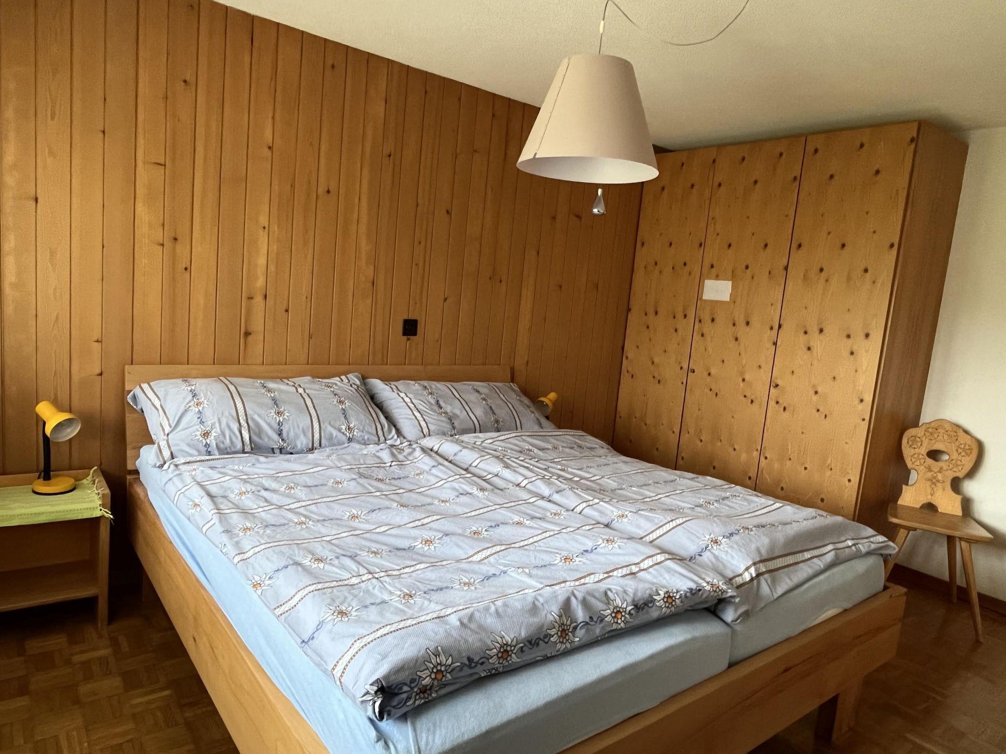Wohnzimmer mit Sitzgruppe, Esstisch, TV/Radio, Telefon, WiFi, 1 Einzelbett (90x200cm) mit 1 Unterziehbett (90x200cm) und Ausziehsofa (140x190cm). Offene Küche mit Geschirrspüler, Kapsel-Kaffeemaschine (Delizio), Filterkaffeemachine und Fondue- sowie Raclette-Set. 1 Schlafzimmer mit 2 zusammengeschobenen Einzelbetten (2x90x200cm) und Schrank. 1 Badezimmer mit Dusche/WC. Kinderbett (60x120cm) inkl. Bettwäsche sowie Reisekinderbett und Kinderhochstuhl vorhanden.