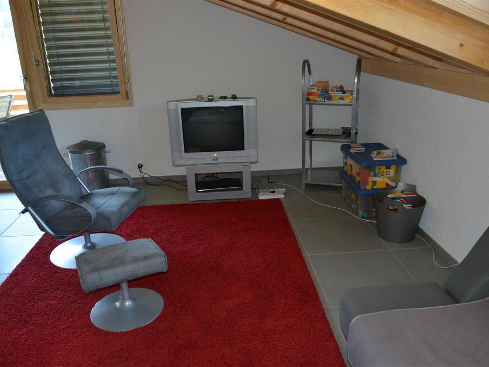 Moderne, helle Dachwohnung. Grosse Wohnküche mit Geschirrspüler, Kapsel-Kaffeemaschine (Delizio), Fondue- sowie Raclette-Set und Tischgrill. Wohnzimmer mit Sofa und TV. 1 Schlafzimmer mit Doppelbett (140x200cm) und 1 Schlafzimmer mit 2 Einzelbetten (90x200cm). 1 Badezimmer mit Badewanne und separater Dusche, 2 Waschbecken, WC. WiFi. Kinderbett (70x140cm) inkl. Bettwäsche und Kinderhochstuhl vorhanden.