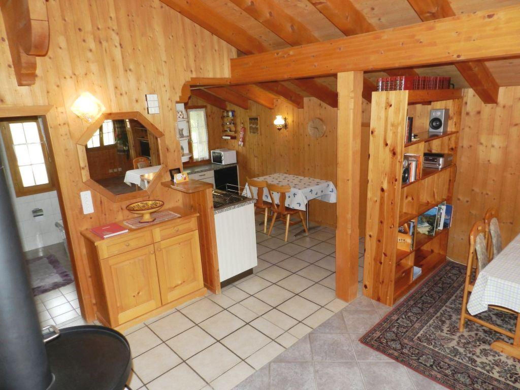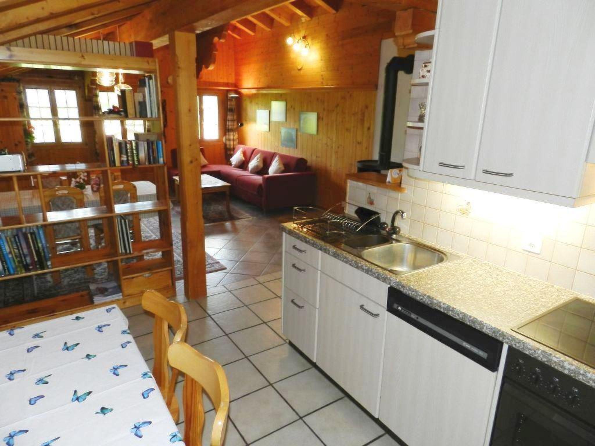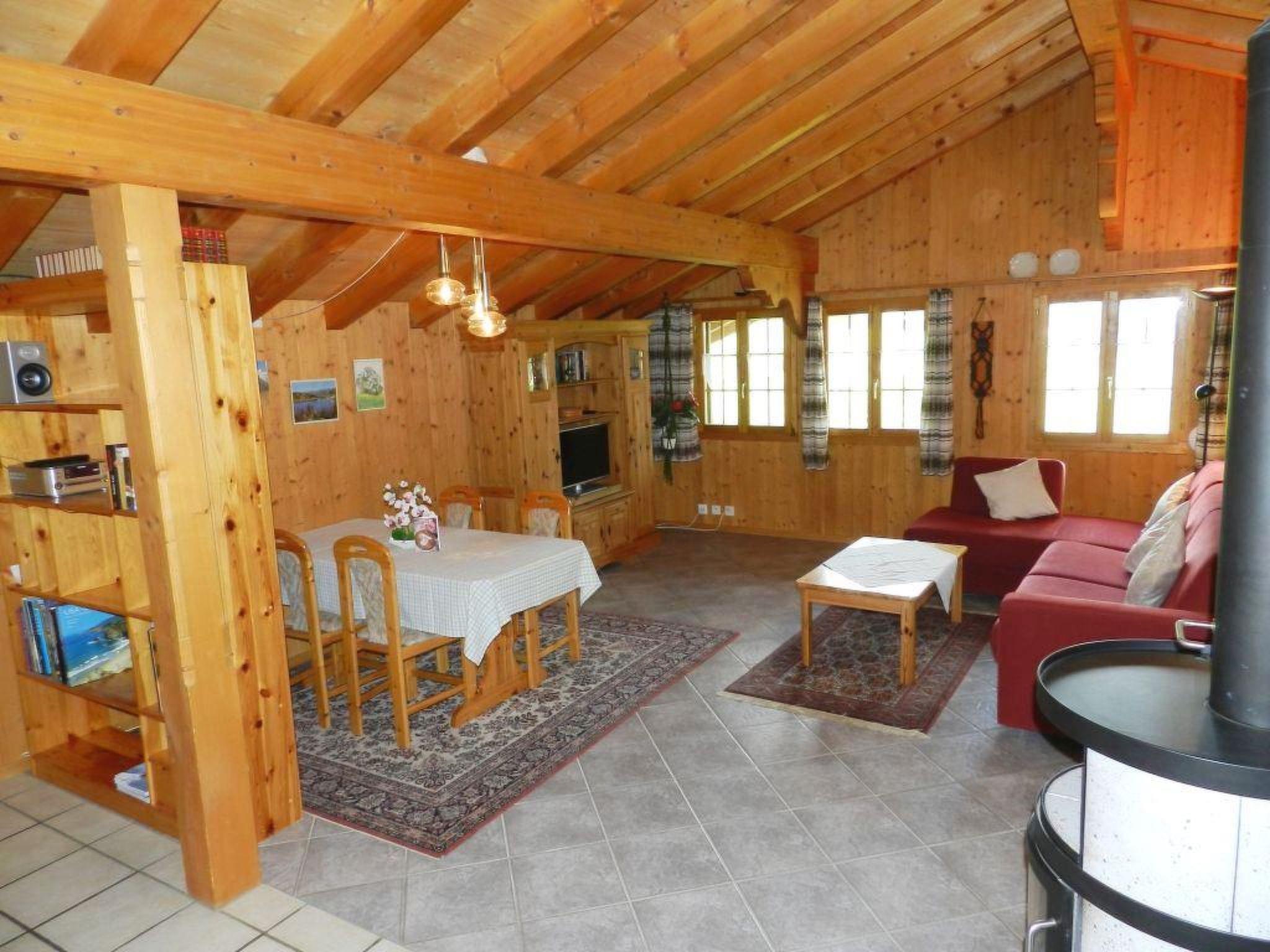 Wohn-/Esszimmer mit offener Küche (u.a. ausgestattet mit Keramikherd, Backofen, Mikrowelle, Geschirrspülmaschine, Filterkaffeemaschine (Martello) sowie Fondue- und Raclette-Set), Esstisch, Schwedenofen, Radio und TV. 1 Schlafzimmer mit 1 Doppelbett (2x90x200cm), 1 Einzelbett (90x200cm). 1 Badezimmer mit Badewanne und WC. WiFi vorhanden. Kinderbett (70x140cm) inkl. Bettwäsche und Kinderhochstuhl vorhanden.