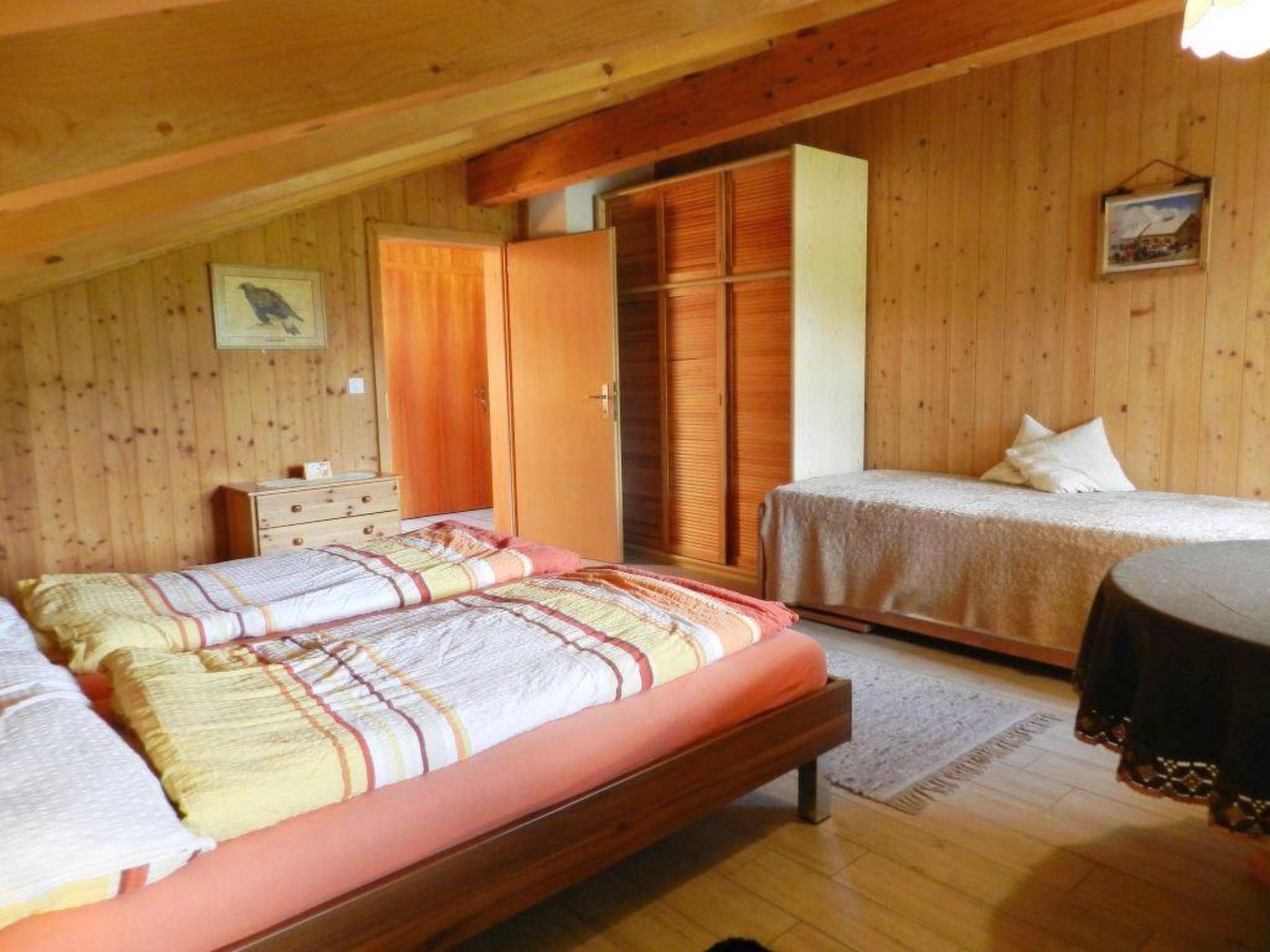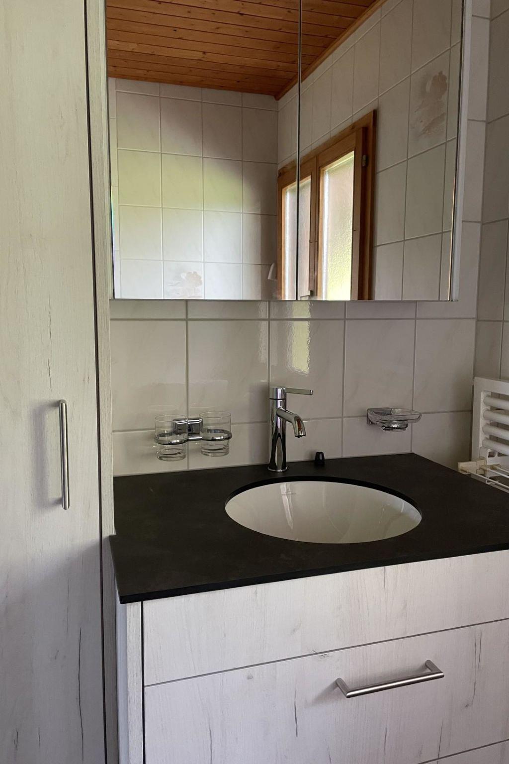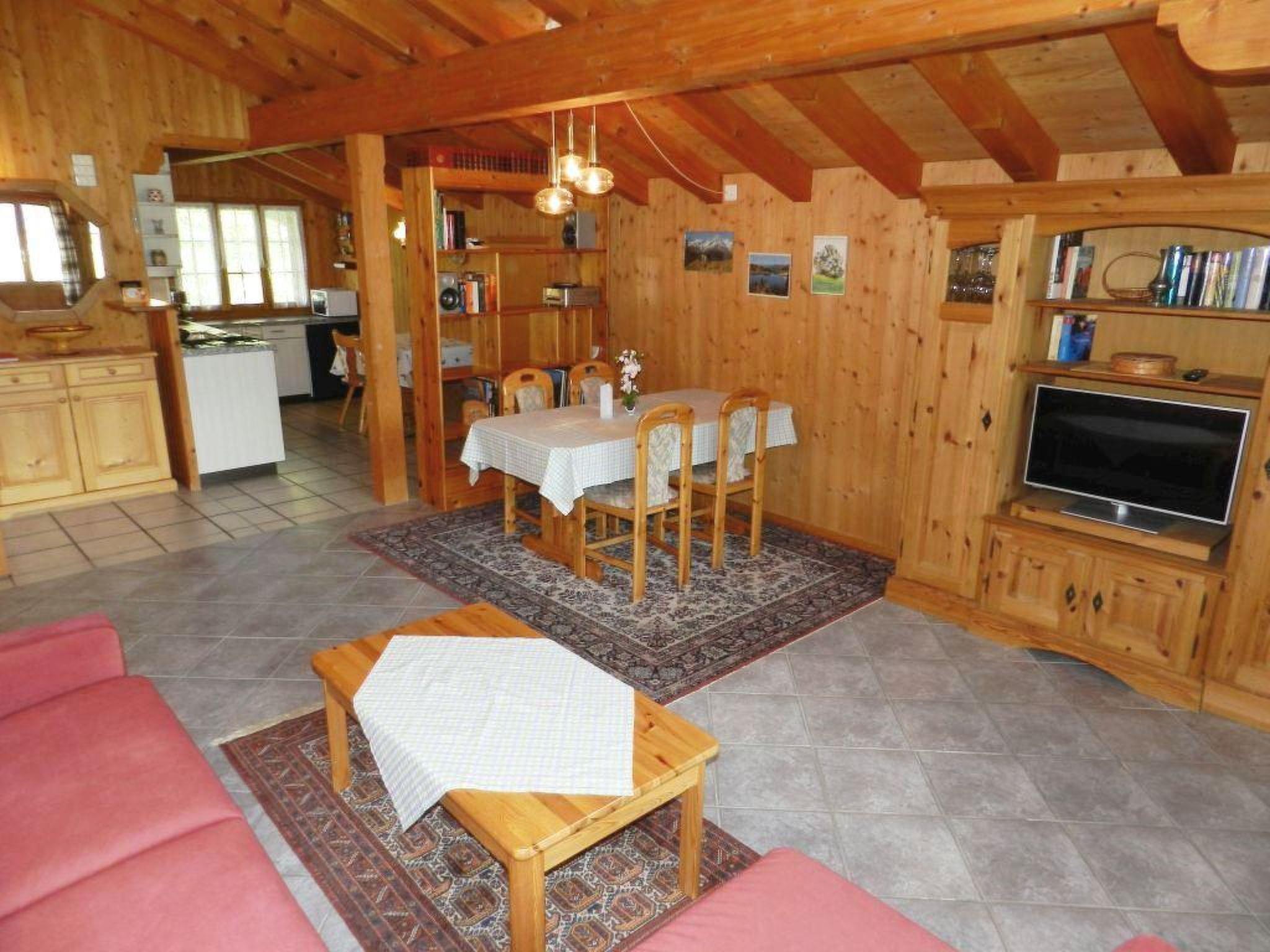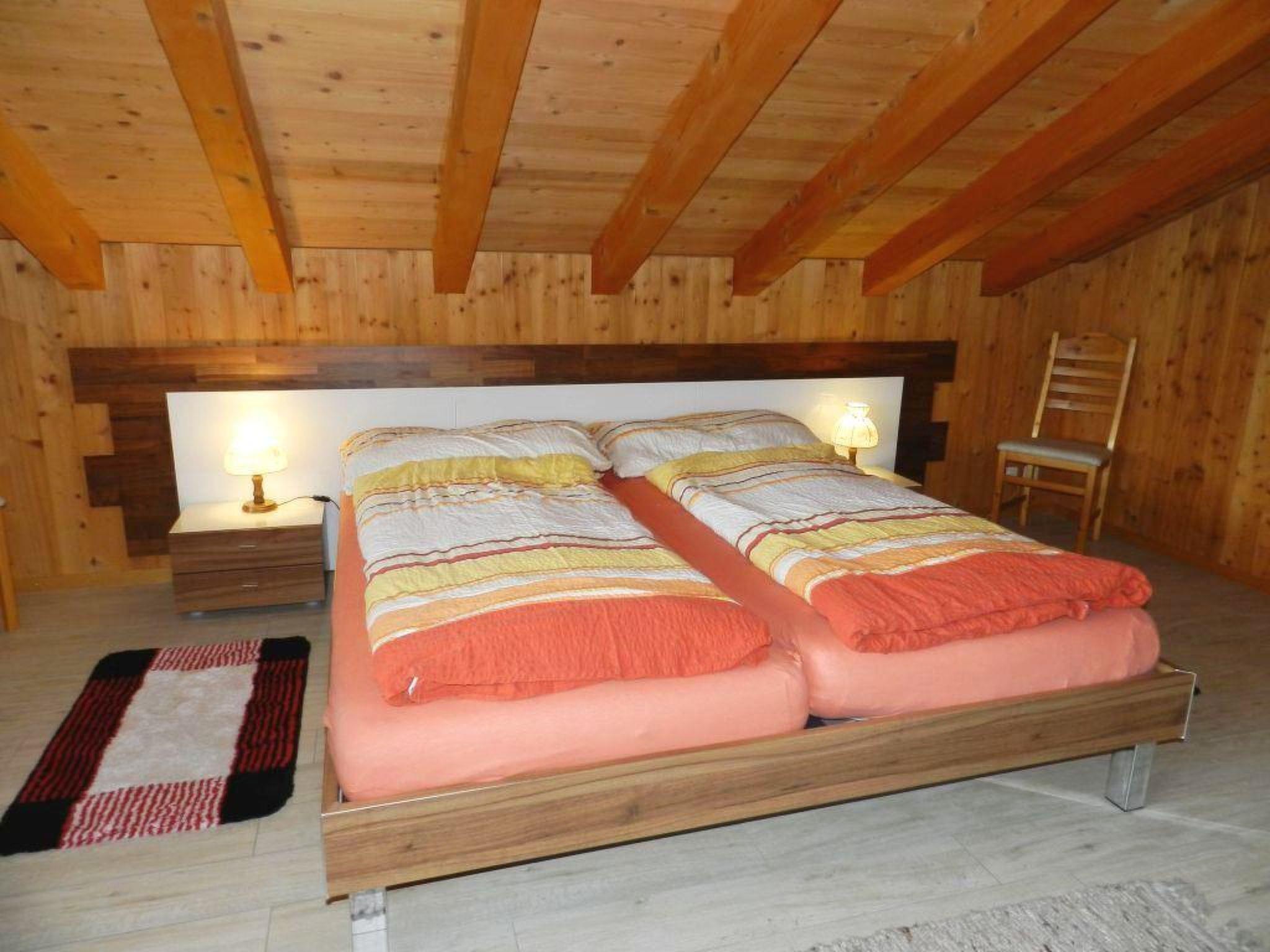 Wohn-/Esszimmer mit offener Küche (u.a. ausgestattet mit Keramikherd, Backofen, Mikrowelle, Geschirrspülmaschine, Filterkaffeemaschine (Martello) sowie Fondue- und Raclette-Set), Esstisch, Schwedenofen, Radio und TV. 1 Schlafzimmer mit 1 Doppelbett (2x90x200cm), 1 Einzelbett (90x200cm). 1 Badezimmer mit Badewanne und WC. WiFi vorhanden. Kinderbett (70x140cm) inkl. Bettwäsche und Kinderhochstuhl vorhanden.