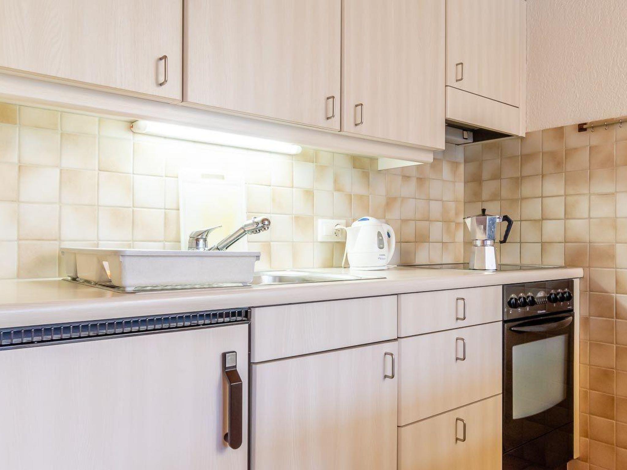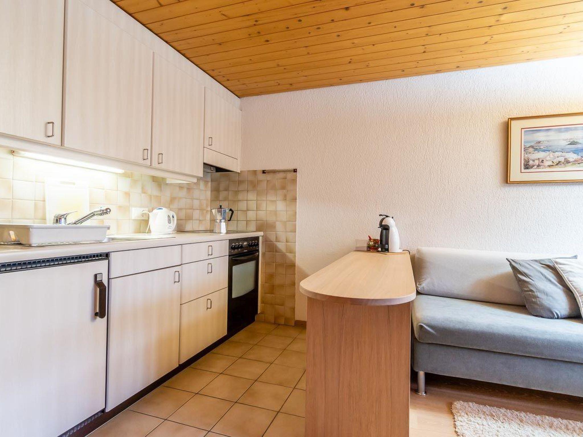 Wohn-/Esszimmer mit Esstisch, Bettsofa (80x200cm), 2 Sesseln, TV und offener Küche (u.a. ausgestattet mit Backofen, Kühlschrank mit Gefrierfach, Kapsel-Kaffeemaschine (Nespresso), Toaster, Wasserkocher sowie Raclette- und Fondue-Set). 1 Schlafzimmer mit 1 Doppelbett (2x90x200cm), TV und Einbauschrank. 1 Badezimmer mit Dusche und WC. WiFi.