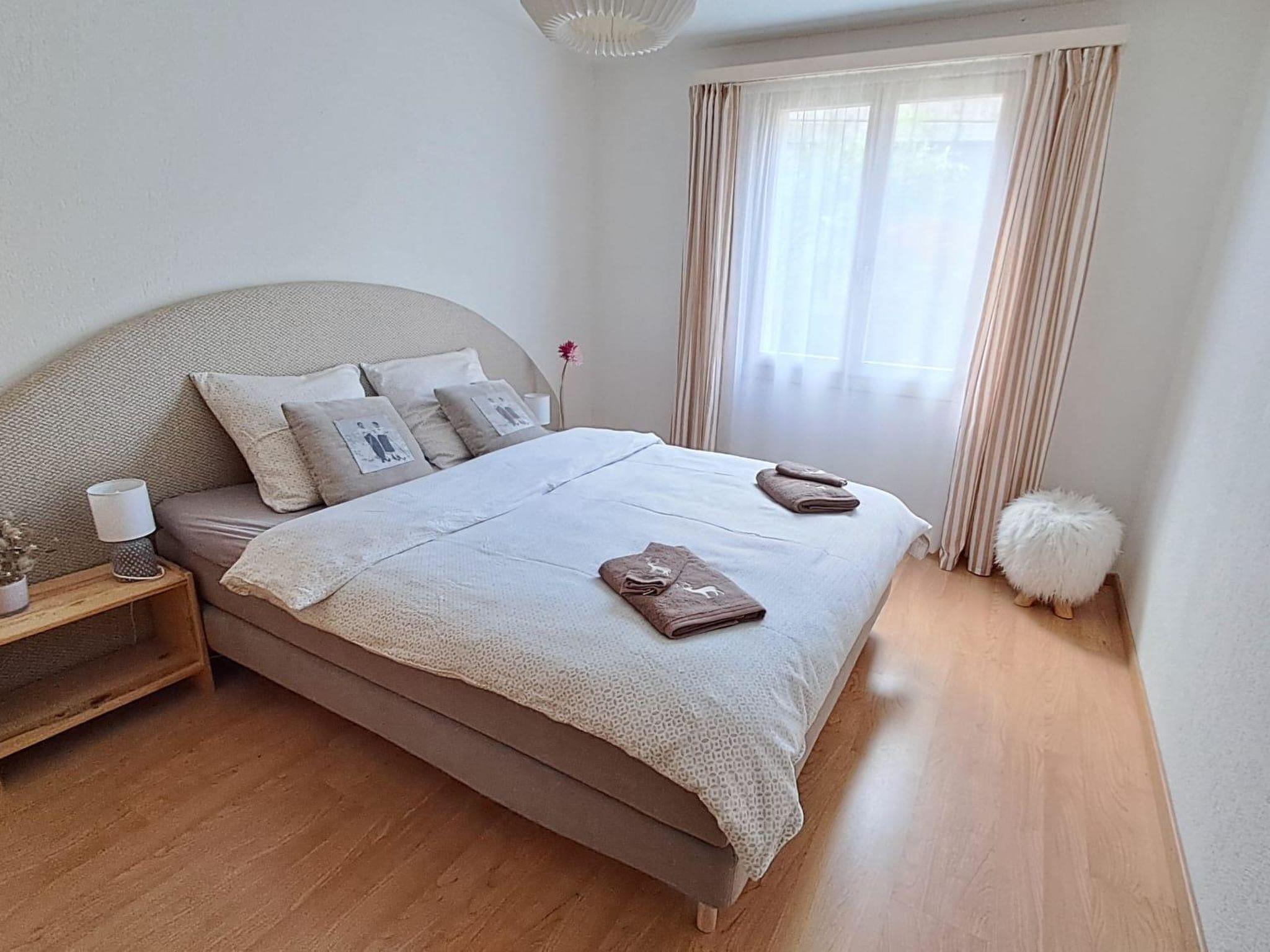 Schöne 4.5 Zimmerwohnung mit grosszügigem Wohn-/ Essbereich mit Esstisch und 6 Stühlen, einem Sofa, TV und Radio. WiFi. Küche (u.a. ausgestattet mit Geschirrspülmaschine, Kapsel-Kaffeemaschine (Nespresso), sowie Fondue- und Raclette-Set). 1 Schlafzimmer mit Grandlit (160x200cm), 1 Schlafzimmer mit Grandlit (140x200cm), 1 Schlafzimmer mit zwei Einzelbetten (je 90x200cm). 1 Bad mit WC/Badewanne, 1 separates WC. Kinderreisebett (60x120cm) exkl. Bettwäsche und Kinderhochstuhl auf Anfrage vorhanden.