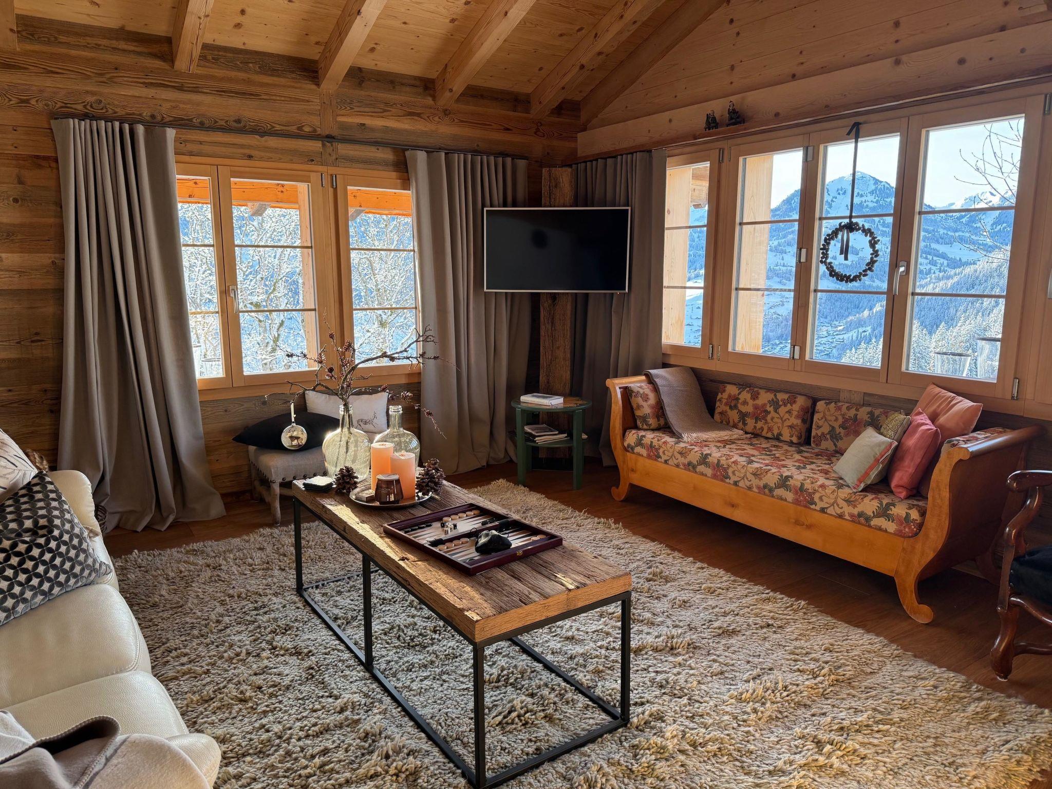 95 m2. Weitere Angaben des Anbieters: Stillvoll eingerichtete 3-Zimmer-Alpen Chic-Ferienwohnung (95 m², 1. Stockwerk mit Balkon) auf 1200 m ü. M. mit viel Holz und Charme, an sehr ruhiger, sonniger Lage mit Blick auf das Dorf Zweisimmen und die umliegende Bergkulisse. Idealer Ausgangspunkt zum Wandern, Biken, Langlauf, Winter- und Schneeschuhwandern im nahegelegenen Wintersport- und Freizeitgebiet Sparenmoos. 3 km vom Dorfzentrum Zweisimmen. Ein Rückzugsort für Geniesser. Die Zufahrtsstrasse wird im Winter unterhalten, dennoch sind 4x4 Fahrzeuge oder Schneeketten von Vorteil.