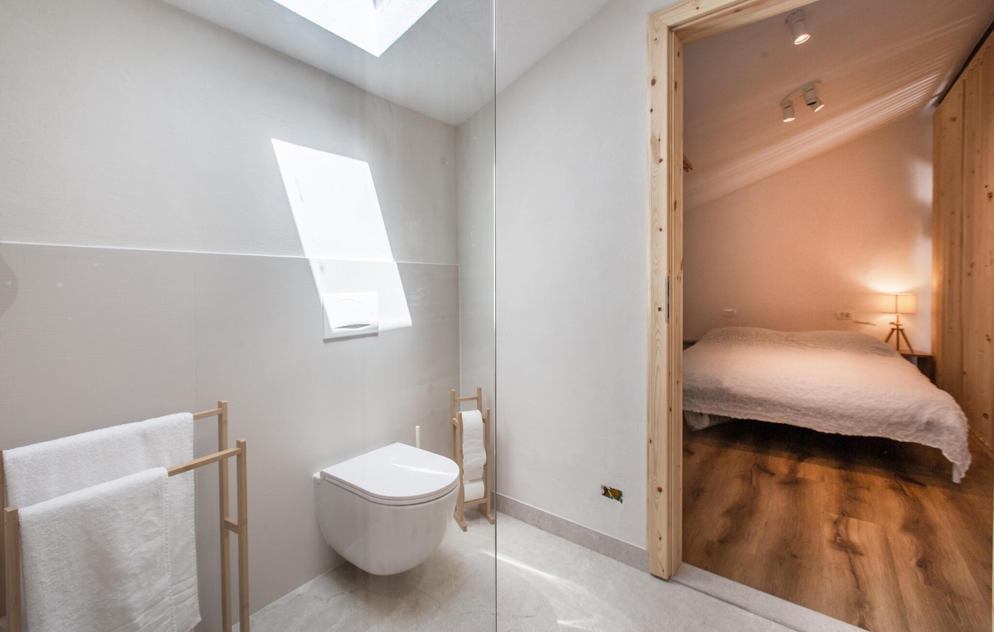 Badezimmer 4m2 (nr. 2) - WC. Warmes und kaltes Wasser. Dusche
