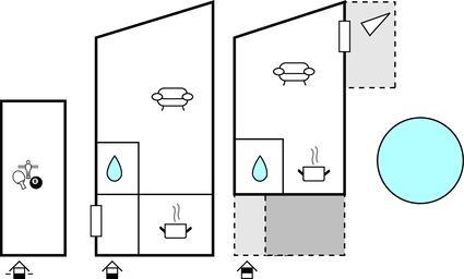 Wohnraum/Küche 30m2 - 2 Schlafmöglichkeiten. (Doppelbett(en)). 1 Schlafmöglichkeit. (Schlafsofa,Matratze,Sonstiges).