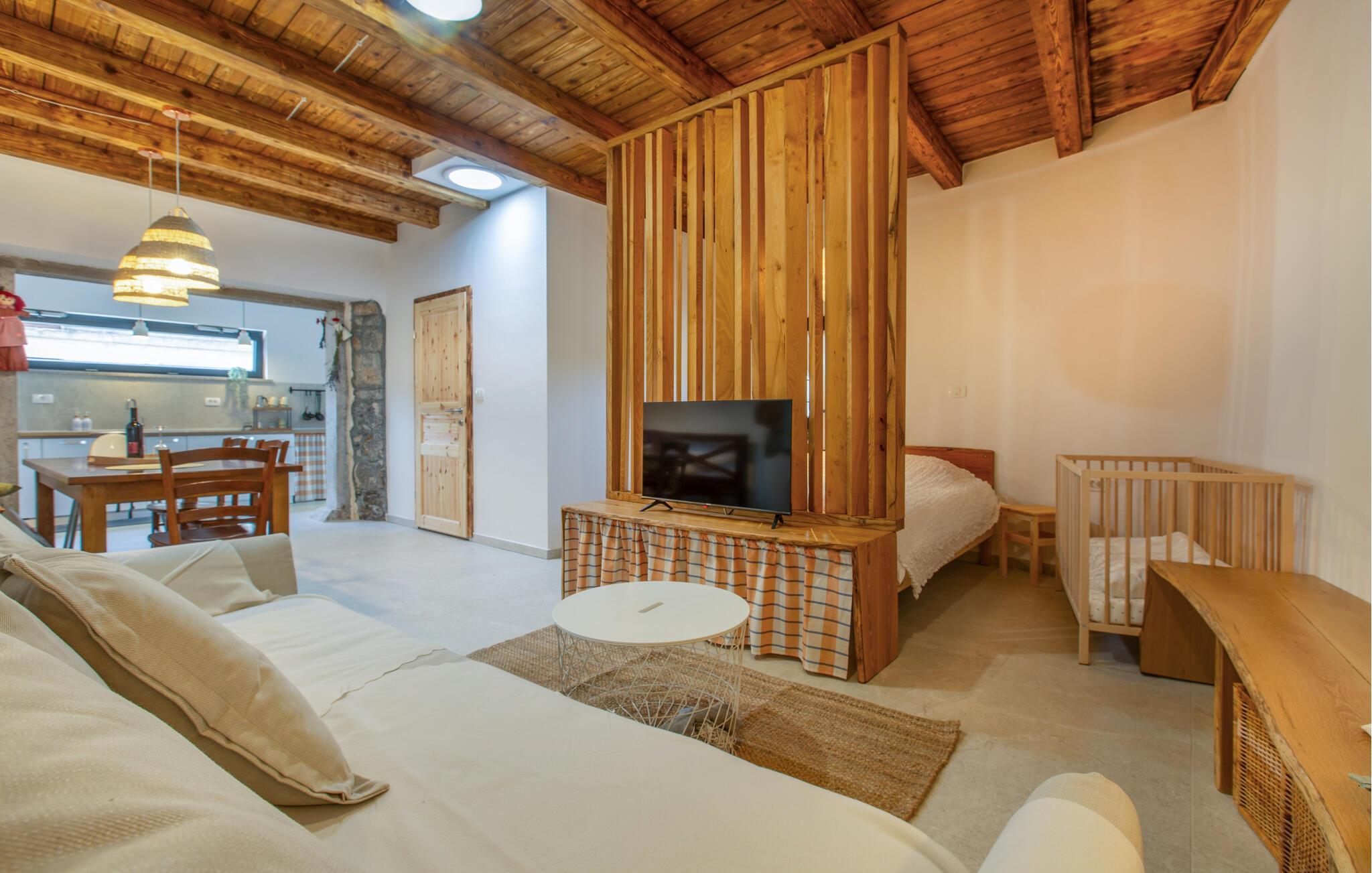 Wohnraum 31m2 - 2 Schlafmöglichkeiten. (Doppelbett(en)). 1 Schlafmöglichkeit. (Schlafsofa,Matratze,Sonstiges). 1 Schlafmöglichkeit. (Matratze).