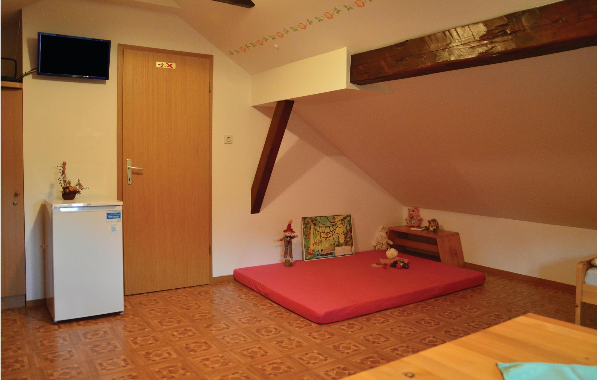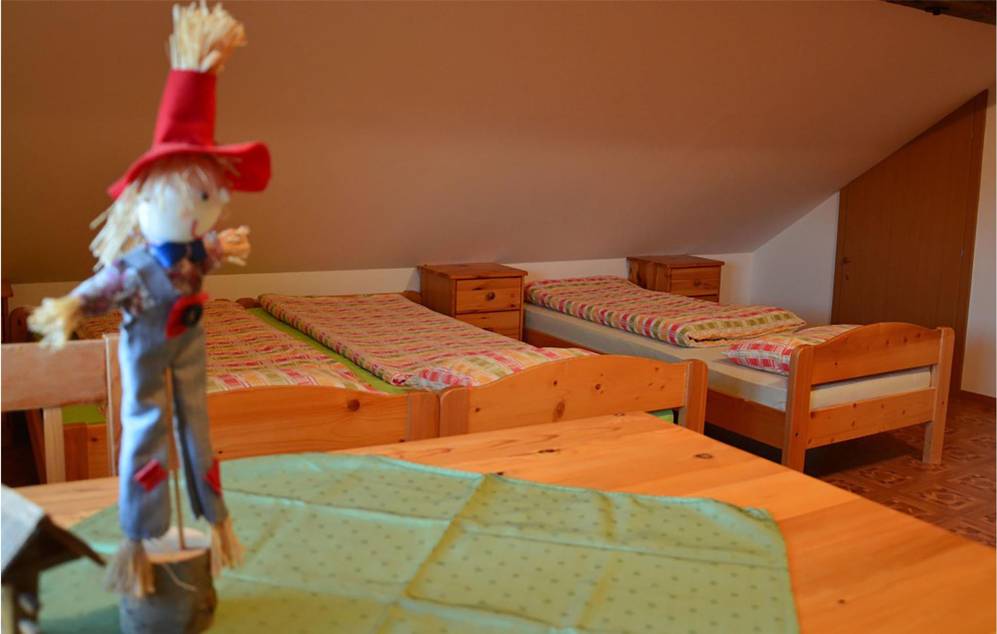Das Haus bietet einen komfortablen Aufenthalt in vier separaten Schlafzimmern. Im Untergeschoss des Gebäudes befinden sich ein größerer Gemeinschaftsraum für Geselligkeit und ein größerer Speisesaal, in dem die Eigentümer gegen Aufpreis Frühstück, Mittag- und Abendessen servieren. Alle Gerichte werden nach traditionellen Rezepten und mit regionalen Produkten zubereitet. Der Hof selbst ist EKO-zertifiziert und produziert eine Vielzahl von Obstprodukten: Apfelsaft, Essig, Marmelade usw.