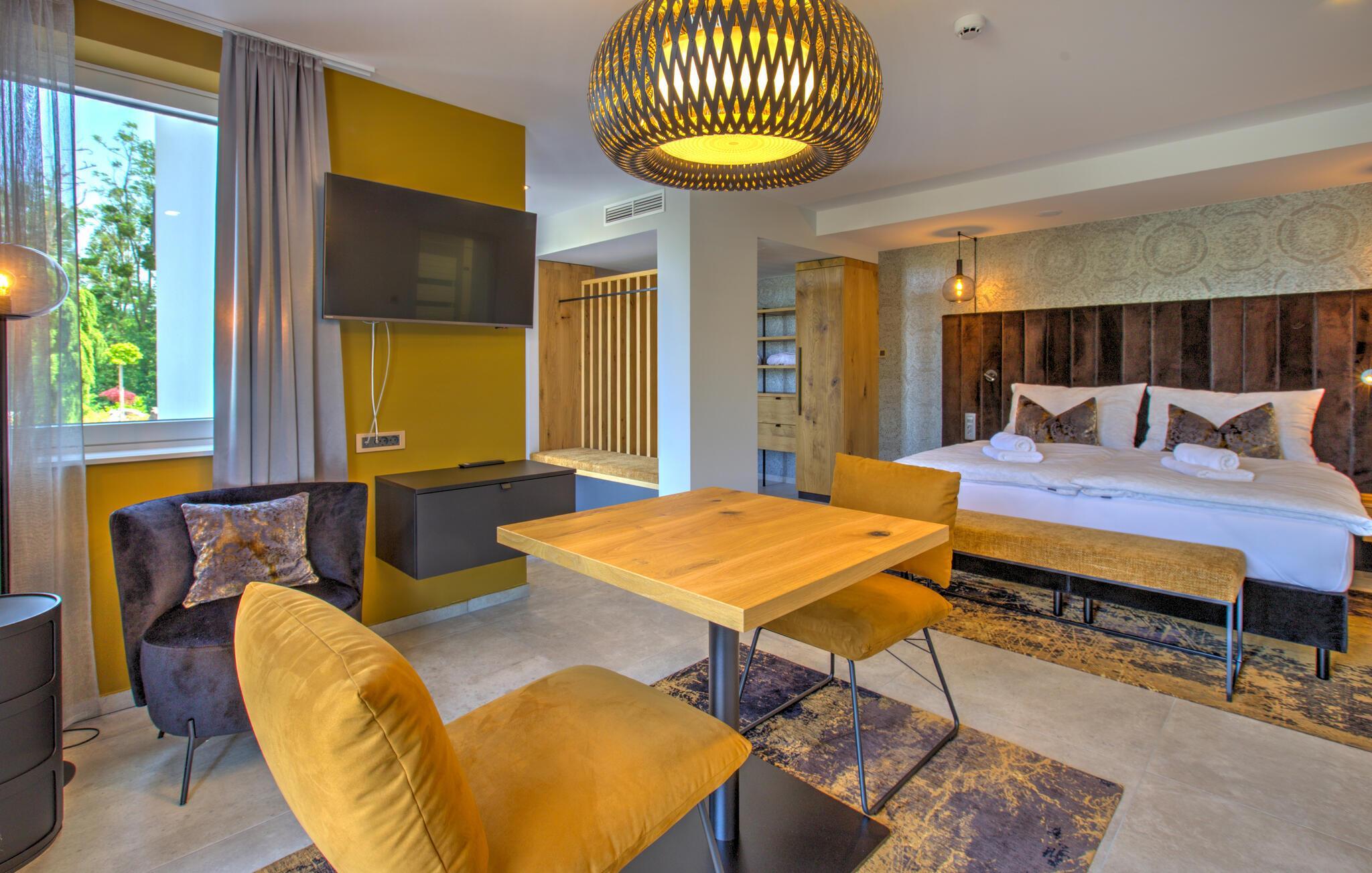 Genießen Sie stilvolle Zweisamkeit mit Panoramablick und luxuriösen Wellnessmöglichkeiten.
