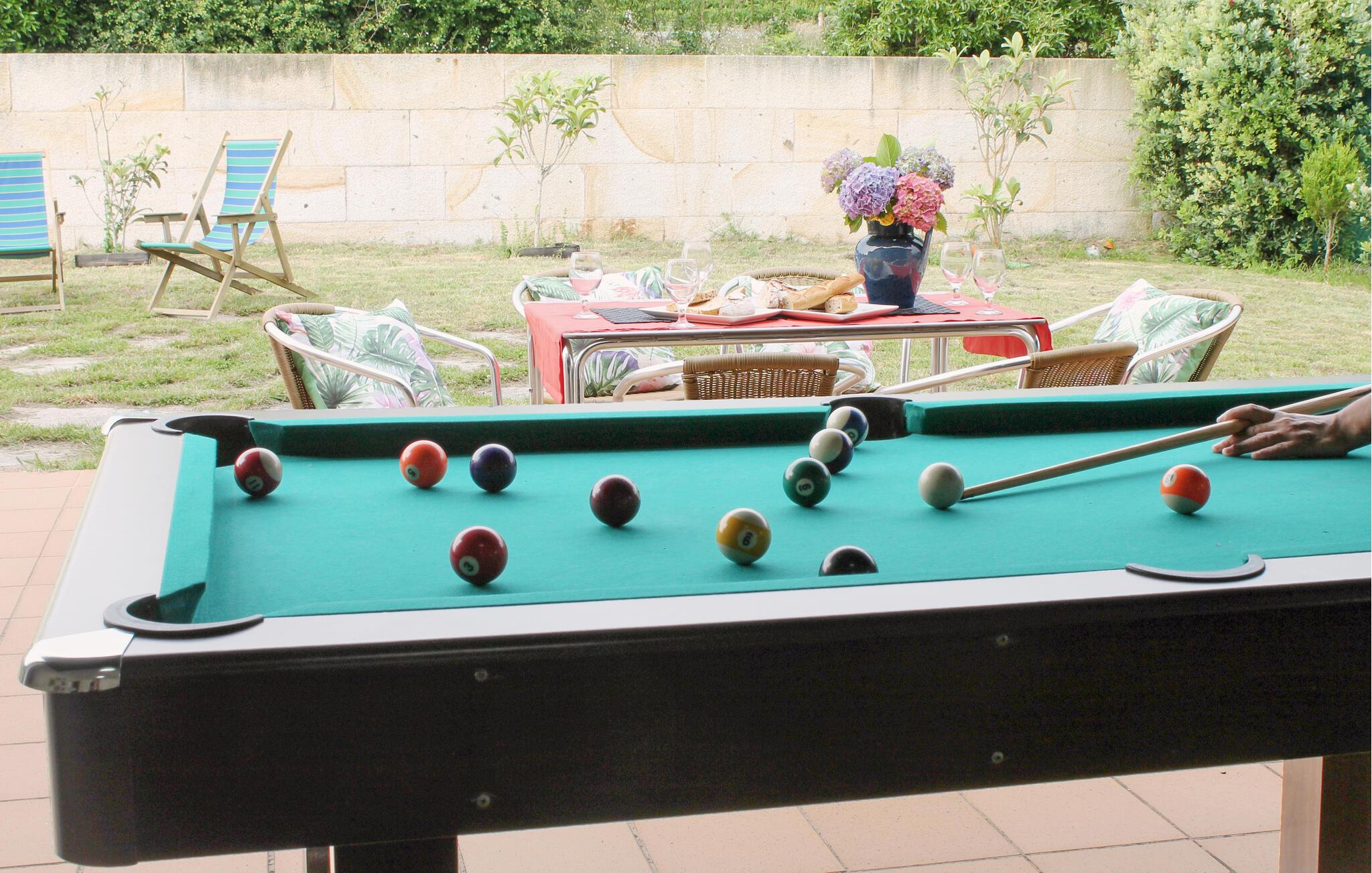Wenige Gehminuten vom Strand entfernt begrüßt Sie dieses großzügige Urlaubsdomizil. Hier sorgen eine liebevolle Einrichtung und eine hochwertige Ausstattung für eine echte Wohlfühlatmosphäre. Zaubern Sie köstliche Gerichte in der modernen Küche und freuen Sie sich auf gesellige Mahlzeiten am stilvollen Esstisch. Spielen Sie Billard und genießen Sie gute Gespräche auf dem gemütlichen Sofa.
