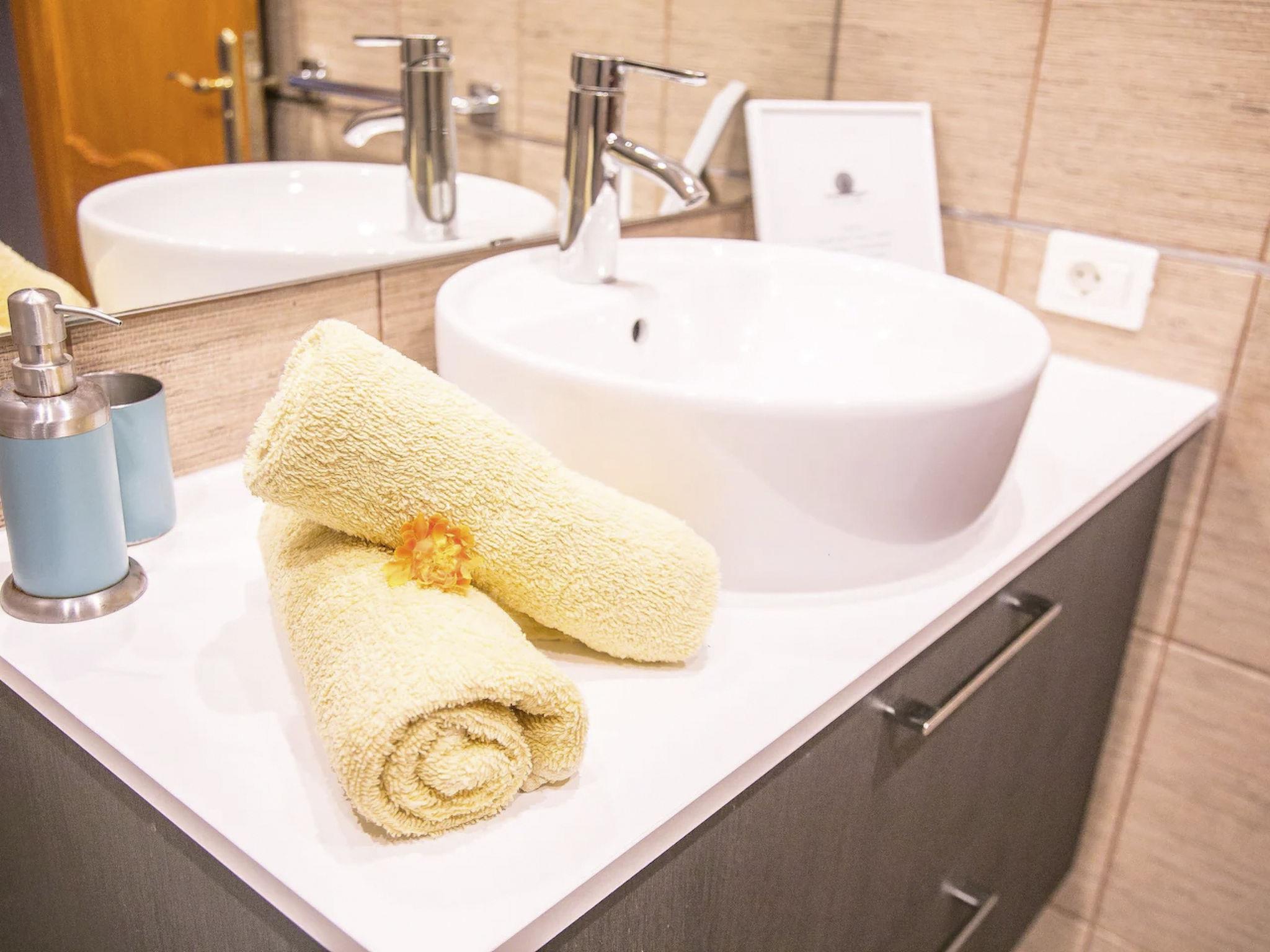 Zwei Schlafzimmer und zwei Badezimmer. Es gibt ein Doppelbett und ein Badezimmer mit Dusche. Es gibt ein Doppelbett und ein Schlafsofa. Das Badezimmer ist mit einer Dusche ausgestattet. Die Wohnung befindet sich im Obergeschoss des Hauses, 75 Meter vom Strand entfernt. Es hat einen schönen Blick auf das Meer und die Berge.