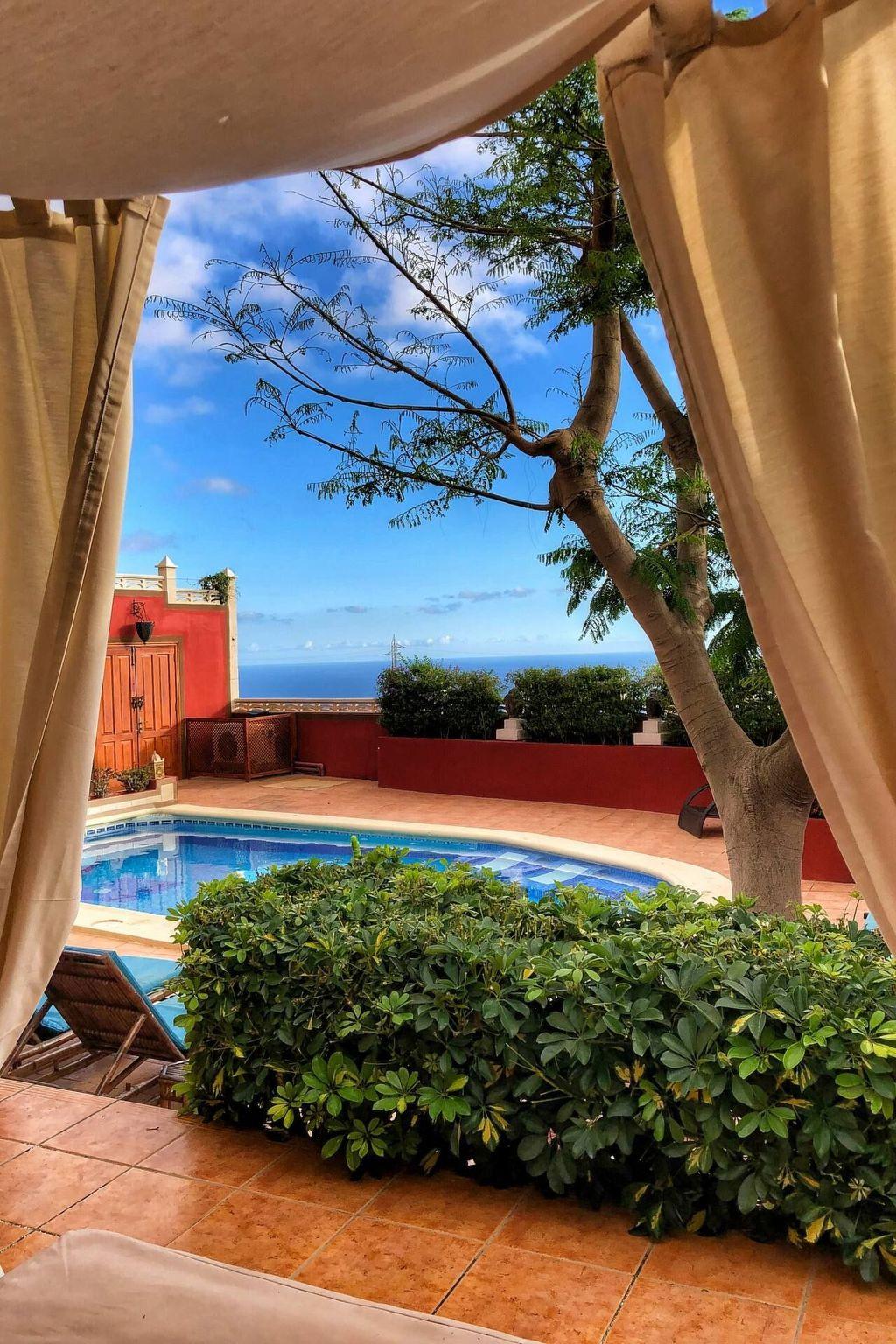 Haus mit beheiztem Pool (4,5 x 8 m) und Nachtbeleuchtung. Außenbereich mit Pergola, Sesseln, Sonnenliegen, einer Veranda mit Essbereich und einem Grill. Es verfügt über 3 Schlafzimmer, 2 Badezimmer und 1 Gäste-WC. Es umfasst WLAN, Internetzugang, ein Spielzimmer mit Tischtennis und Tischfußball sowie einen Kinderbereich. Das Hotel liegt in einer ruhigen Gegend von Adeje.