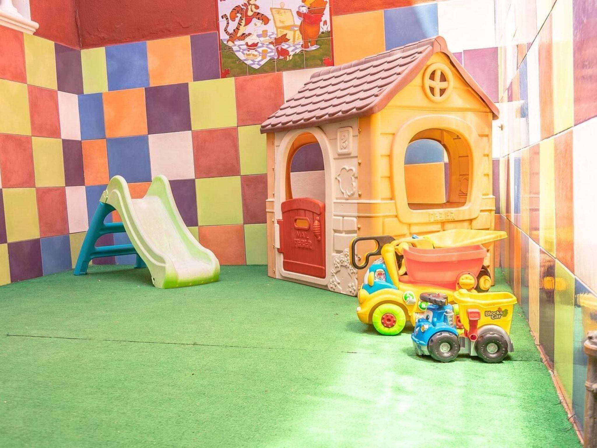 Im Erdgeschoss gibt es ein geräumiges Wohnzimmer, eine voll ausgestattete Küche, eine Toilette, einen Kinderspielbereich mit direktem Blick von der Küche und nach unten das Spielzimmer mit Billard und Tischfußball.