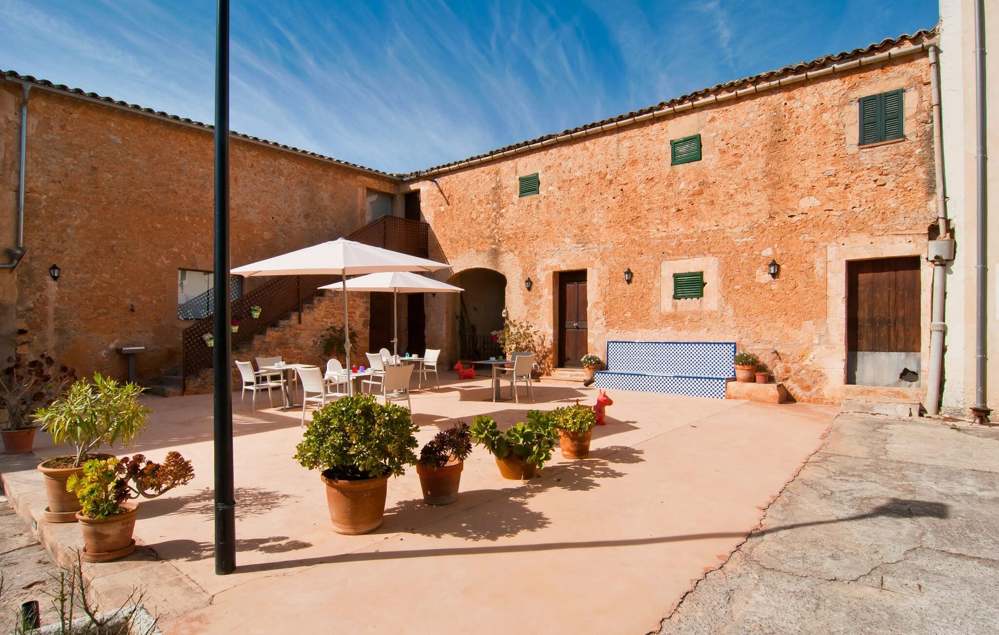 Das beeindruckende Anwesen „Son Sureda“ mit seinen 1.500.000 m² hat sich nach 500 Jahren Landwirtschaft, Weinbau und Viehzucht auf kleine und große Urlaubsgäste eingestellt. Die Namen der elf Ferienwohnungen, die rund um das Haupthaus, das Bürgermeisterhaus und die Nebengebäude mit einem oder zwei Doppelzimmern verteilt sind, weisen noch auf ihre frühere Nutzung hin. Auf Ihren Spaziergängen rund um die alten Mauern entdecken Sie viele alte Pferdewagen und interessante landwirtschaftliche Geräte. Auf Ihren eigenen kleinen Terrassen im Erdgeschoss oder mit Ausblick genießen Sie Ihre Privatsphäre und haben die Möglichkeit, andere Urlauber an den vielen Tischen und Stühlen oder beim Gemeinschaftsgrill im großen Innenhof kennenzulernen. Ihren Mallorca-Morgen können Sie im beeindruckenden Gewölbe (den ehemaligen Pferdeställen) oder draußen auf dem offenen Gelände mit einem üppigen, inseltypischen Frühstück beginnen, das Sie bestellen können. Zwei Pools mit Liegen und Außendusche, ein Planschbecken, ein Spielplatz mit Schaukel, Sandkasten, Klettergerüst, Fußballplatz sowie Hühnerställe sorgen sowohl für Erholung für Alleinreisende und Paare als auch für einen Urlaub auf dem Bauernhof Familien. Wir sind sicher, dass es eine Wohnung gibt, die genau zu Ihnen passt.