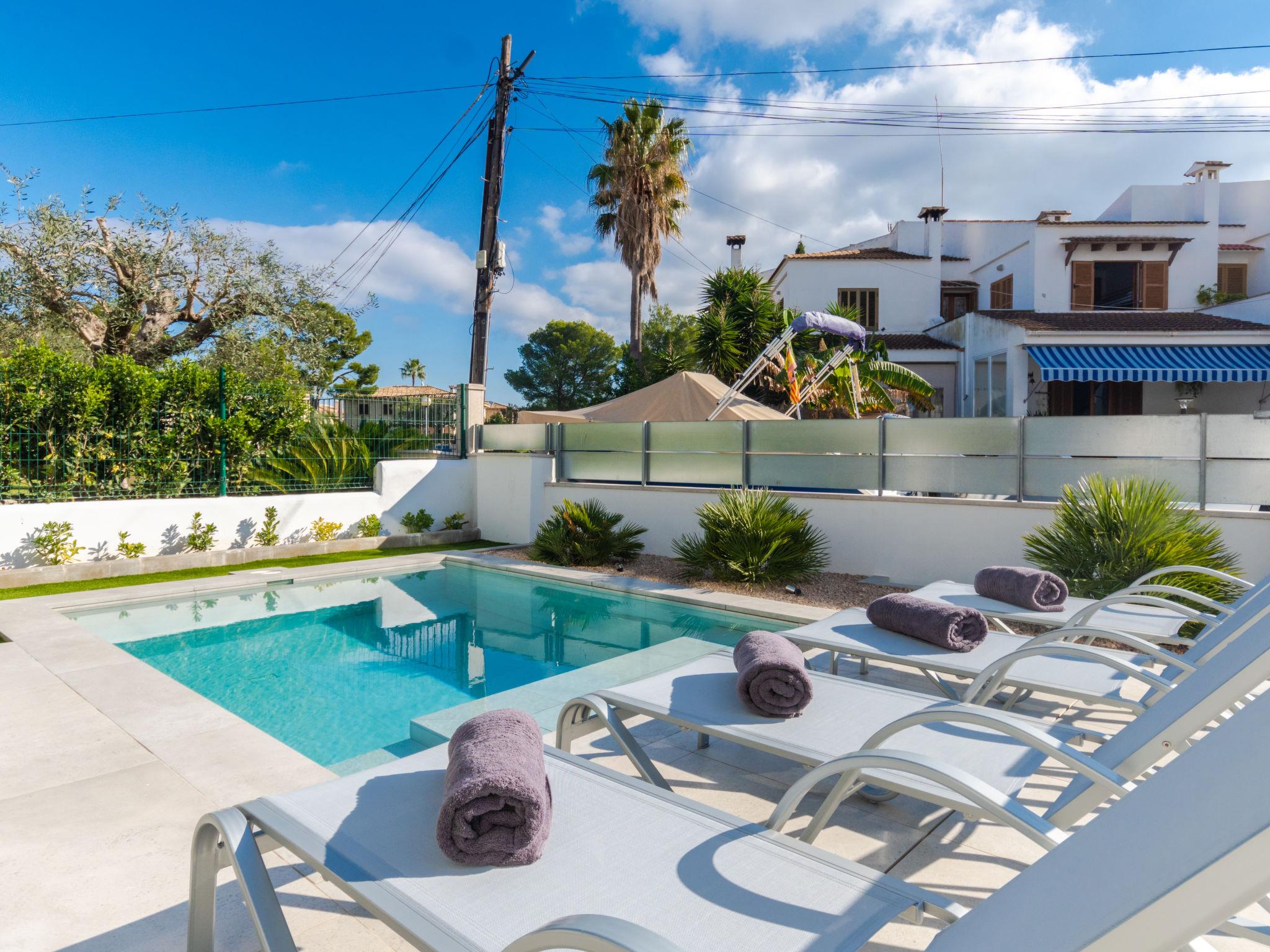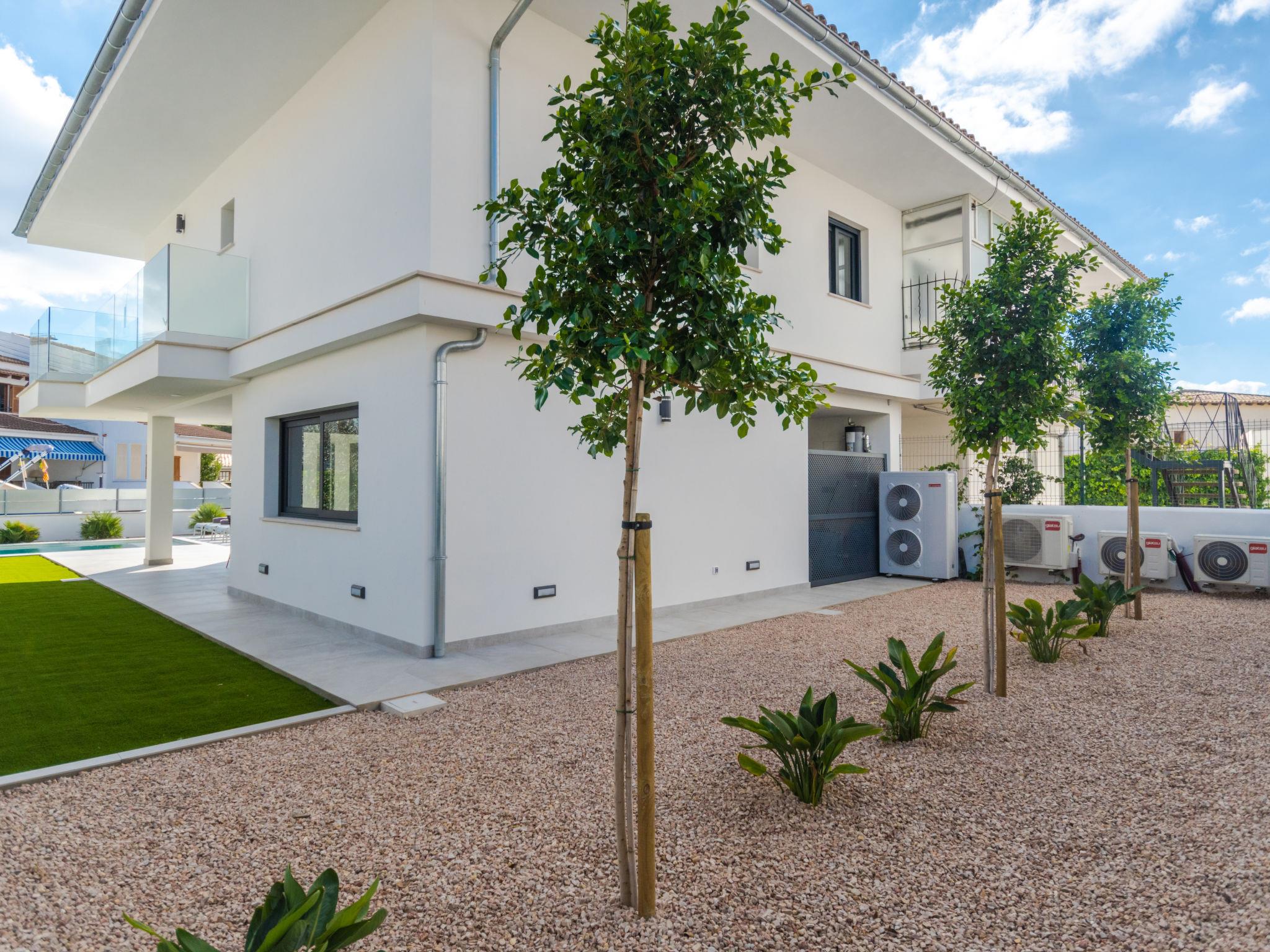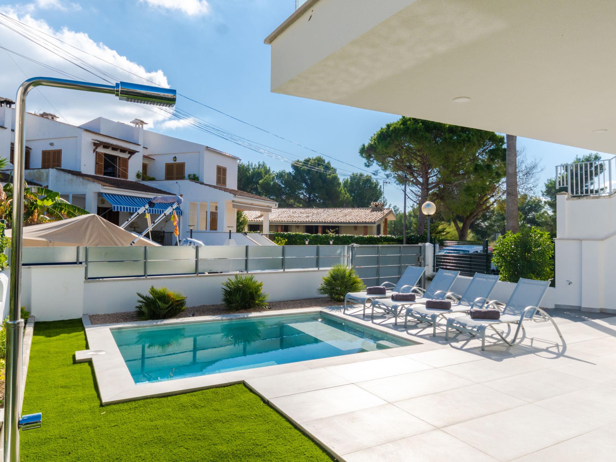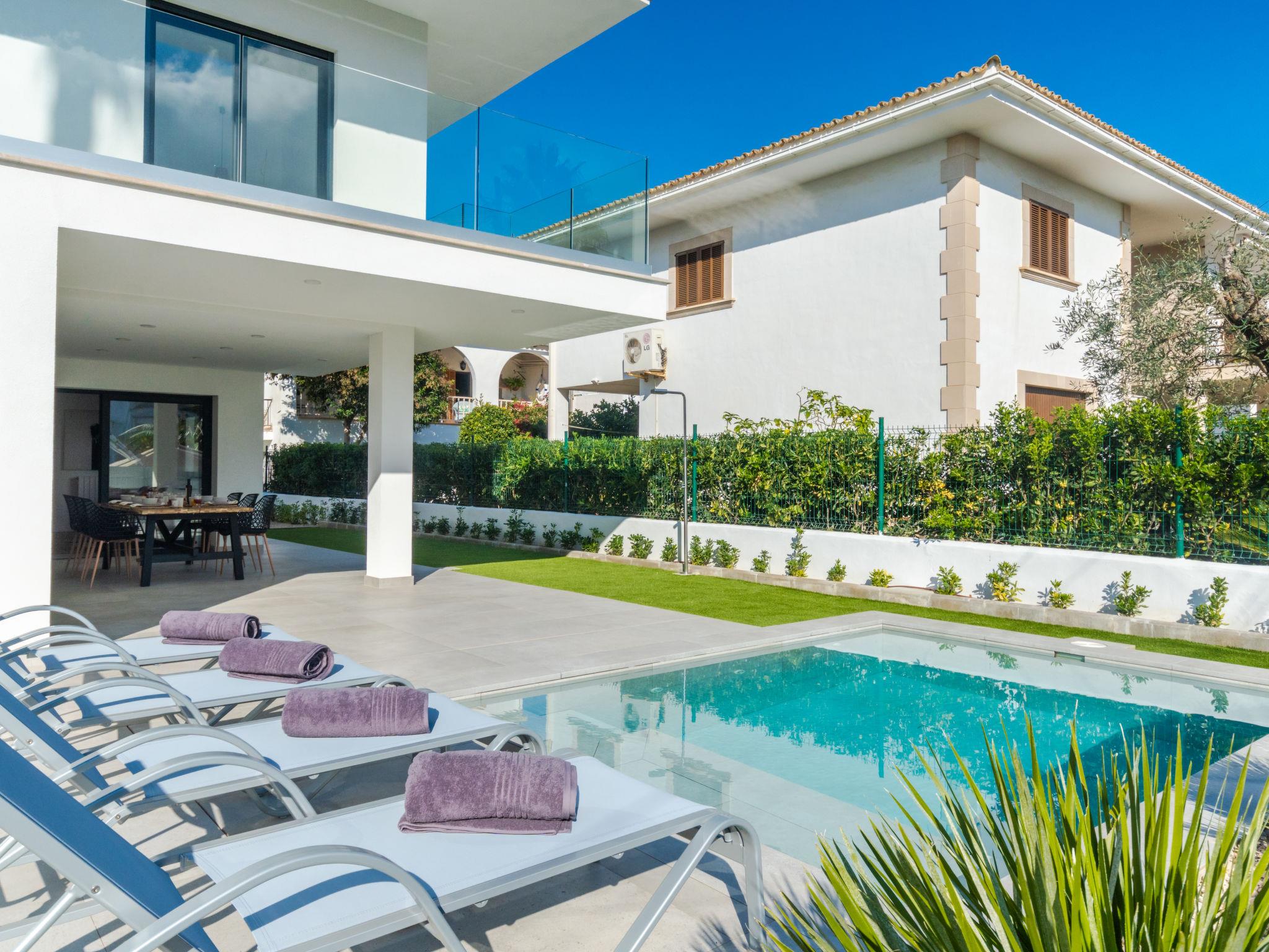 Barcares 1 km von Alcúdia: Modernes, sehr komfortables Doppelhaus "Ca na Cati", auf 2 Stockwerken, einseitig angebaut, Baujahr 2020. Im Ortsteil Barcarés, ruhige Lage im Villenviertel, 2 km vom Waldrand, 200 m vom Meer, 350 m vom Strand. Zur Alleinbenutzung: Garten mit Pflanzen, Hof, Schwimmbad eckig (4 x 3 m, 50 - 160 cm tief, saisonale Verfügbarkeit: 01.Jan. - 31.Dez.) mit Salzelektrolyse-Reinigungssystem. Aussendusche, Sitzplatz, Laube, Pergola, Gartenmöbel, Grill, Poolpflege durch den Besitzer/Gärtner. Im Hause: Internetzugang, Wireless LAN, Einstellraum für Fahrräder, Zentralheizung, Klimaanlage, Waschmaschine, Wäschetrockner. Parkplatz beim Haus auf dem Grundstück. Einkaufsgeschäft 1 km, Lebensmittelgeschäft 1 km, Supermarkt 1.2 km, Restaurant, Bar 950 m, Bäckerei 1.2 km, Fußgängerzone 500 m, Fahrradverleih 1 km, Biergarten 950 m, Zentrum zu Fuss in 15 Minuten erreichbar, Bushaltestelle 1 km, Sandstrand "Es Morer Vermell" 1 km, Kieselstrand "Sa Marina", Steinstrand "Barcares" 350 m, Badebucht 250 m. Sporthafen 3 km, Jacht-Hafen 3 km, Golfplatz (18 Loch) 5 km, Surfschule 1 km, Tennis 2 km, Reitstall 2.5 km, Sportzentrum 200 m, Wanderwege ab Haus, Radweg 500 m. Nahe gelegene Sehenswürdigkeiten: Ciudad Romana de Alcúdia. 1 km, Port de Pollença - Pollença 4 km, Puerto de Alcúdia 3 km, Serra de Tramuntana, Playa / Faro de Formentor. Wandergebiete: S'Albufera d'Alcúdia, Ermita de la Victoria - s'Atalaia d'Alcú, Puig de Sant Martí. Bitte beachten: geeignet für Familien, geeignet für Senioren. Objekt geeignet für 6 Erwachsene. Der Besitzer akzeptiert keine Jugendgruppen. Flugplatz 50 km vom Haus. Die Nachbarschaft ist sehr lärmempfindlich. Ruhe und gutes Benehmen wird erwartet.