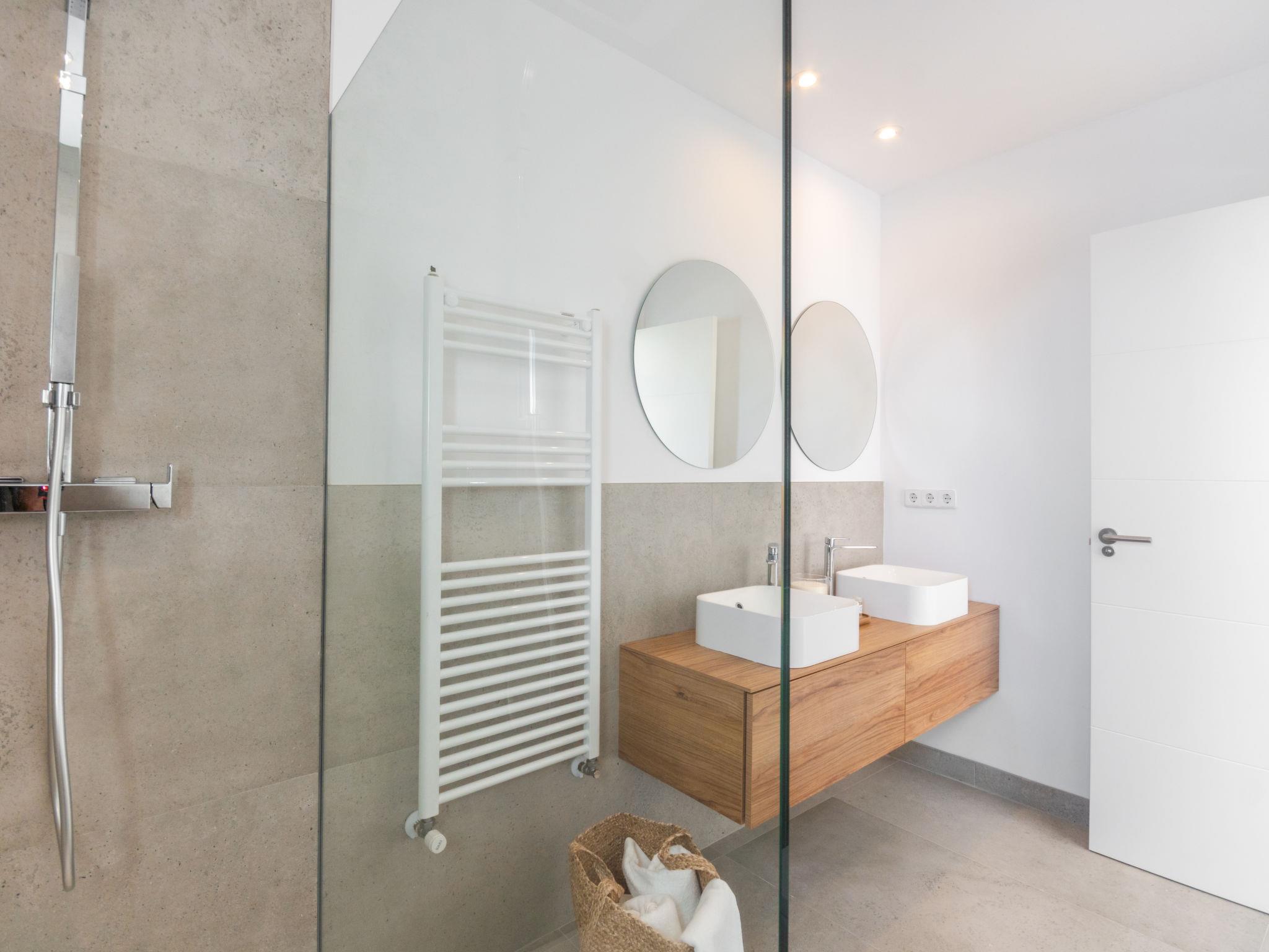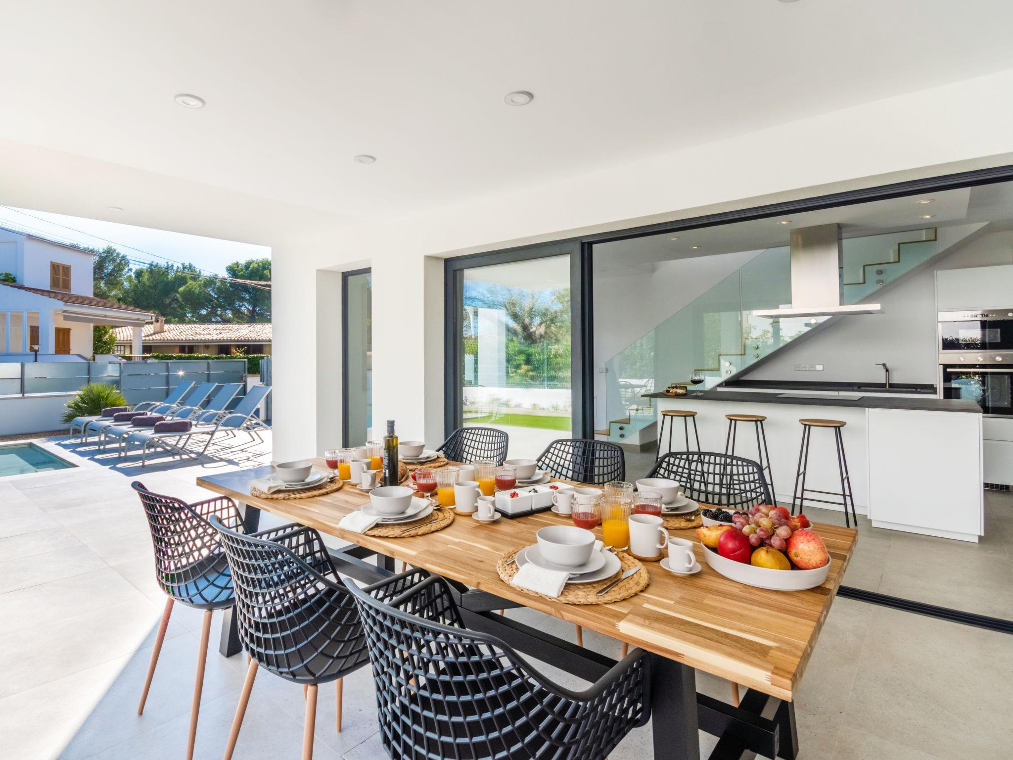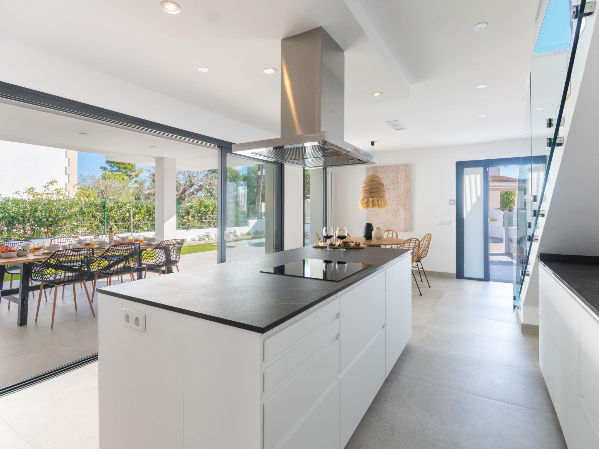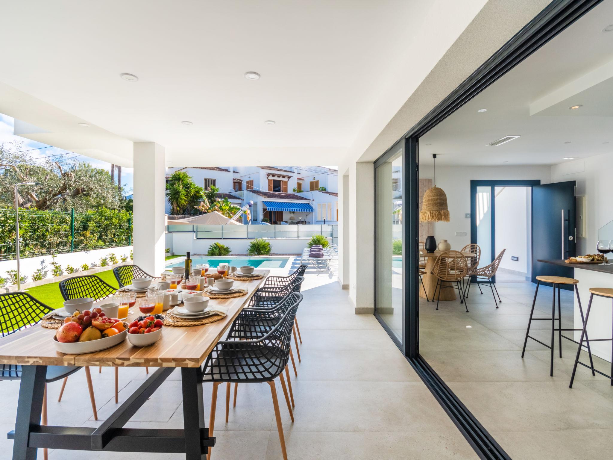 Barcares 1 km von Alcúdia: Modernes, sehr komfortables Doppelhaus "Ca na Cati", auf 2 Stockwerken, einseitig angebaut, Baujahr 2020. Im Ortsteil Barcarés, ruhige Lage im Villenviertel, 2 km vom Waldrand, 200 m vom Meer, 350 m vom Strand. Zur Alleinbenutzung: Garten mit Pflanzen, Hof, Schwimmbad eckig (4 x 3 m, 50 - 160 cm tief, saisonale Verfügbarkeit: 01.Jan. - 31.Dez.) mit Salzelektrolyse-Reinigungssystem. Aussendusche, Sitzplatz, Laube, Pergola, Gartenmöbel, Grill, Poolpflege durch den Besitzer/Gärtner. Im Hause: Internetzugang, Wireless LAN, Einstellraum für Fahrräder, Zentralheizung, Klimaanlage, Waschmaschine, Wäschetrockner. Parkplatz beim Haus auf dem Grundstück. Einkaufsgeschäft 1 km, Lebensmittelgeschäft 1 km, Supermarkt 1.2 km, Restaurant, Bar 950 m, Bäckerei 1.2 km, Fußgängerzone 500 m, Fahrradverleih 1 km, Biergarten 950 m, Zentrum zu Fuss in 15 Minuten erreichbar, Bushaltestelle 1 km, Sandstrand "Es Morer Vermell" 1 km, Kieselstrand "Sa Marina", Steinstrand "Barcares" 350 m, Badebucht 250 m. Sporthafen 3 km, Jacht-Hafen 3 km, Golfplatz (18 Loch) 5 km, Surfschule 1 km, Tennis 2 km, Reitstall 2.5 km, Sportzentrum 200 m, Wanderwege ab Haus, Radweg 500 m. Nahe gelegene Sehenswürdigkeiten: Ciudad Romana de Alcúdia. 1 km, Port de Pollença - Pollença 4 km, Puerto de Alcúdia 3 km, Serra de Tramuntana, Playa / Faro de Formentor. Wandergebiete: S'Albufera d'Alcúdia, Ermita de la Victoria - s'Atalaia d'Alcú, Puig de Sant Martí. Bitte beachten: geeignet für Familien, geeignet für Senioren. Objekt geeignet für 6 Erwachsene. Der Besitzer akzeptiert keine Jugendgruppen. Flugplatz 50 km vom Haus. Die Nachbarschaft ist sehr lärmempfindlich. Ruhe und gutes Benehmen wird erwartet.