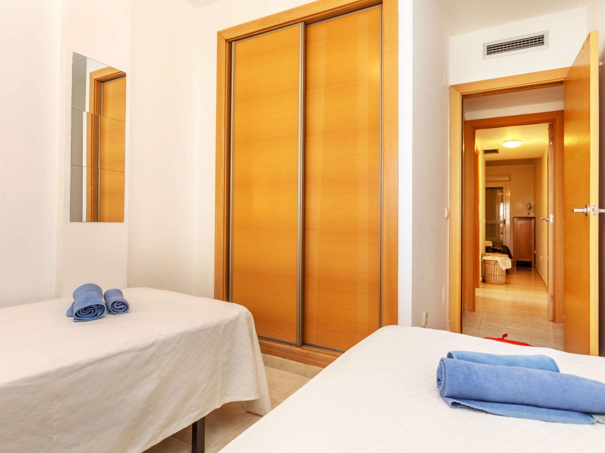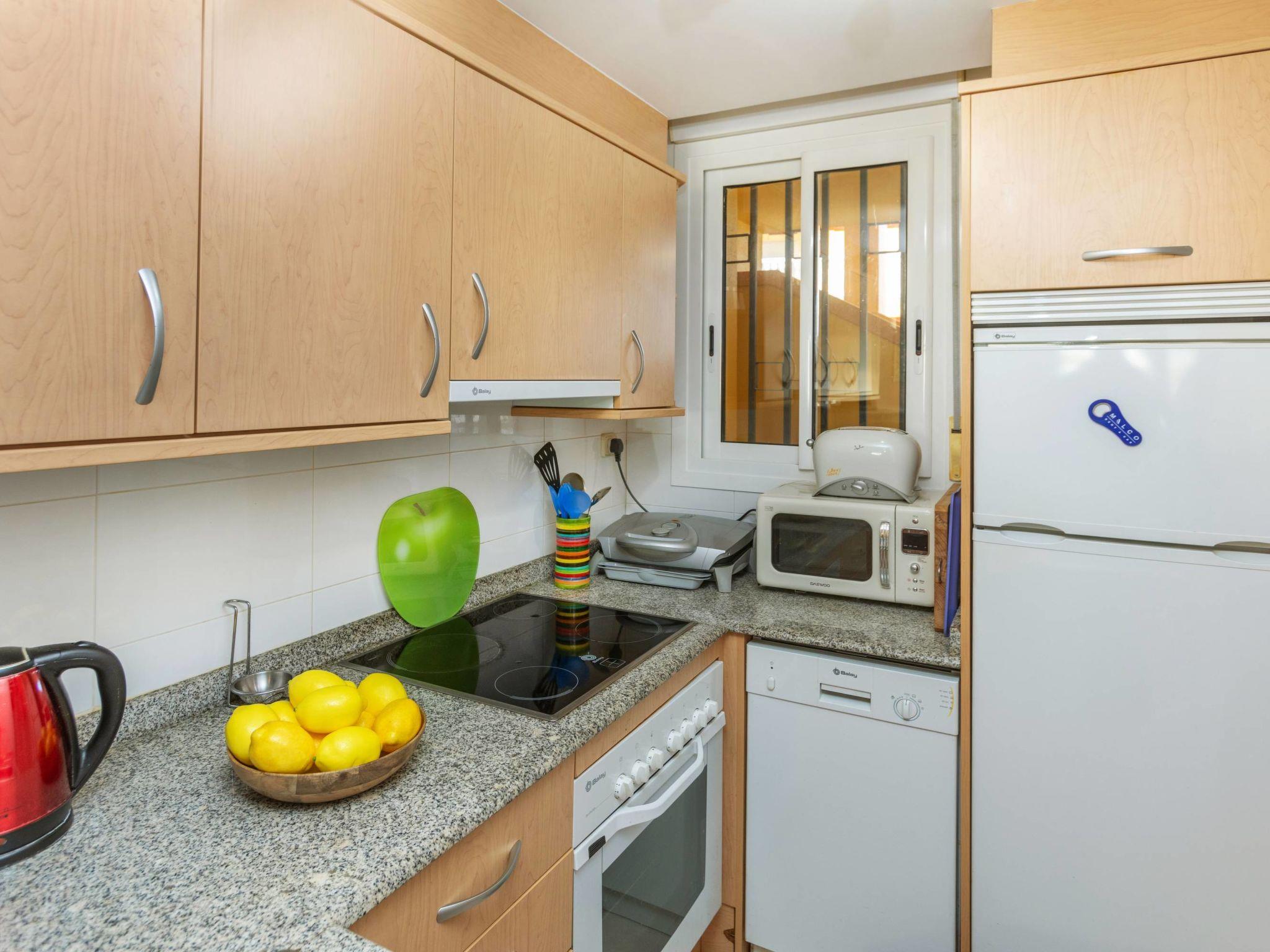 "Sierra de Irta", 3-Zimmer-Wohnung 60 m2. Zweckmässig und komfortabel eingerichtet: Wohn-/Esszimmer mit Esstisch, Digital-TV, Klimaanlage und Warmluftheizung. Ausgang zur Terrasse. 1 Zimmer mit 2 Betten (90 cm, Länge 190 cm), Klimaanlage und Warmluftheizung. 1 Zimmer mit 1 franz. Bett (1 x 135 cm, Länge 190 cm), Klimaanlage und Warmluftheizung. Kleine, offene Küche (Backofen, Geschirrspüler, 4 Glaskeramikplatten, Toaster, Wasserkocher, Mikrowelle, elektrische Kaffeemaschine) mit Boiler (50 Liter). Bad/WC, Dusche/WC. Terrasse. Terrassenmöbel. Sicht auf das Schwimmbad und den Garten. Zur Verfügung: Waschmaschine, Bügeleisen, Haartrockner. Internet (WLAN, gratis). Parkplatz (überdacht). Bitte beachten: Wohnung auf Strassenseite. Nichtraucher-Unterkunft. TV nur ES. VT-46894-CS // Reg. Nr.: ESFCTU00001200600075352100000000000000000VT-46894-CS3