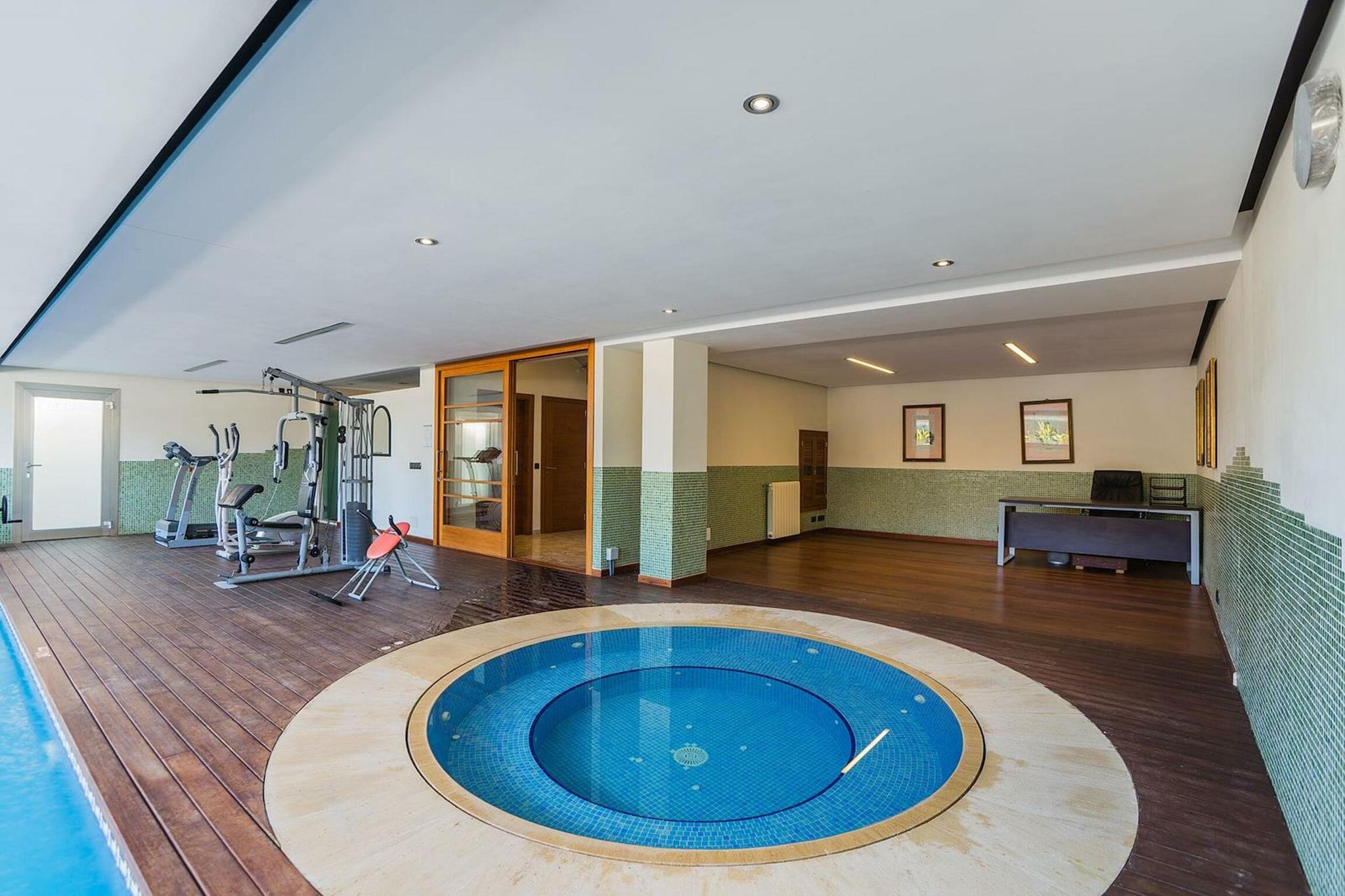 Parterre: (Küche(Kochherd(4 Kochplatten), Backofen, Mikrowelle, Spülmaschine, Kühl-/Gefrierkombination, Trockner), Wohn/Esszimmer(TV(Satellit), Esstisch, Sitzecke), Schlafzimmer(2x Einzelbett), Badezimmer(Dusche, Waschbecken, Toilette), Heizung(Zentral), Klimaanlage) Souterrain: (Schlafzimmer(2x Einzelbett), Schlafzimmer(2x Einzelbett), Schlafzimmer mit Badezimmer(Doppelbett, Dusche, Waschbecken, Toilette), Schlafzimmer mit Badezimmer(Etagenbett, Massagedusche, Waschbecken, Toilette), Badezimmer(Dusche, Waschbecken, Toilette), Klimaanlage) Poolhouse: (Toilette(Waschbecken, Toilette), Fitnessraum, Whirlwanne, Dusche, Pool(alleinige Nutzung, innen, 13 x 3 m., geöffnet von Mar bis einschließlich Sep)) Wintergarten/Veranda, Garage, Dusche(im Garten), Heizung(Zentral), Terrasse(überdacht), Garten, Gartenmöbel, Grill, Parkplatz, Pool(alleinige Nutzung, beheizbar, 13 x 3 m.), Tischtennisplatte