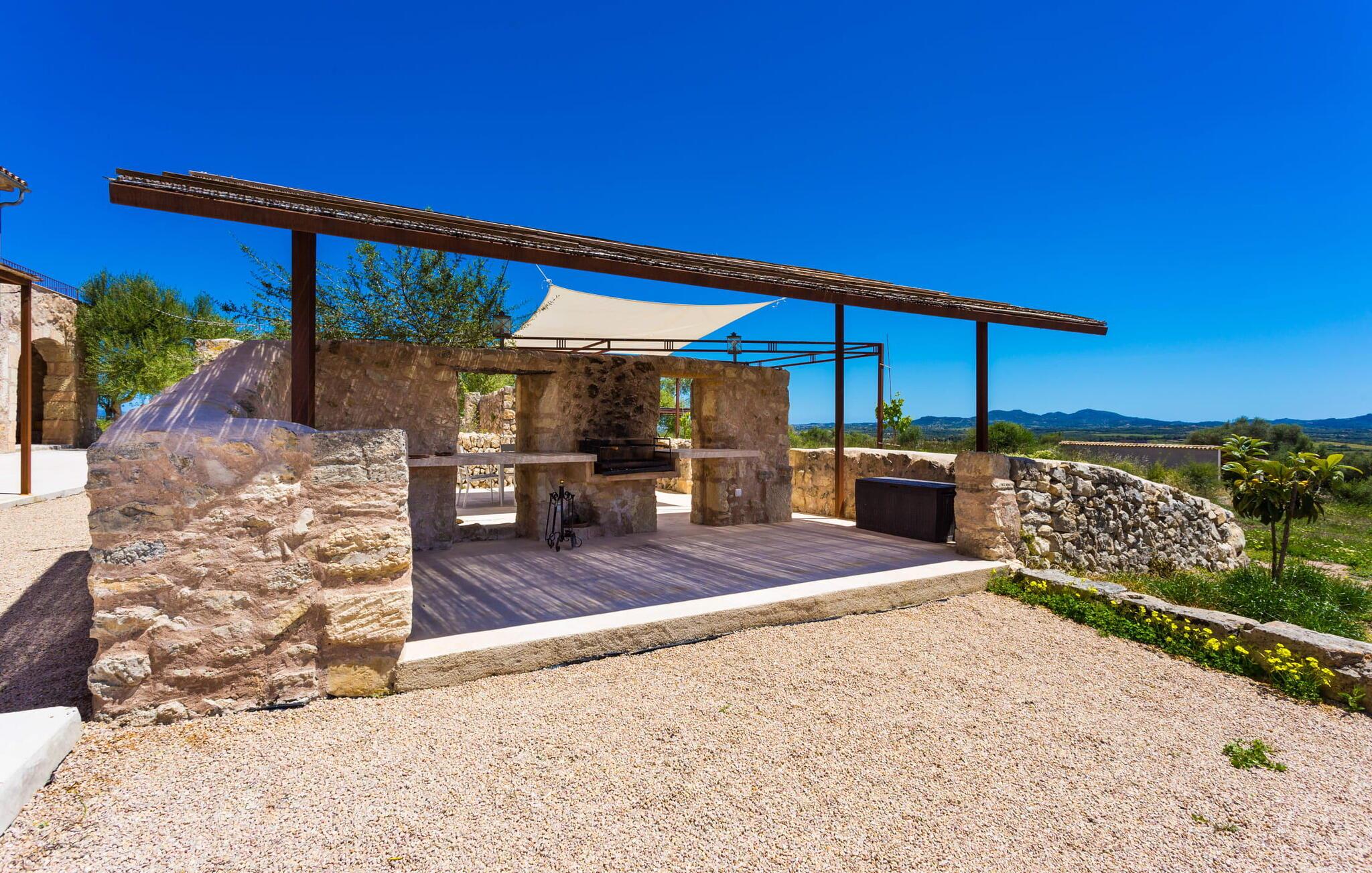Der nach Süden ausgerichtete Außenbereich bietet großzügigen Platz zum Grillen, Essen und Sonnenbaden. Ein herausragendes Merkmal ist der chlorfreie Infinity-Pool, der zum Entspannen und Genießen der wunderschönen Landschaft einlädt. Die Sonnenterrasse lädt zum Entspannen in der ruhigen Umgebung ein. Eine rustikale Außenküche und ein Grillplatz ergänzen einen schattigen Essbereich mit atemberaubender Aussicht, während sich ein weiterer gemütlicher Essbereich praktischerweise neben dem Haus befindet. An der Seite befindet sich eine charmante, kühle Terrasse mit einer Tischtennisplatte und eine halboffene Terrasse bietet zusätzliche Sitzgelegenheiten. Der Weg zur Finca ist komplett asphaltiert, mit schattigen Parkplätzen und einem Abstellraum für Fahrräder.