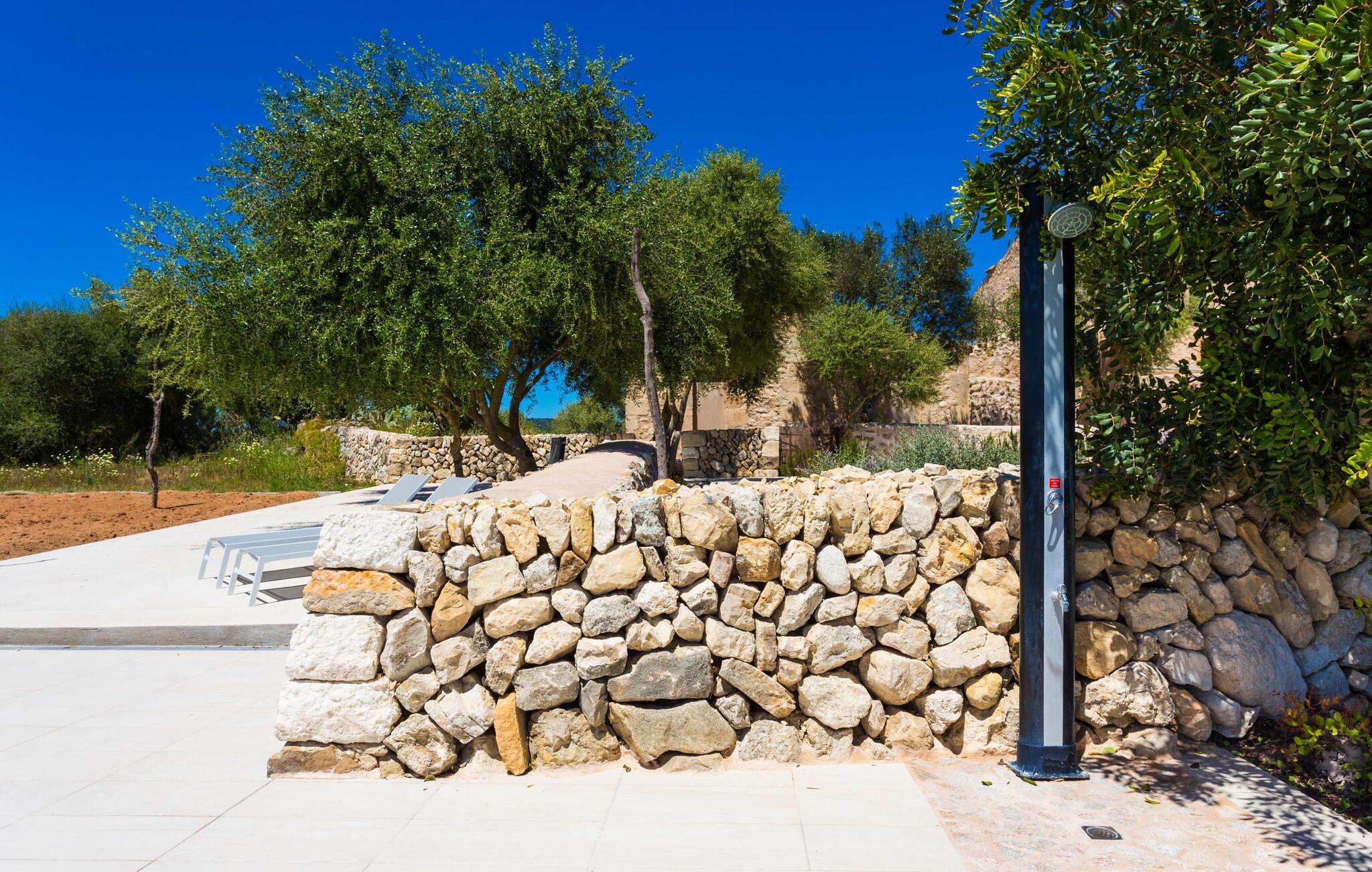 Die moderne Villa „Cases d'Alcúdiarrom“ liegt zwischen Vilafranca de Bonany und Felanitx, inmitten einer wunderschönen und unerschlossenen Landschaft. Der Wochenmarkt ist nur 15 Minuten entfernt und auch weitere Einkaufsmöglichkeiten gibt es in dem kleinen, traditionellen Dorf. Über Felanitx ist ein perlweißer Strand mit kristallklarem Wasser in nur wenigen Minuten erreichbar.