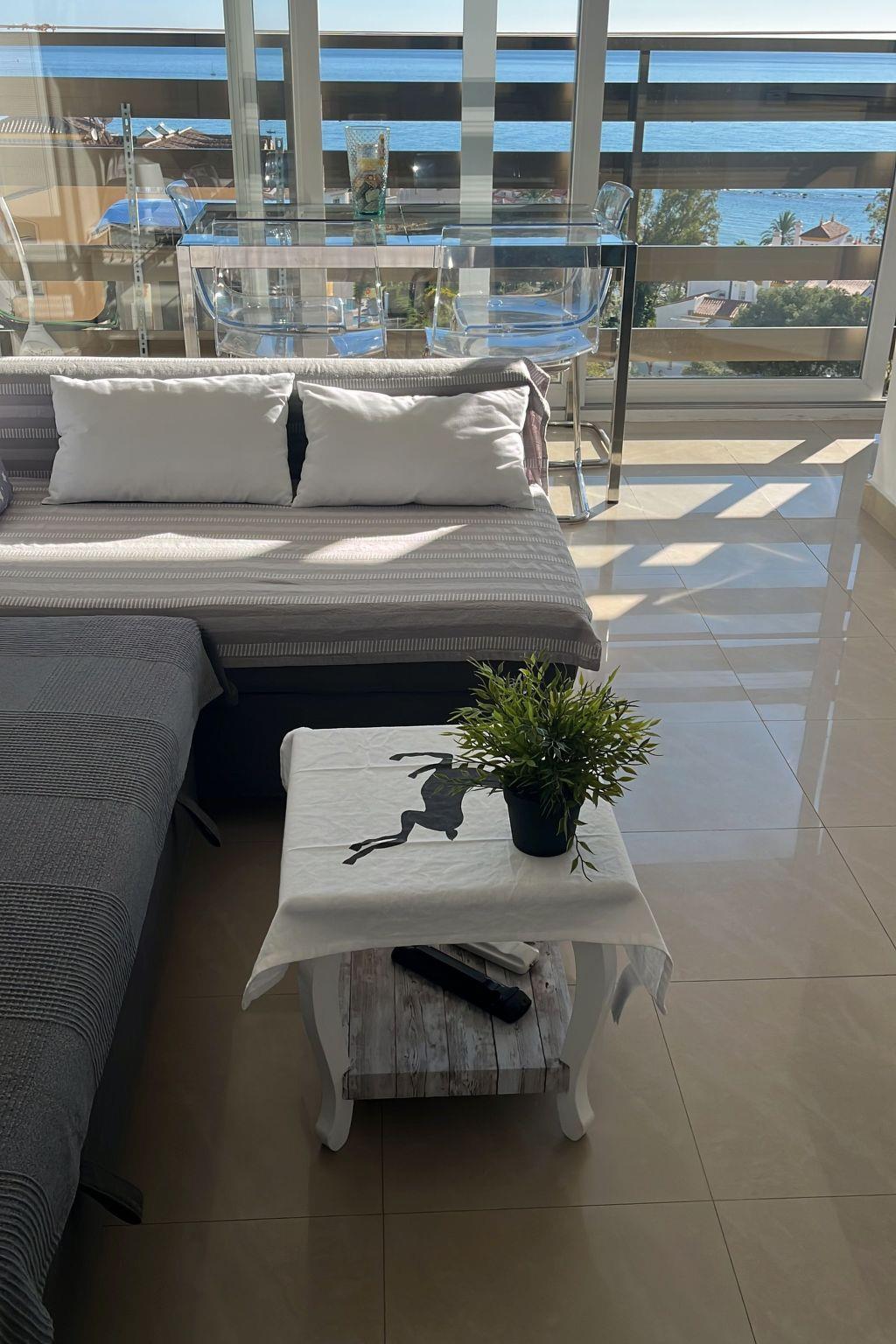 Es ist ein 8. Stock mit freiem Blick auf das Mittelmeer. 200 m vom Strand entfernt, mit Bushaltestellen, Supermärkten, Apotheken und Restaurants. 3 Swimmingpools in verschiedenen Größen und eine Sonnenterrasse mit Grünflächen aus Naturrasen.