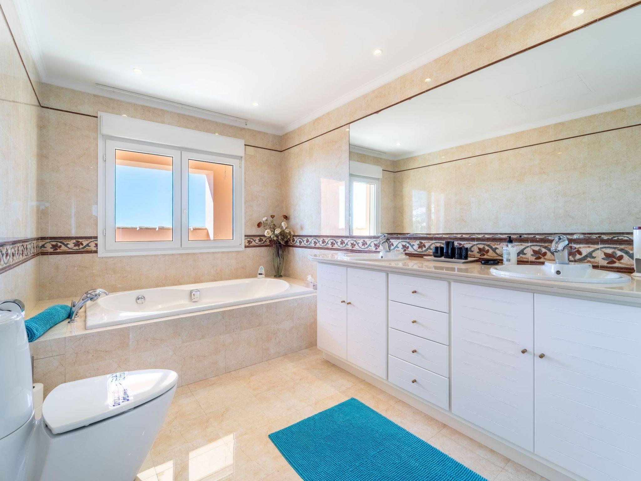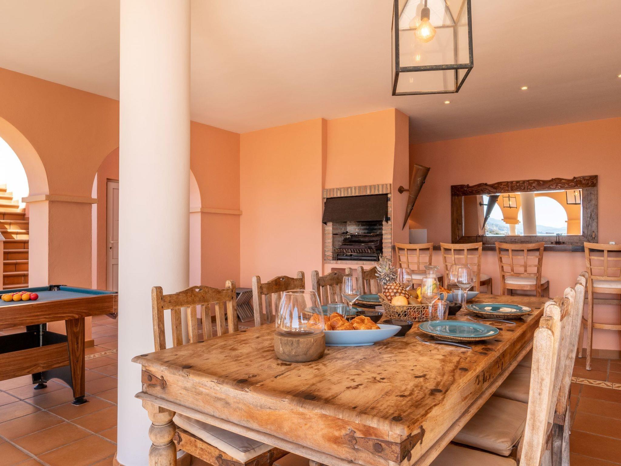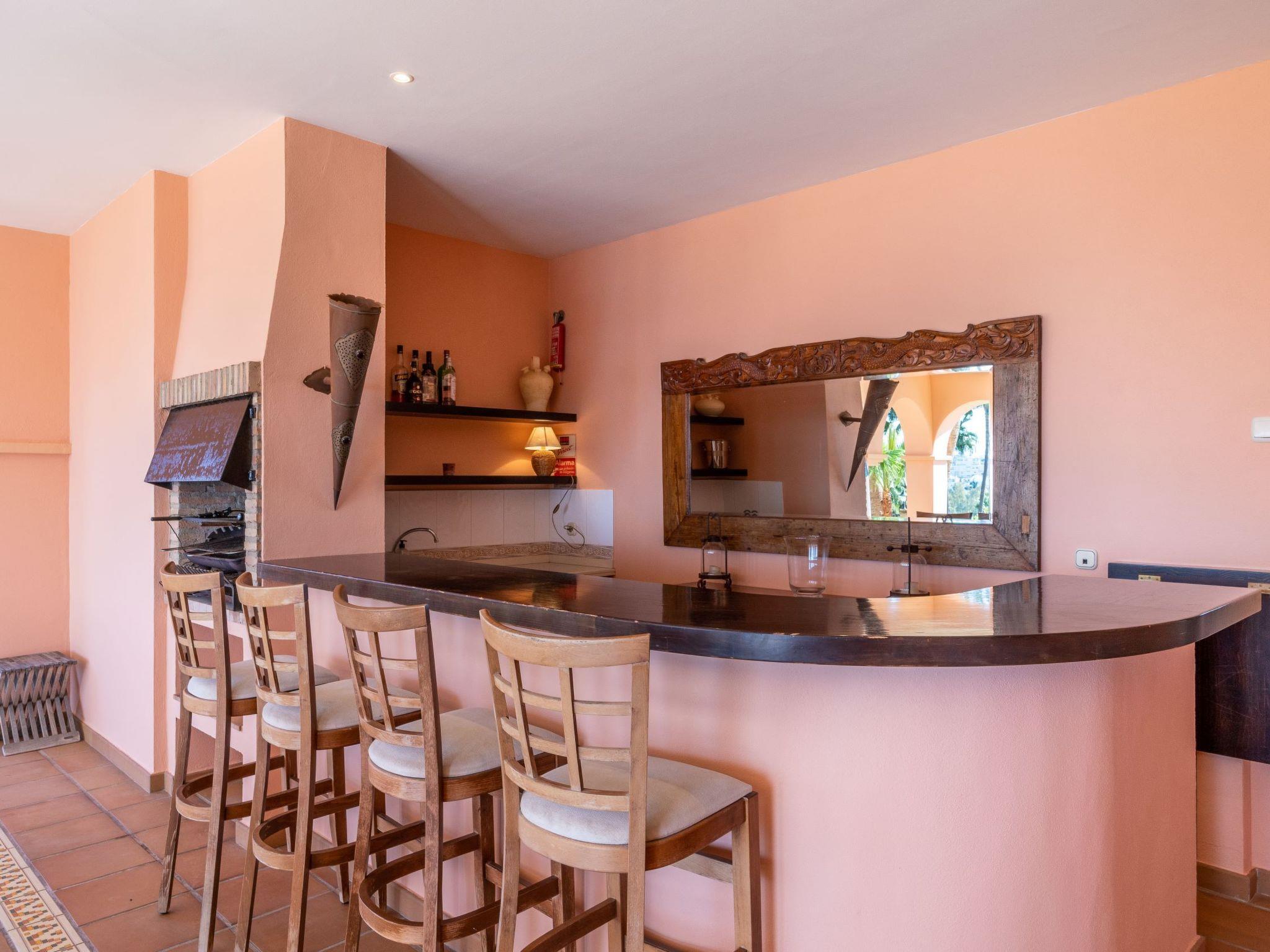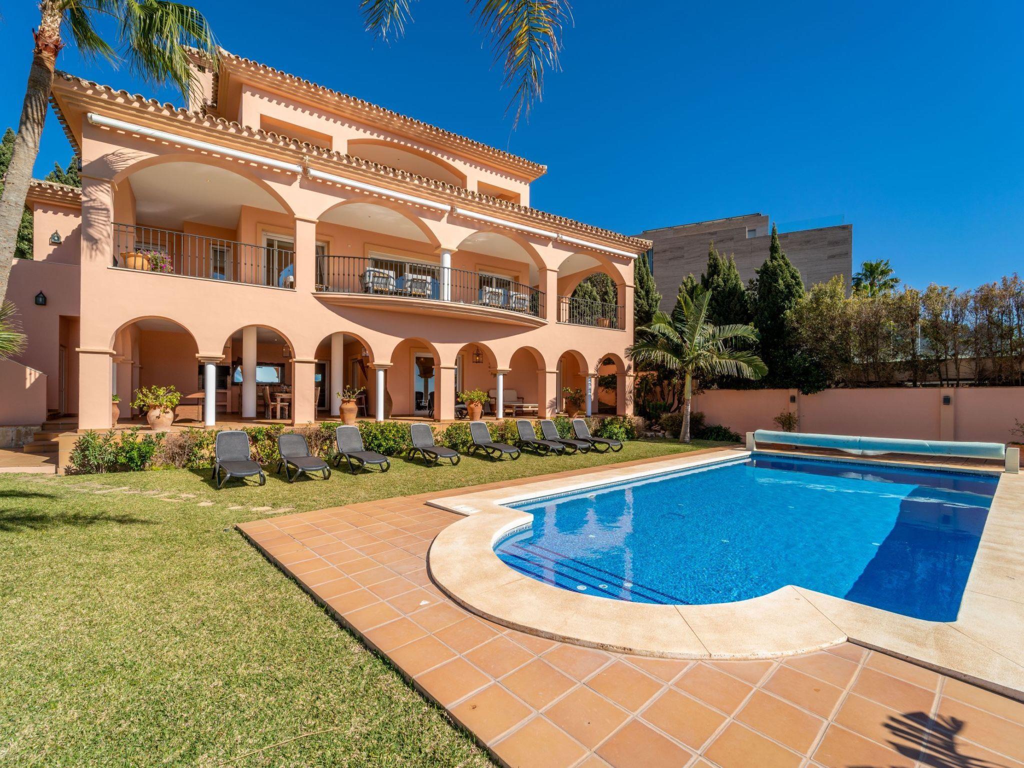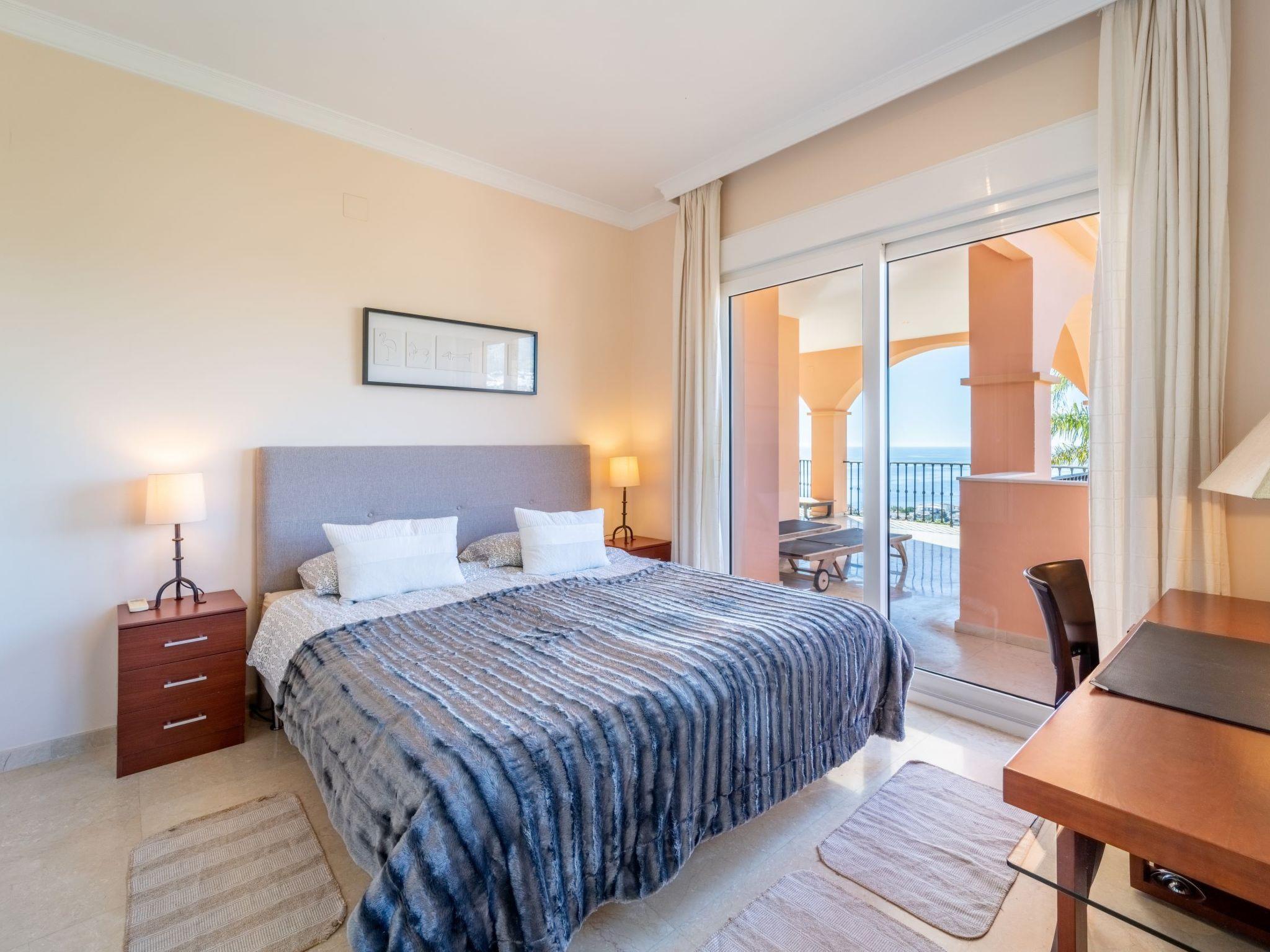 Die Villa wurde im traditionellen andalusischen Stil erbaut, mit Bögen und Säulen für die überdachten Terrassen, die in den heißen Sommern einen kühlen Zufluchtsort bieten, und mit großer Sorgfalt bei der Einrichtung und Dekoration. Die Villa verkörpert guten Geschmack, Komfort und Stil. Das Gefühl von Ruhe und Weite stellt sich automatisch ein, sobald man die imposante Eingangshalle betritt und direkt auf das Meer hinausblickt. Das Volumen und die Qualität dieser eleganten Ferienvilla sind sofort ersichtlich. Das Anwesen ist an den Hang des Hügels geschmiegt. Das Erdgeschoss besteht aus einer 6 Meter hohen Eingangshalle und einem geräumigen Wohnzimmer mit direktem Zugang zu einer großen überdachten Terrasse durch Glasschiebetüren. Die moderne Küche ist komplett eingerichtet und ausgestattet. Auf der gleichen Etage befinden sich ein Gäste-WC und zwei Schlafzimmer, eines davon mit Bad en-suite. Im Obergeschoss befindet sich das geräumige Hauptschlafzimmer mit offenem Ankleideraum, eigenem Bad und eigener Terrasse. Im Untergeschoss befinden sich ein Hauswirtschaftsraum, eine Gästetoilette, ein Badezimmer und zwei Schlafzimmer mit Zugang zu einer überdachten Terrasse mit Esstisch, Grill und Außenbar, die an den Garten mit Swimmingpool angrenzt.