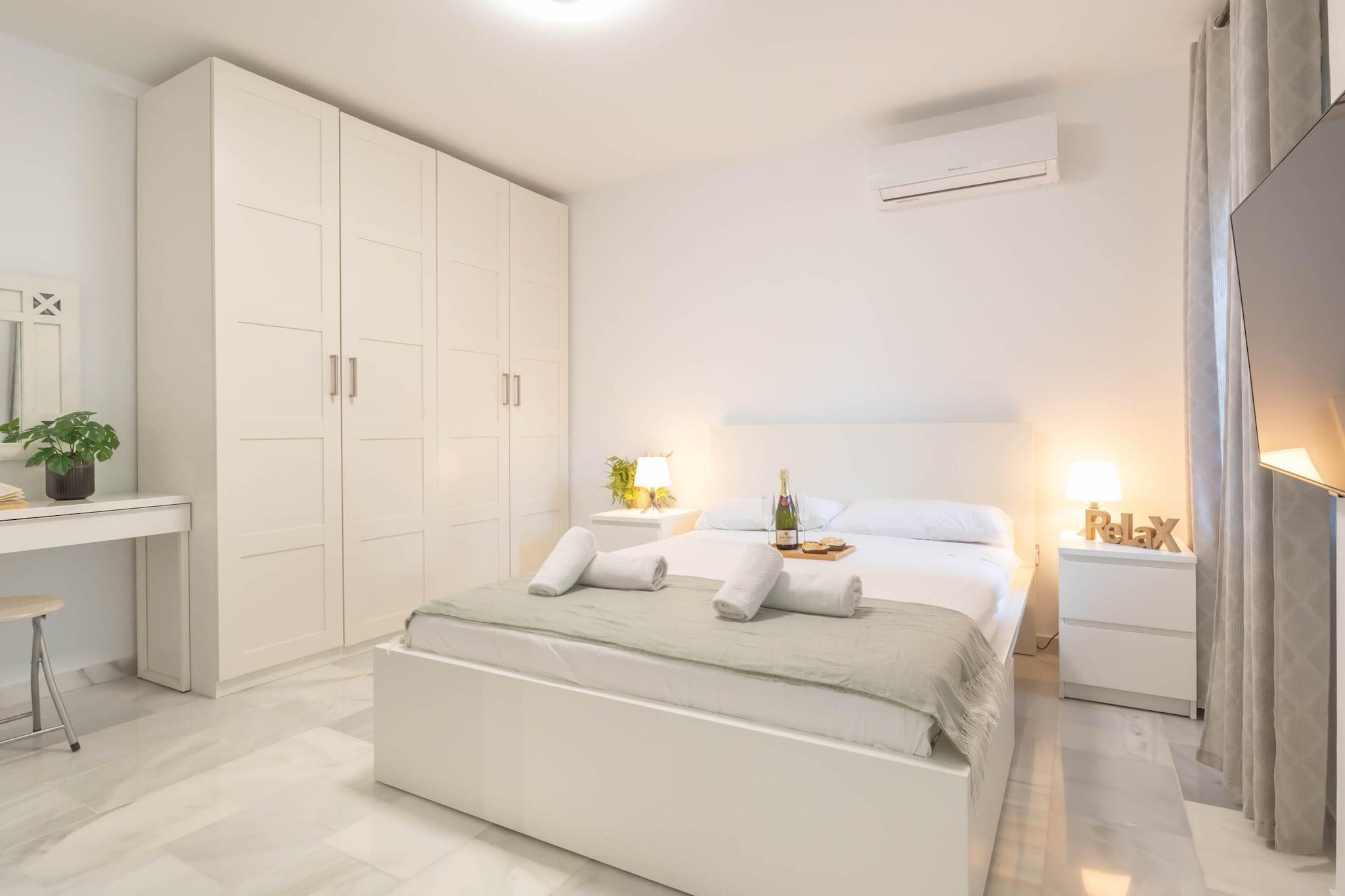 Helle Wohnung in einer der besten Lagen von Benalmádena. Die Unterkunft verfügt über ein Schlafzimmer mit Doppelbett und eigenem Bad, ein Schlafzimmer mit zwei Einzelbetten, ein Badezimmer mit Dusche, eine offene Küche mit Essbereich, die in ein großes, helles Wohnzimmer übergeht, und eine große Terrasse mit Gartenblick. Benalmádena ist an der Costa del Sol bekannt für sein vielfältiges Freizeitangebot, seine Restaurants, seine Gastronomie und seine traumhaften Strände. Besonders hervorzuheben ist die große Auswahl an Aktivitäten, die Sie während Ihres Urlaubs unternehmen können: Wassersport am Strand, Bootsverleih in Puerto Marina, Spaß mit den Kindern in den berühmten Wasserparks, ein Besuch in Selwo Marina mit seiner vielfältigen Tierwelt oder sogar eine Fahrt mit der Seilbahn, um zu entspannen und die Gegend zu erkunden. Wenn Sie mehr über die Costa del Sol erfahren möchten, erreichen Sie Städte wie Málaga, Fuengirola, Marbella oder Mijas in nur 20–30 km Entfernung. Die Unterkunft bietet Internet, Klimaanlage und einen Parkplatz innerhalb der Wohnanlage (kein fester Stellplatz). Genießen Sie auch den herrlichen Pool direkt vor der Tür. Worauf warten Sie noch? Buchen Sie Ihren Urlaub! Wir freuen uns auf Sie!