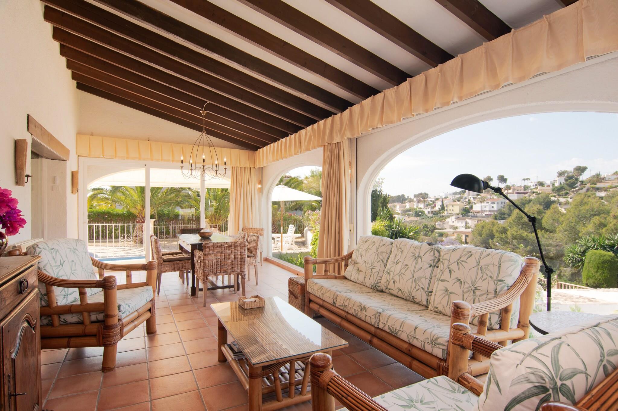 Familienurlaub am Meer Diese Villa mit 3 Schlafzimmern in Benissa bietet Platz für bis zu 6 Gäste und einen geräumigen Rückzugsort mit großem Privatpool, nur 2 km vom Strand entfernt. Entspannen Sie auf Sonnenliegen, speisen Sie auf der Terrasse oder entspannen Sie in einem der drei Gärten. Klimaanlage, Heizung und mehrere Sitzbereiche sorgen für Komfort drinnen und draußen. Zwei Grills und Gartenmöbel ermöglichen müheloses Essen im Freien, während der Wintergarten ein gemütlicher Ort zum Lesen oder für geselliges Beisammensein ist. Günstige Küstenlage Die Villa liegt in der Nähe der charmanten Städte Moraira und Calpe, sodass Sie lokale Sehenswürdigkeiten, Restaurants und Geschäfte im Umkreis von 900 m bequem erreichen. Golfbegeisterte können einen nur 800 m entfernten Golfplatz genießen, während Wassersport und Strandaktivitäten 4 km vom Anwesen entfernt angeboten werden. Für ein größeres Abenteuer sind die historischen Städte Valencia und Alicante nur eine Autostunde entfernt. Durchdachte Ausstattung Die Villa verfügt über eine voll ausgestattete offene Küche, mehrere Ess- und Wohnbereiche sowie drei Badezimmer für zusätzlichen Komfort. Ein Carport und Parkplätze sind im Preis inbegriffen, und der Kinderbereich im Pool sorgt für Sicherheit für die Kleinen. Der Flughafen Alicante ist 85 km entfernt, was die Anreise einfach und unkompliziert macht. Mit einer Mischung aus Outdoor-Freizeitaktivitäten und praktischen Annehmlichkeiten ist diese Villa ideal für einen unvergesslichen Urlaub an der Costa Blanca.