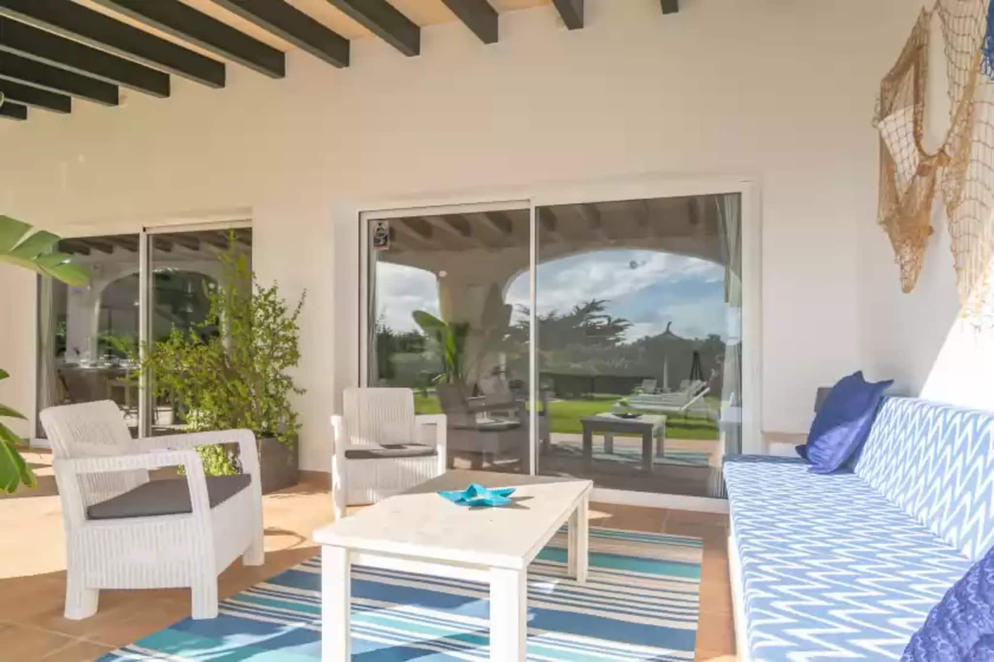 Der große, private Salzwasserpool, 11m x 4,5m mit einer konstanten Tiefe von 2m, ist der Protagonist des weitläufigen Außenbereiches. Die geschmackvoll angelegten Terrassen haben verschiedene Ecken, in denen Sie sich entspannen können. Es gibt Liegen, um sich von der Sonne verwöhnen zu lassen, einen Bereich mit Outdoor-Sofas, zum plaudern und für den Kaffee am Nachmittag und einen großen Tisch, für die Mahlzeiten an der frischen Luft. Das Grundstück ist eingezäunt und Sie haben keine direkten Nachbarn. Im Inneren des einstöckigen Gebäudes, das erst vor kurzem gebaut wurde, überzeugen helle, hochwertig eingerichtete Räume. Das große, klimatisierte Wohn-Esszimmer, hat einen Kamin und Smart TV, ideal für schöne Abende. Die Küche ist offen zum Wohnzimmer und hat alles, was Sie brauchen, um auf dem Induktionskochfeld großartige Mahlzeiten zu kochen. Es gibt eine Waschmaschine, Bügeleisen und Bügelbrett. Insgesamt 4 klimatisierte Schlafzimmer, mit Zugang zum Garten, stehen zur Auswahl. Drei von ihnen haben ein je Doppelbett und eines hat zwei Einzelbetten. Drei "en -Suite" Duschbäder und ein weiteres Duschbad, welches für alle Bewohner zugänglich ist, komplettieren die Räumlichkeiten. Wir können auf Anfrage ein Kinderbett und einen Hochstuhl zur Verfügung stellen, wenn Sie mit Ihrem Baby reisen. Die Lage des Hauses ermöglicht es Ihnen, verschiedene Sehenswürdigkeiten leicht und schnell zu erreichen. Das bezaubernde Dorf Binibeca und seine schöne Bucht sind nur einen Katzensprung vom Haus entfernt. Andere Küstengebiete sind ebenfalls in der Nähe, das nächstgelegene ist Playa Binisafuller. Ebenfalls in der Nähe befindet sich der Wasserpark Splash Sur oder der imposante Torre de Punta Prima, der in einer privilegierten Landschaft liegt. In dem malerischen Dorf Sant Lluís finden Sie alle Annehmlichkeiten für einen unabhängigen Aufenthalt sowie verschiedene Restaurants, in denen Sie die balearische Gastronomie genießen können. Eventuelle Nebenkosten müssen beim Anbieter nachgefragt werden. Haustiere sind verboten. Partys oder ähnliche Veranstaltungen sind nicht gestattet. Es gibt Freiluftparkplätze für 2 Autos. Entfernungen Strand: 0.5 km - Playa Binisafúller Flughafen: 11.4 km - Maó Golfplatz: 7.1 km - Minicamp de Golf Ortsmitte: 5.8 km - Sant Lluís Bahnhof: 0 km Bushaltestelle: 0.55 km - Binissafuller Platja Fähre: 13.3 km - Maó Krankenhaus: 10.5 km - Hospital General Mateu Orfila Touristen Lizenz: ET2298MEEinheitsregister: ESFCTU00000701300026219700000000000000000000ET2298ME4Bei der Anreise muss die Ecotasa (Touristensteuer der Balearen) bar bezahlt werden. Der zu zahlende Betrag beträgt zwischen 0.55EURO pro Nacht und Gast in der Nebensaison und 2.2EURO pro Nacht und Gast in der Hochsaison. Ab dem 9. Tag reduziert sich die Steuer um die Hälfte. Personen unter 16 Jahren sind davon ausgenommen.