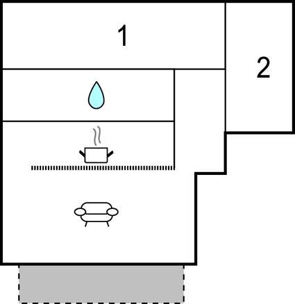 Badezimmer (nr. 1) - WC. Warmes und kaltes Wasser. Dusche