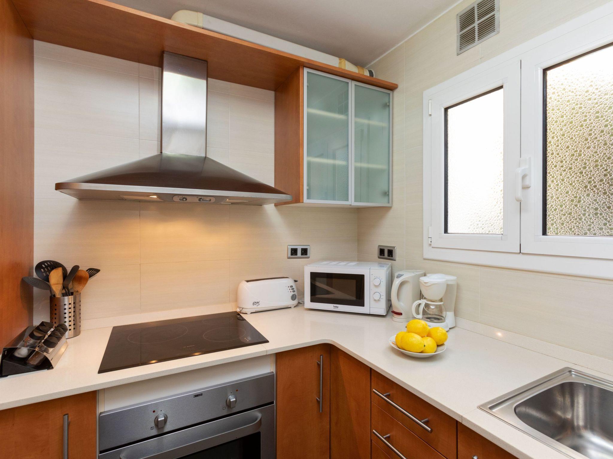 "Santa Cruz", 3-Zimmer-Wohnung 68 m2 im 3. Stock. Zweckmässig eingerichtet: Wohn-/Esszimmer mit Digital-TV. Ausgang zur Terrasse. 1 Zimmer mit 2 Betten (80 cm, Länge 190 cm). 1 Zimmer mit 1 franz. Bett (135 cm, Länge 190 cm). Ausgang zur Terrasse. Küche (Backofen, Geschirrspüler, 3 Glaskeramikplatten, Toaster, Wasserkocher, Mikrowelle, elektrische Kaffeemaschine). Dusche/Bidet/WC. Keine Heizmöglichkeit. 2 Terrassen 6 m2. Terrassenmöbel. Zur Verfügung: Waschmaschine, Bügeleisen, Kinderhochstuhl, Babybett bis 2 Jahre, Haartrockner. Internet (WLAN, gratis). Bitte beachten: geeignet für Familien. TV nur ES. HUTG021849 // Reg. Nr.: ESFCTU000017028000044039000000000000000000HUTG0218494