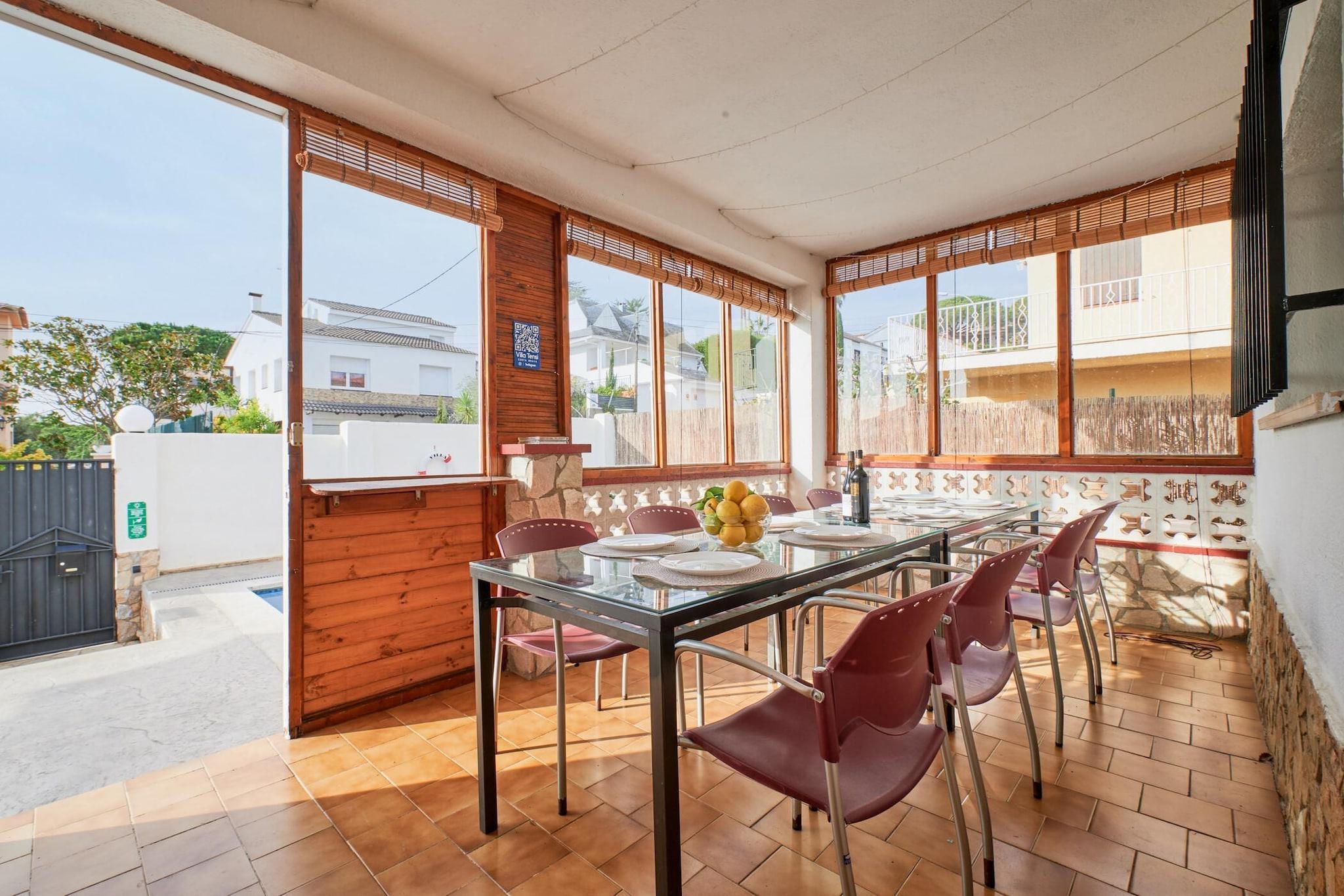 Diese gemütliche Villa mit 5 Schlafzimmern liegt in einem ruhigen Wohngebiet nur 2 km von Blanes entfernt und ist der perfekte Rückzugsort für einen Familienurlaub an der Costa Brava. Mit einer maximalen Kapazität von 10 Gästen bietet das Anwesen einen 470 m² großen Außenbereich mit einem privaten Pool (5 x 4 m), einem eingebauten Grill, einer überdachten Veranda und einer Terrasse mit atemberaubendem Bergblick. Die Villa verfügt außerdem über einen Parkplatz. Die ruhige Umgebung macht sie ideal für einen erholsamen Urlaub in der Nähe der schönen Strände und Annehmlichkeiten von Blanes. Im Inneren erstreckt sich die Villa über 150 m² komfortable Wohnfläche, die sich auf zwei Etagen verteilt. Das Erdgeschoss umfasst ein Esszimmer mit Kamin und Fernseher, während das Obergeschoss ein geräumiges Wohnzimmer mit einem Schlafsofa bietet. Die voll ausgestattete Küche sorgt dafür, dass Sie mit Geräten wie Kühlschrank, Mikrowelle, Backofen, Kaffeemaschine und Waschmaschine problemlos Mahlzeiten zubereiten können. Die Villa verfügt über zwei Doppelzimmer, ein Zimmer mit zwei Einzelbetten und zwei Einzelzimmer sowie zwei Badezimmer mit Duschen und bietet ausreichend Platz für die ganze Familie. Zu den weiteren Annehmlichkeiten gehören kostenloses WLAN und eine optionale Heizung gegen einen geringen Aufpreis. Haustiere sind in der Villa auf Anfrage und gegen Aufpreis erlaubt. Bitte beachten Sie, dass Jugendgruppen nicht akzeptiert werden, was diese Unterkunft ideal für Familien macht, die einen erholsamen und ruhigen Urlaub suchen. Mit ihren komfortablen Wohnräumen, dem privaten Pool und der günstigen Lage ist diese Villa der perfekte Ausgangspunkt, um Blanes und die atemberaubende Costa Brava zu erkunden.