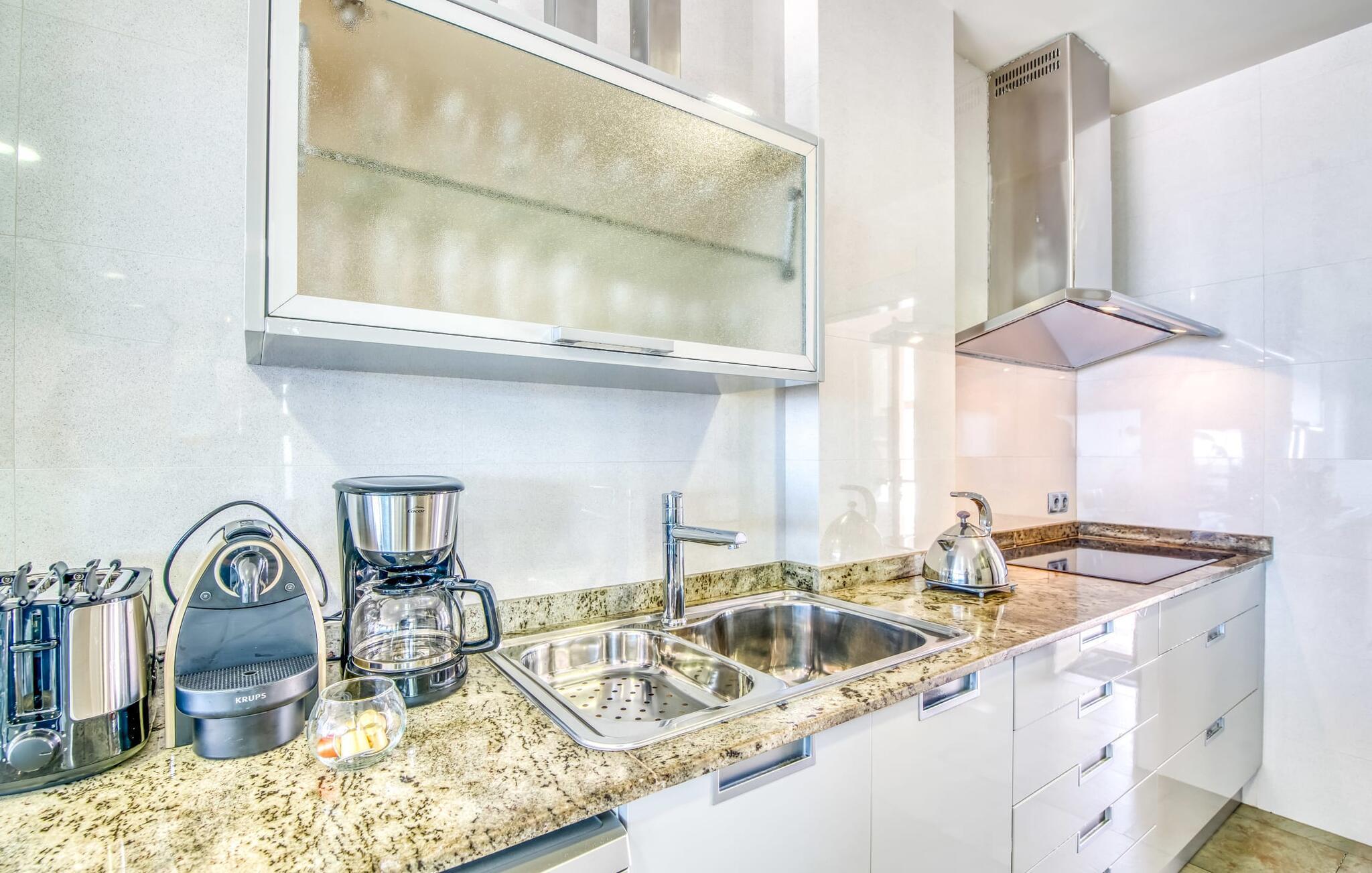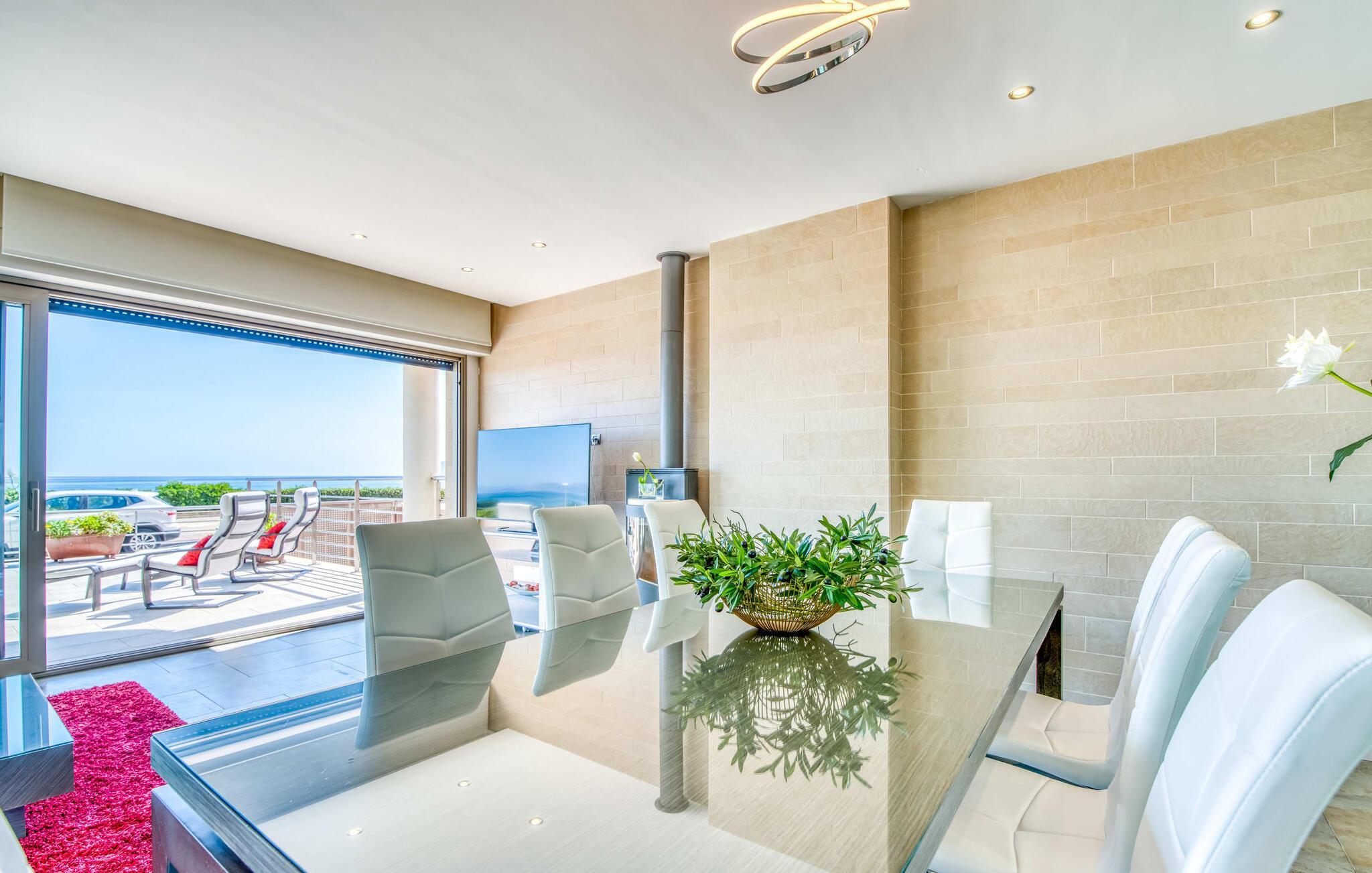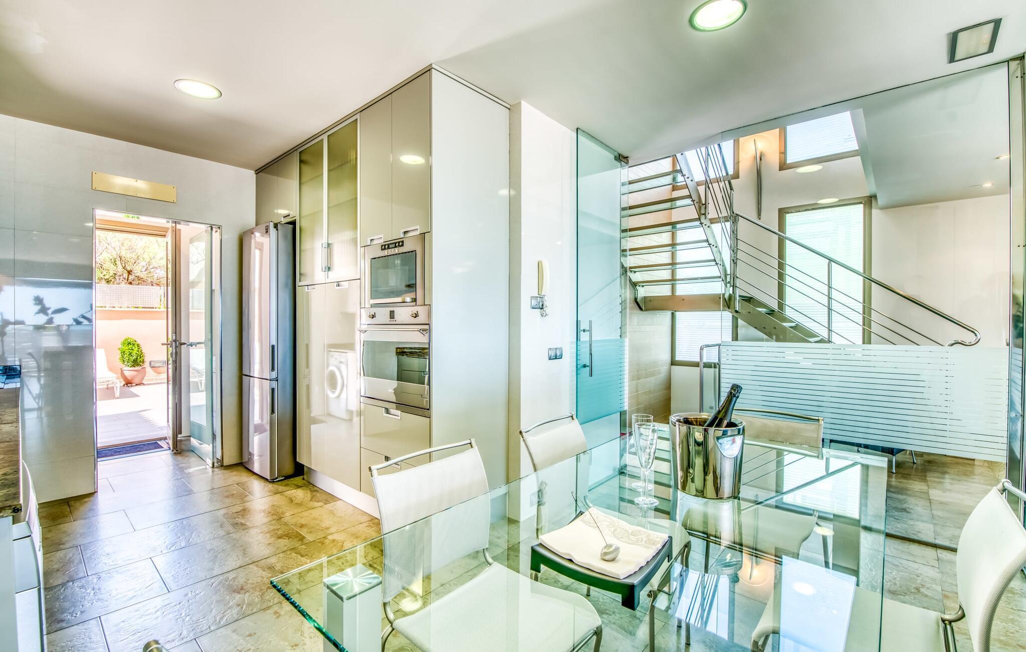Das Meer und einladende Bademöglichkeiten sind somit nicht weit – aber auch im hauseigenen Pool (nicht beheizbar) lässt sich köstliches Badevergnügen im Handumdrehen verwirklichen. Der große Säulenraum mit dem über eine Treppe erreichbaren langen Schwimmbecken und den blauen Mosaiksteinen wirkt fast wie eine kleine Badeanstalt. Außer, dass Sie hier uneingeschränkte Privatsphäre genießen. Viel Licht fällt durch bodentiefe Fenster in die elegant eingerichteten Räume, in denen ein moderner, angenehm kühler Stil vorherrscht. Wohn- und Essbereich sind zueinander offen und die trendige, luxuriöse, voll ausgestattete Küche nebenan bietet einen weiteren Essbereich sowie direkten Zugang nach draußen. Durch die Glaselemente zwischen Wohnzimmer und Küche entsteht ein sehr charmanter Großzügigkeitseffekt. Ein Badezimmer vervollständigt das Erdgeschoss. Eine schicke Glastreppe führt in die nächste Etage, wo sich geräumige, geschmackvoll eingerichtete Schlafzimmer – teilweise mit herrlichem Meerblick – sowie eigene Badezimmer befinden. Besonders großzügig ist das großzügig verglaste Schlafzimmer im 2. Obergeschoss. Hier ist sogar Platz für eine Sofazone. Ein zusätzlicher Balkon mit tollem Blick auf das Meer und ein Badezimmer en Suite runden diese Wohnebene ab. „Bohemi“, das für Body, Health, Mind steht, macht seinem Namen alle Ehre, indem es seinen Gästen in jeder Hinsicht höchsten Komfort bei perfekter Ästhetik bietet.