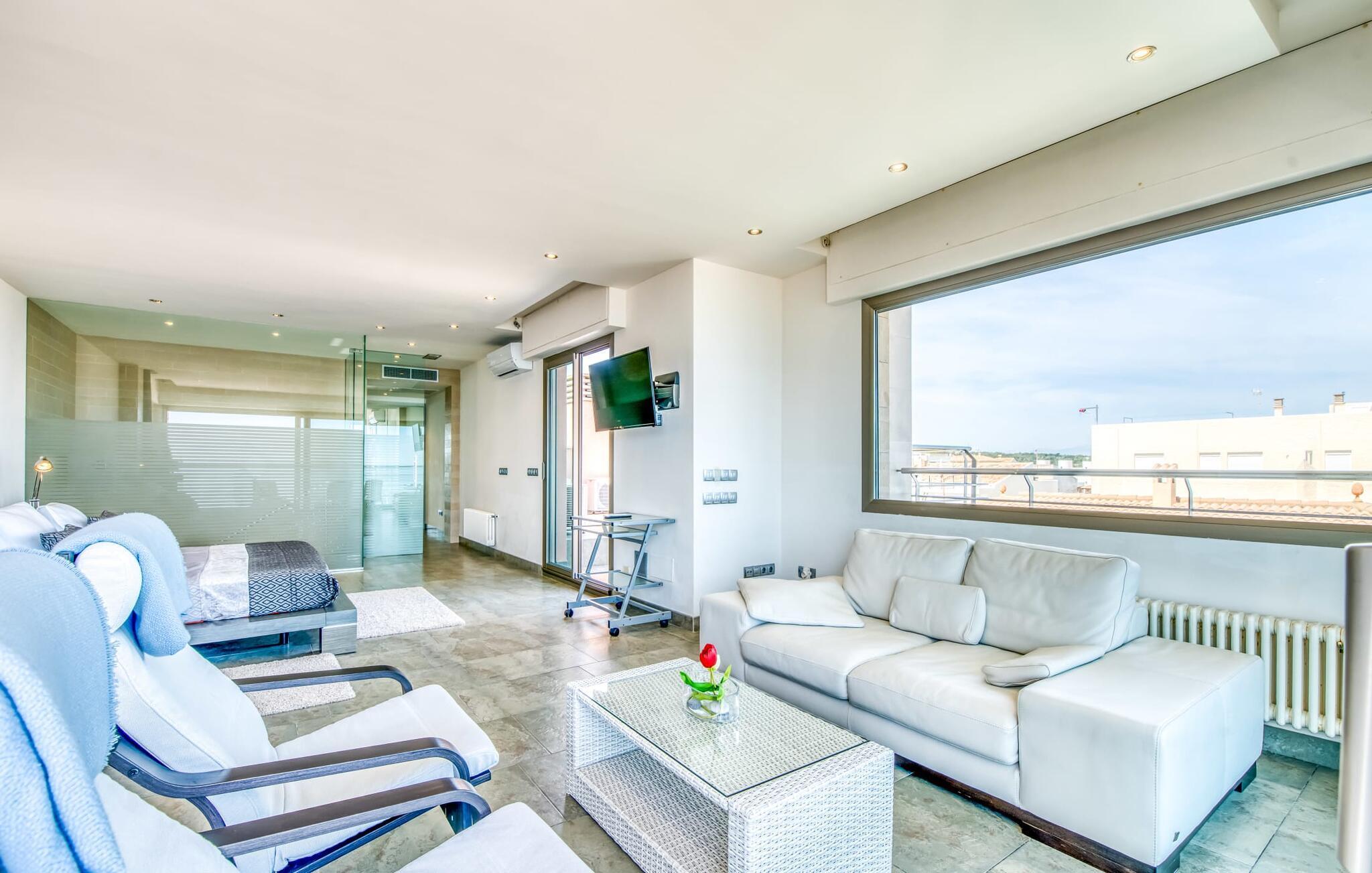 Diese elegante Mallorca-Villa liegt in erster Meereslinie im Küstenort Son Serra de Marina. Einkaufsmöglichkeiten sowie Restaurants sind von dieser Unterkunft aus fußläufig erreichbar. Auch mehrere schöne Strände sind leicht zu erreichen. Durch die Lage an der kleinen Straße erreichen Sie auch andere Ziele schnell. Wenn Sie sich beispielsweise für Orte von kulturellem und historischem Wert interessieren, sollten Sie die Nekropole von Son Real besuchen. Ein weiterer Geheimtipp für Son Serra de Marina: die Strandbar El Sol.
