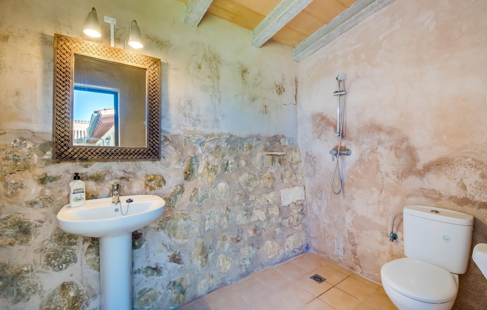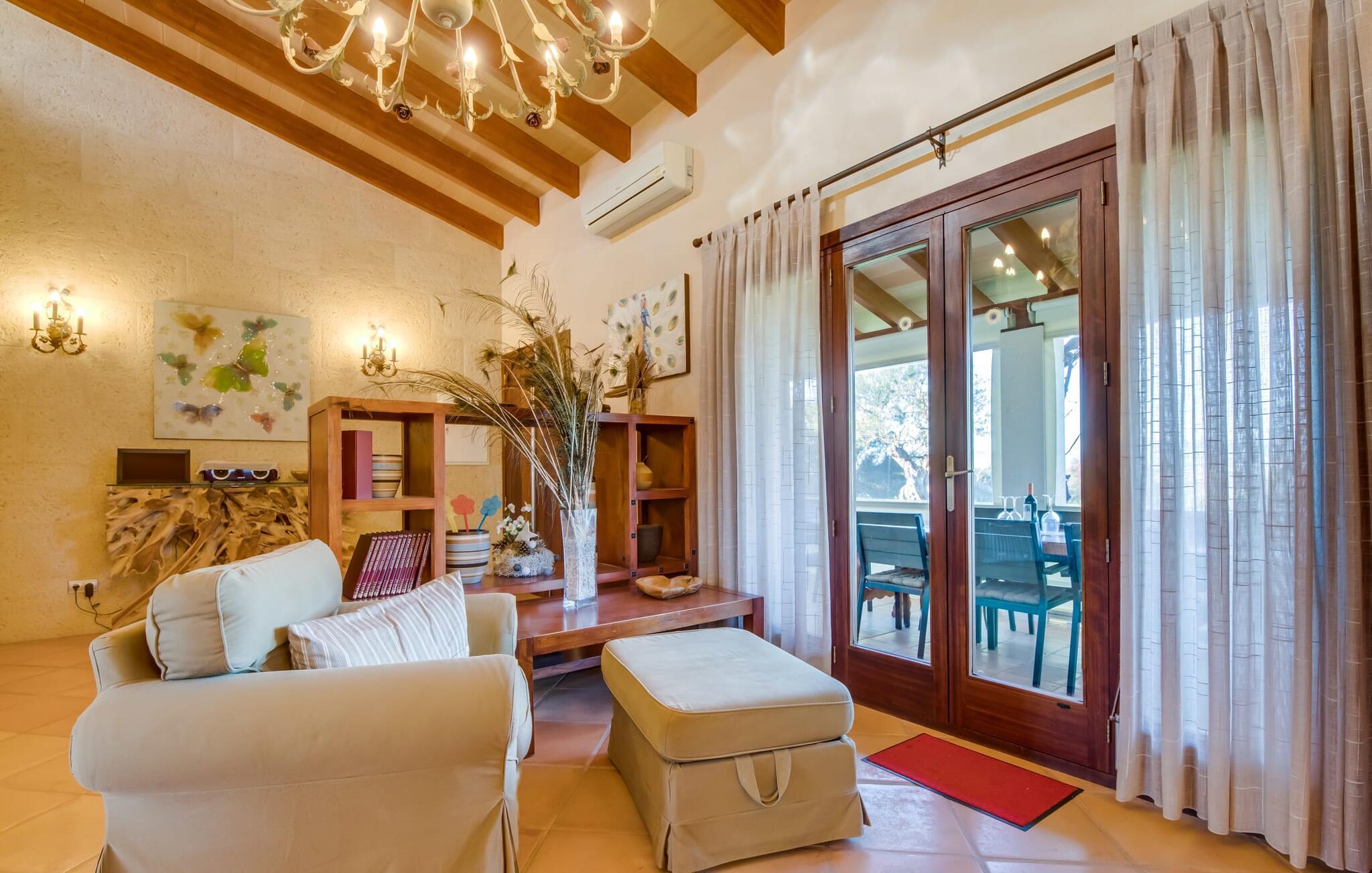 Auch im Erdgeschoss der Finca ist Großzügigkeit angesagt und ergänzt wirkungsvoll die gemütliche Einrichtung. Harmonische Farben, viel Holz und eine gekonnt ausgewählte Beleuchtung und Dekoration setzen klare Maßstäbe in puncto Ästhetik. Besonders einladend ist das große Wohn-Esszimmer mit verschiedenen Plätzen zum Entspannen sowie einem Esstisch und direktem Zugang zur Terrasse. Auch der riesige Flachbildfernseher ist hier installiert. Die komplett mit hochwertigen Geräten ausgestattete Küche ist halboffen und eignet sich mit ihrer großen Kochinsel hervorragend für die Zubereitung von Mahlzeiten. Von hier aus besteht auch ein direkter Zugang nach draußen. Im anderen Teil des Gebäudes befinden sich die fünf komfortabel eingerichteten Doppelzimmer, von denen eines über ein eigenes Bad verfügt. Die anderen Schlafzimmer teilen sich zwei weitere Badezimmer, so dass auch bei Vollbelegung ausreichend Privatsphäre gewährleistet ist. Dieses charmante Bauernhaus auf Mallorca punktet nicht nur mit der Nähe zum Meer, sondern auch mit der Nähe zum Meer, da es nur etwa 15 Autominuten von Playa de Muro und nur zehn von Can Picafort entfernt ist. Auch nach Sa Pobla mit seinen guten Einkaufsmöglichkeiten ist es nicht weit. Durch die Lage in der Nähe mehrerer Straßen, die je nach Wind auch akustisch wahrnehmbar sind, ist die Verkehrsanbindung hier besonders gut. Das üppige und sehr gepflegte Anwesen macht auch längere Aufenthalte auf dem Bauernhofgelände sehr attraktiv.