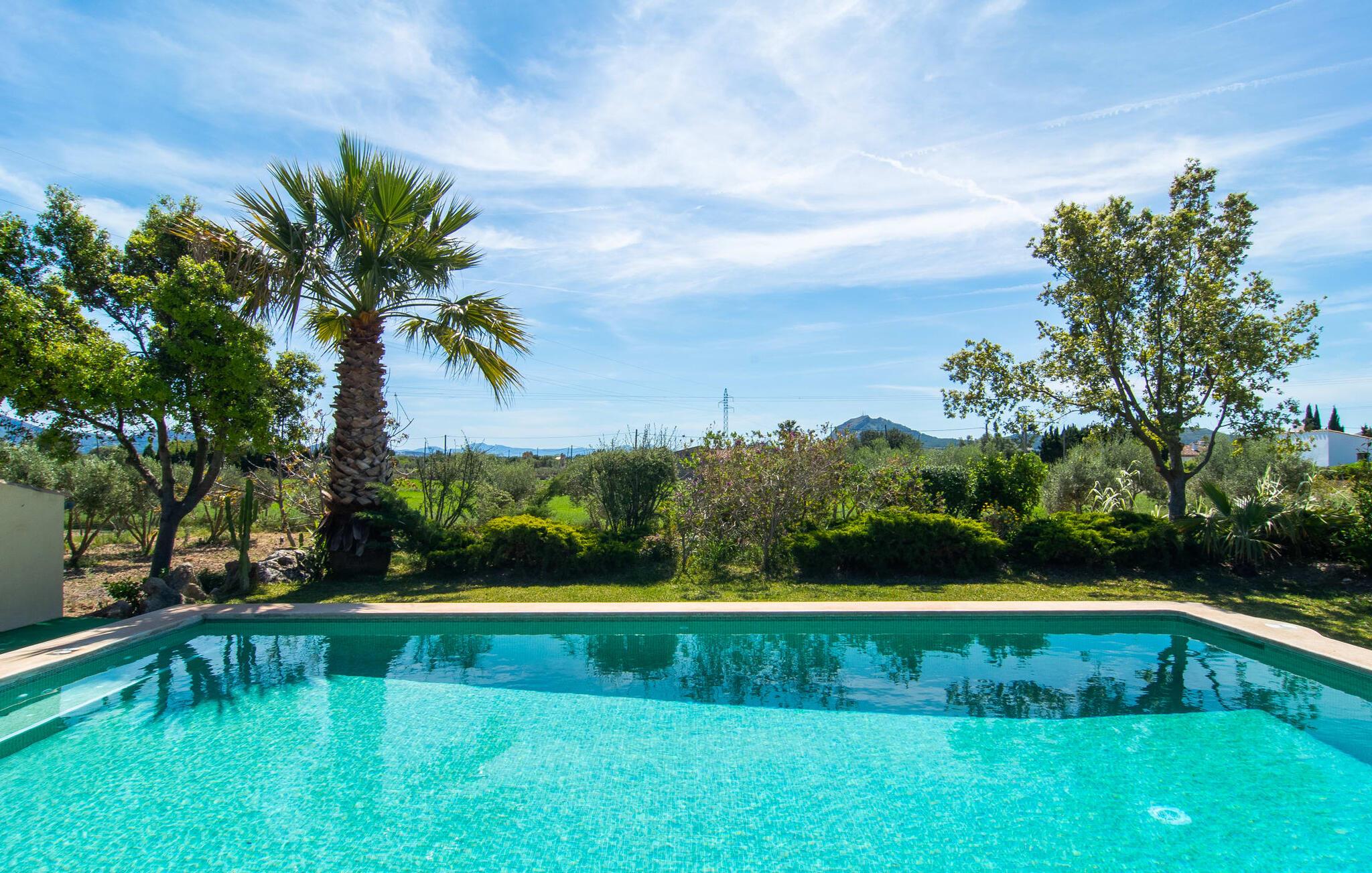 Die Finca liegt in ländlicher Lage, unweit des Naturschutzgebietes S'Albufera im Nordosten Mallorcas. Der Strand der Bucht von Pollença ist 8 Minuten entfernt; Der 7 km lange Sandstrand bei Alcúdia ist nur 20 Minuten entfernt. Einkaufsmöglichkeiten, Restaurants und Cafés finden Sie im 6 km entfernten Pollença, aber auch im schönen Hafen von Puerto de Alcúdia, knapp 10 km von Ihrem Ferienhaus entfernt.