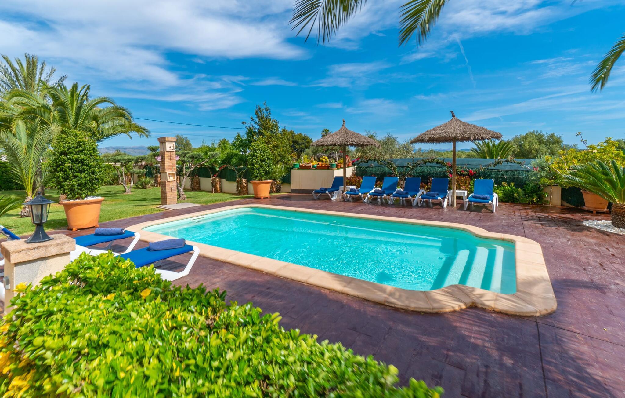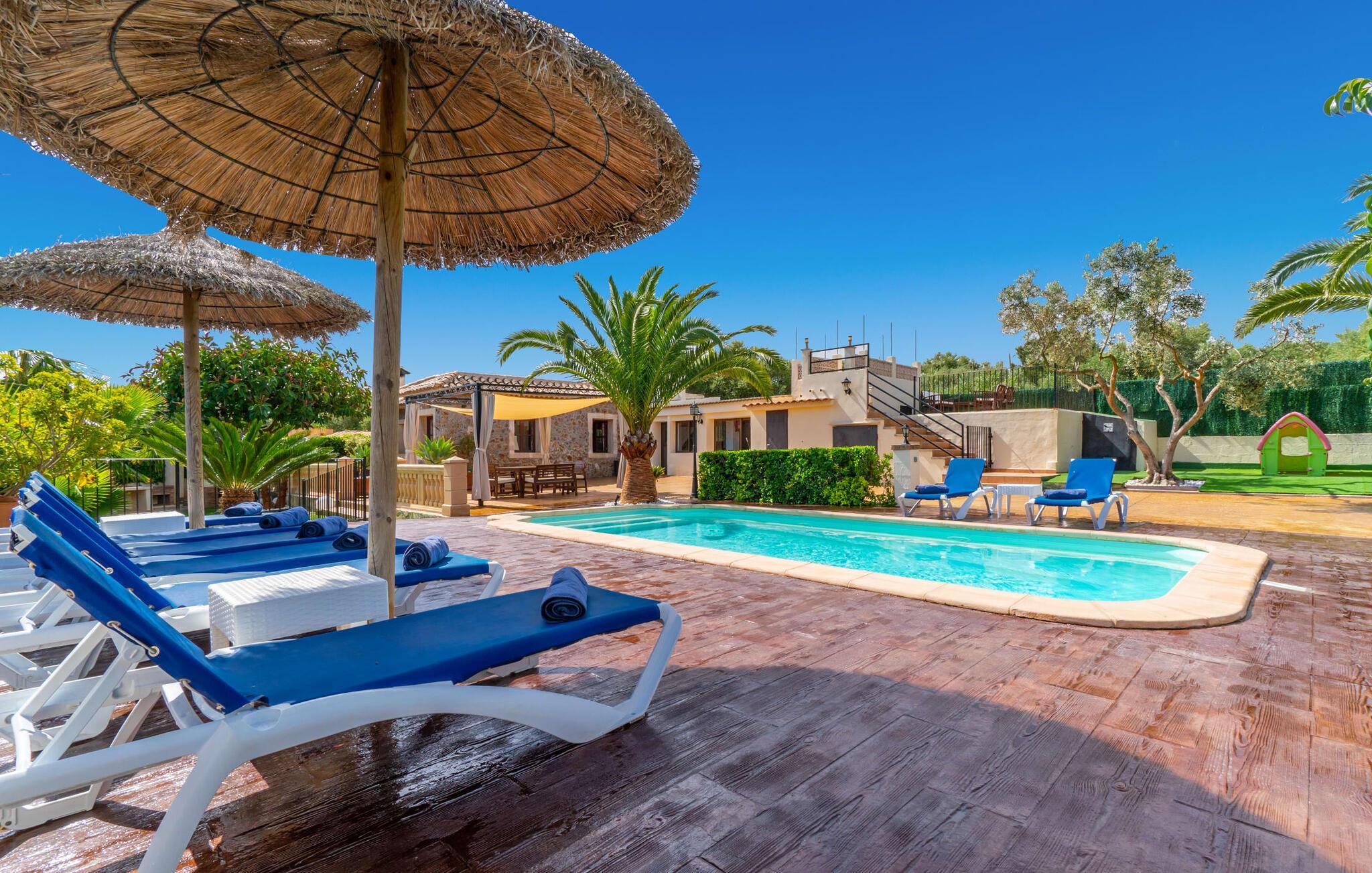 Das Bauernhaus „Ca Na Pepa“ ist ein außergewöhnlich gepflegtes und vielseitiges Anwesen mit einem wunderschönen Garten. Grüne Rasenflächen, Palmen und andere mediterrane Vegetation prägen den Außenbereich, der viel Abwechslung für Groß und Klein bietet. Auf den großzügigen Terrassenflächen finden Sie wunderbare Liege- und Sitzmöglichkeiten.