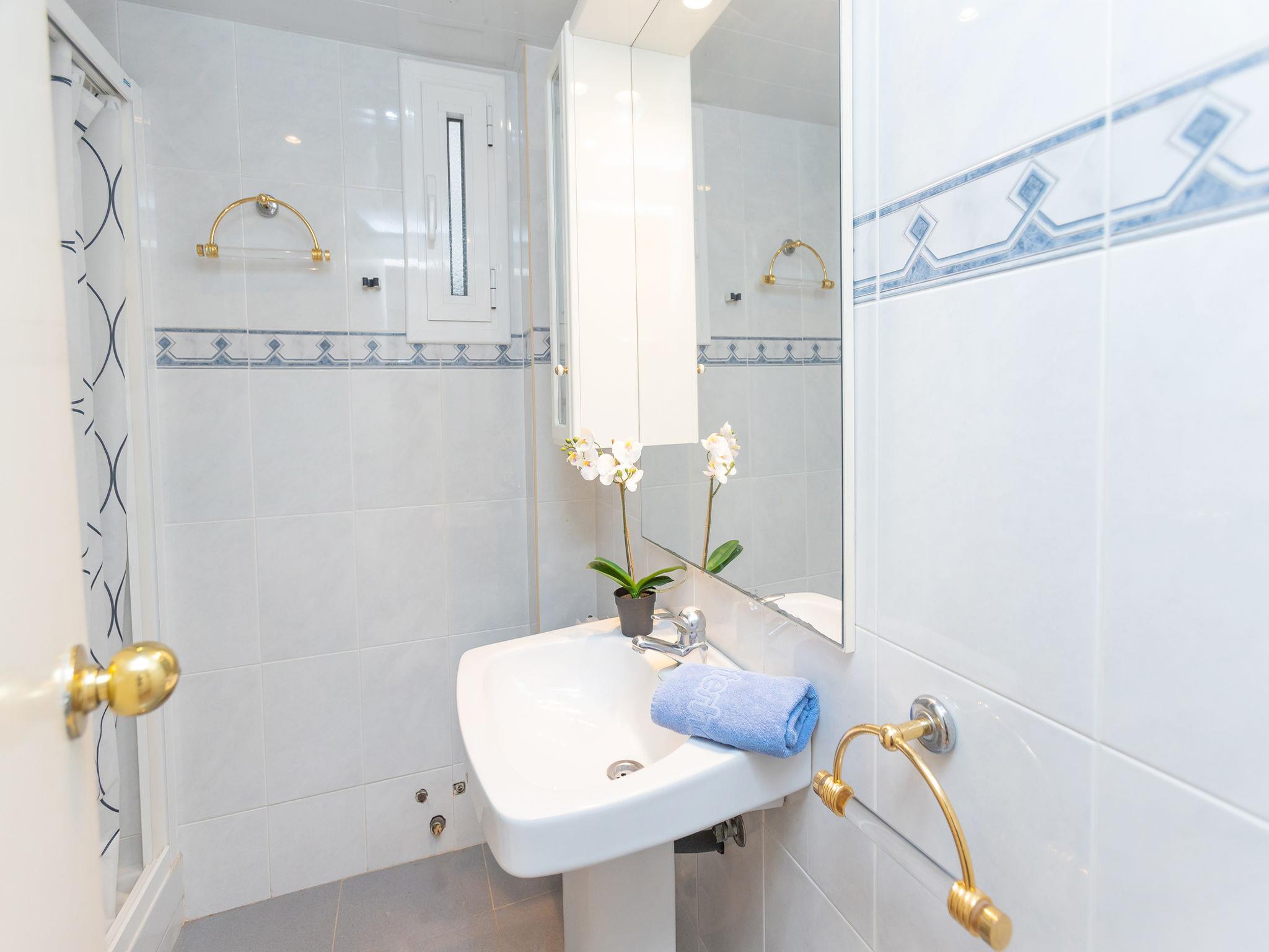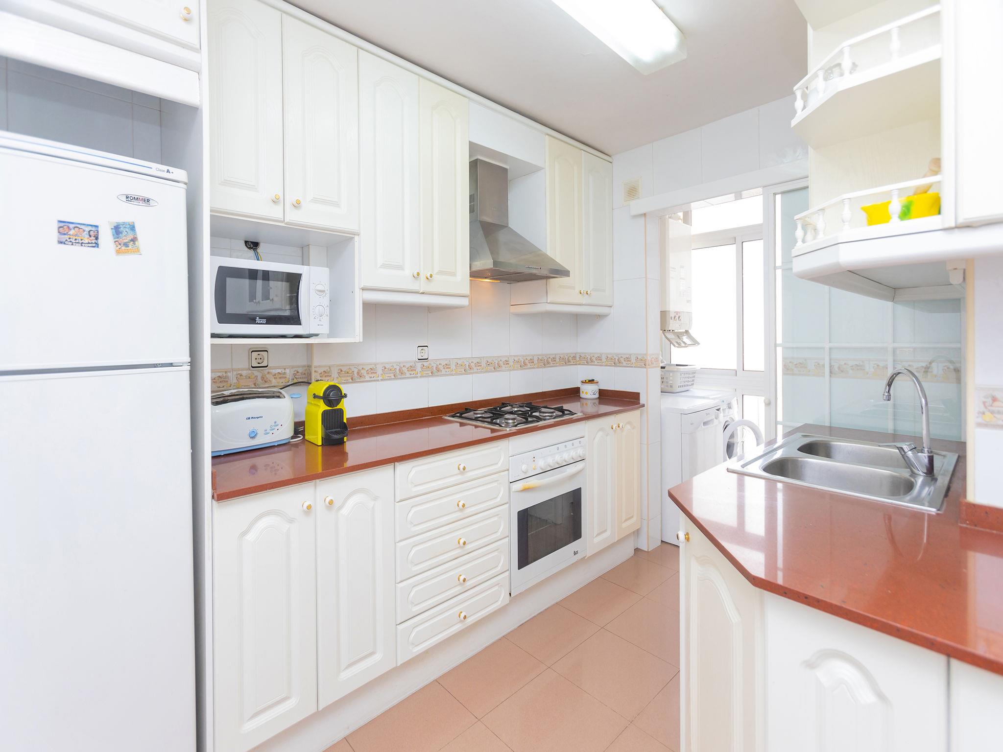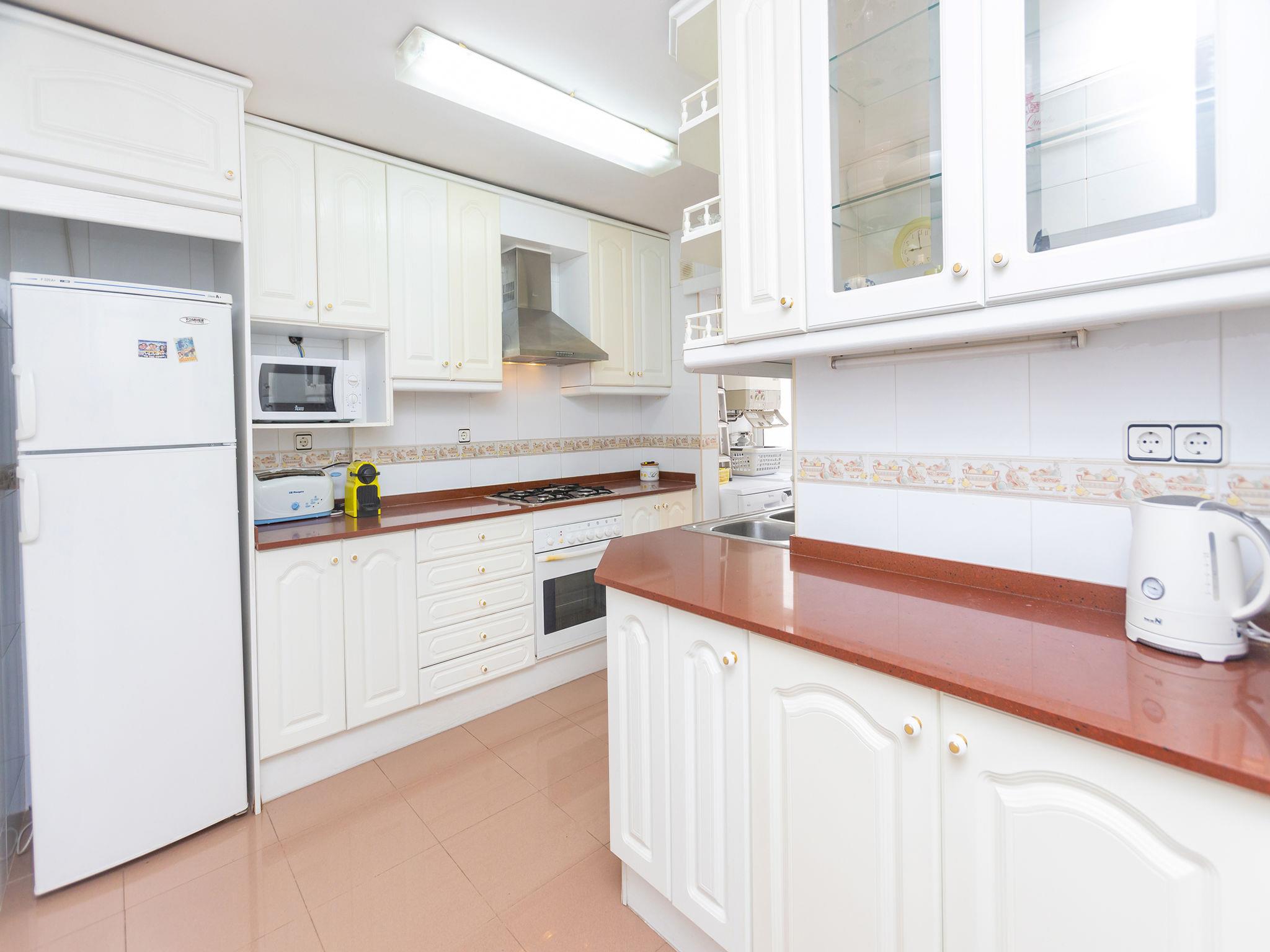5-Zimmer-Wohnung 90 m2 im 6. Stock. Zweckmässig und komfortabel eingerichtet: Wohn-/Esszimmer mit Digital-TV und Klimaanlage. Ausgang zur Terrasse. 1 Zimmer mit 1 franz. Bett und Bad/WC. Ausgang zur Terrasse. 1 Zimmer mit 1 Bett. 1 Zimmer mit 1 Bett. 1 Zimmer mit 1 franz. Bett. Küche (4 Kochplatten, Backofen, Geschirrspüler, Mikrowelle, Tiefkühler, elektrische Kaffeemaschine, Kapseln für die Kaffeemaschine (Nespresso) extra). Dusche/WC. Keine Heizmöglichkeit. Terrasse. Terrassenmöbel. Sicht auf das Meer. Zur Verfügung: Waschmaschine, Bügeleisen, Babybett bis 2 Jahre, Haartrockner. Internet (WLAN, gratis). Geeignet für Familien. HUTT009107 // Reg. Nr.: ESFCTU000043025000113463000000000000000000HUTT0091078