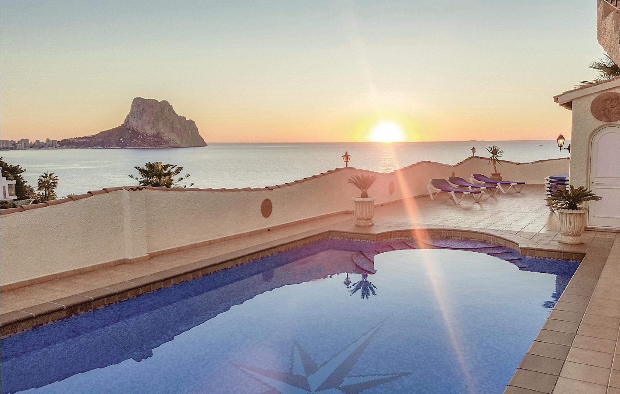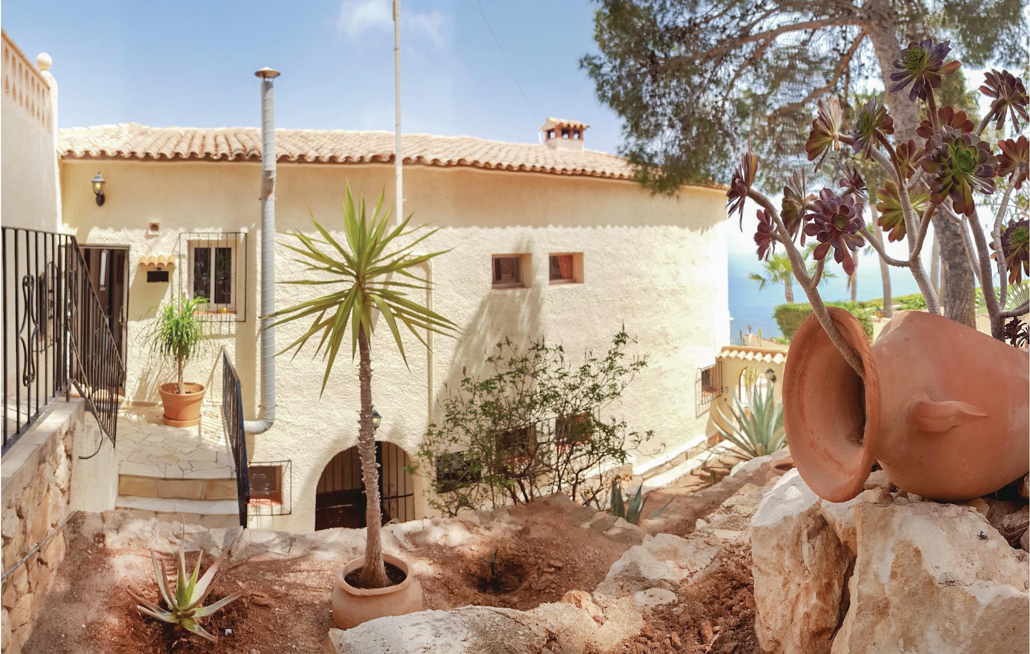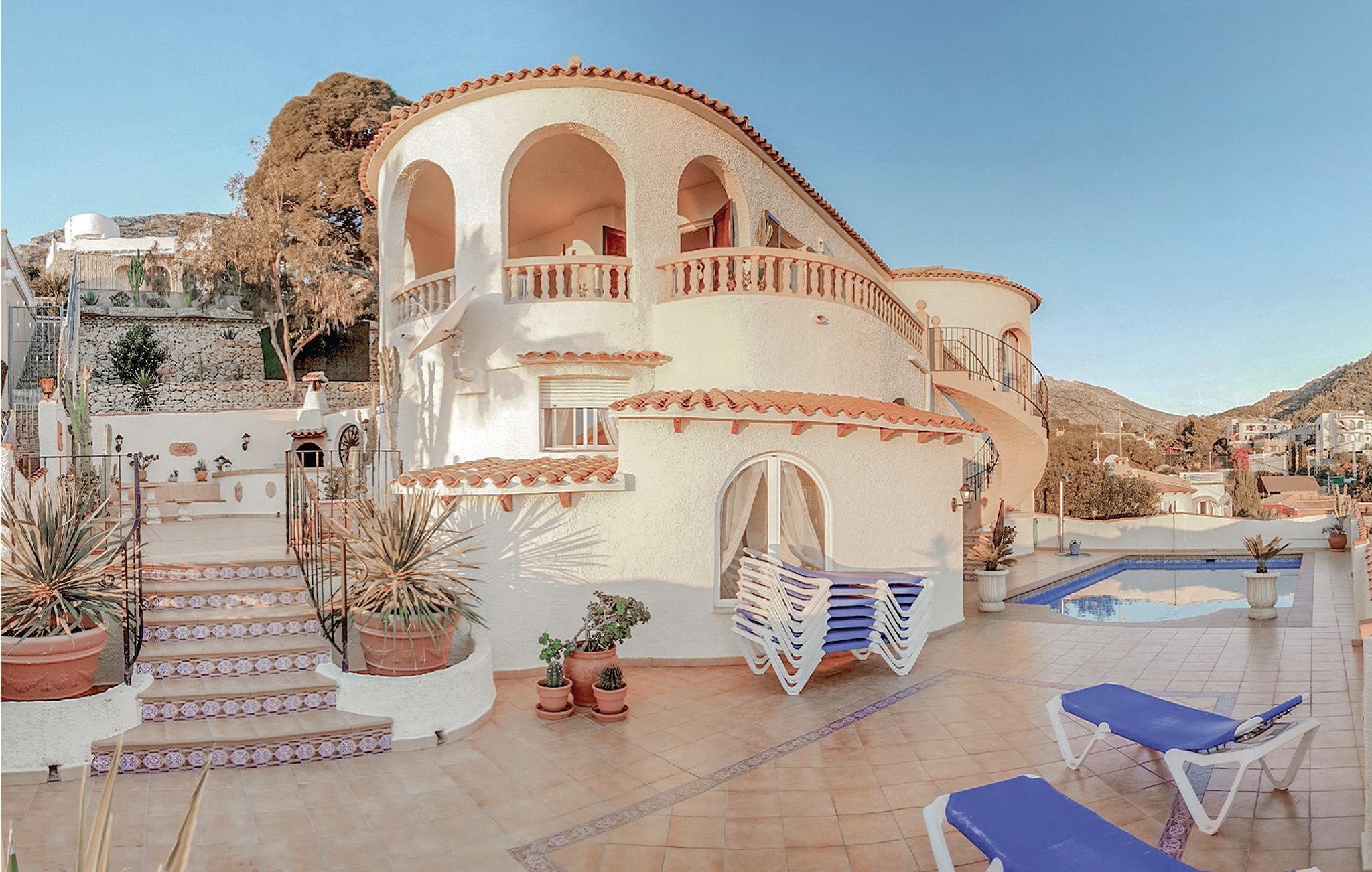 Dieses Haus bietet Ihnen einen traumhaften Panoramablick auf das Meer und den Penon de Ifach. Sie finden es in einer ruhigen Sackgasse der Urbanisation Maryvilla. Auf drei Etagen beherbergt es separate Wohneinheiten, und durch die individuelle Aufteilung der Räumlichkeiten können hier mehrere Familien oder Paare gemeinsam Urlaub machen, aber dennoch getrennt wohnen. Im Obergeschoss befinden sich drei Schlafzimmer, ein Bad, eine Küche sowie ein Wohnzimmer. Auf der Poolebene liegt eine Einheit mit einem Schlafzimmer, Wohnraum, Bad und einer Küche. Im Souterrain schließlich gibt es zwei Schlafzimmer, ein Bad sowie eine Wohnküche. Die Einrichtung ist gemütlich rustikal. Rund um den Pool gibt es viel Platz zum Sonnen und für gemeinsame Abende eine schöne Grillecke. Tennisplätze befinden sich in unmittelbarer Nähe, und der nächste Golfplatz ist 1,5 km entfernt. Für Ausflüge werden im Hafen von Calpe verschiedene Bootstouren angeboten, wo am Abend auch Fischauktionen stattfinden. Die Fischrestaurants hier im Hafen sind auch immer einen Besuch wert. Calpe hat einen ausgedehnten Sandstrand, aber mit teils auch felsigen Abschnitten. Etwas im Hinterland prägen alte Salinen das Bild. Besonders reizvoll ist es, die Costa Blanca während der Mandelblüte im Januar und Februar zu besuchen.
