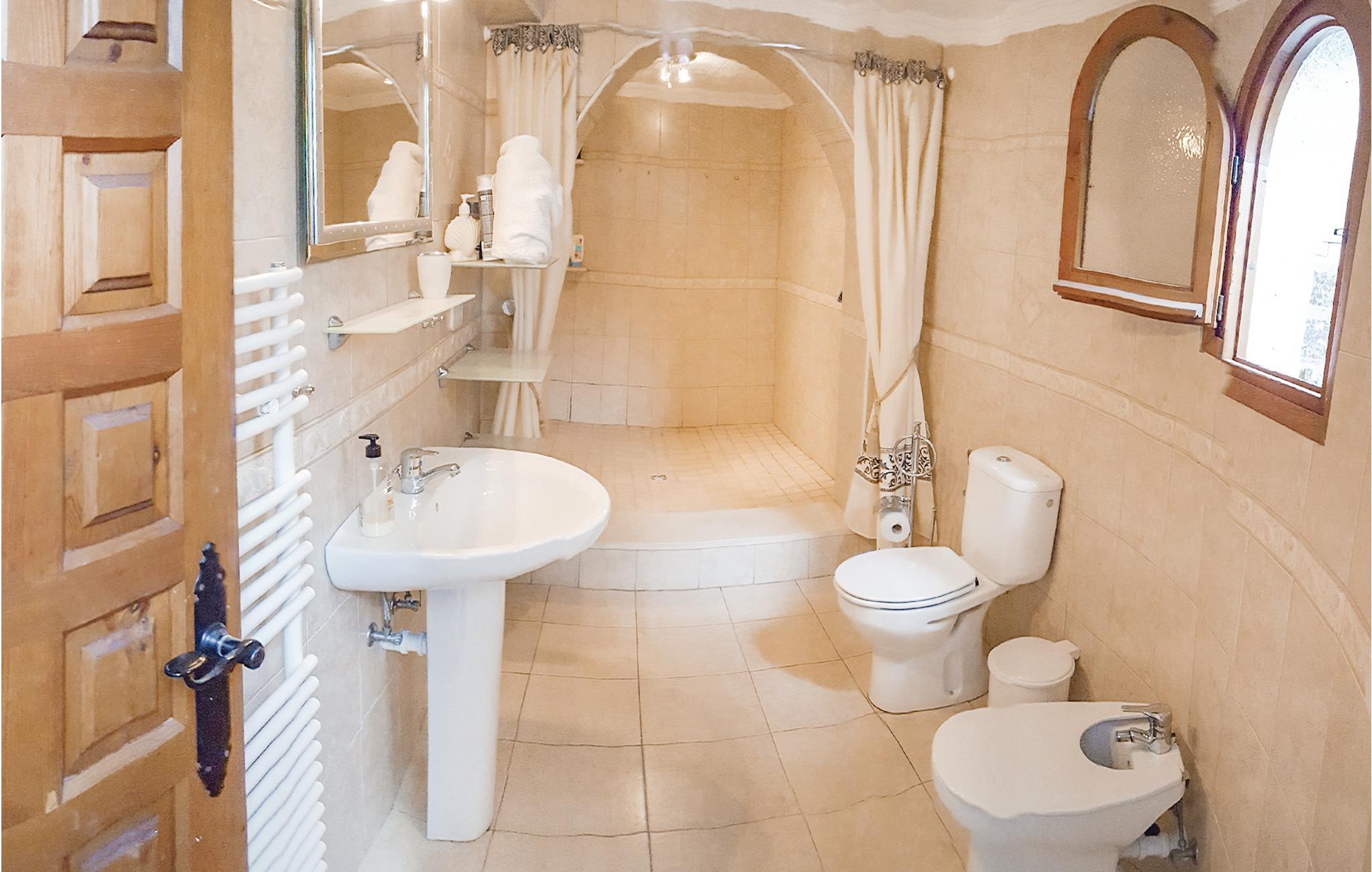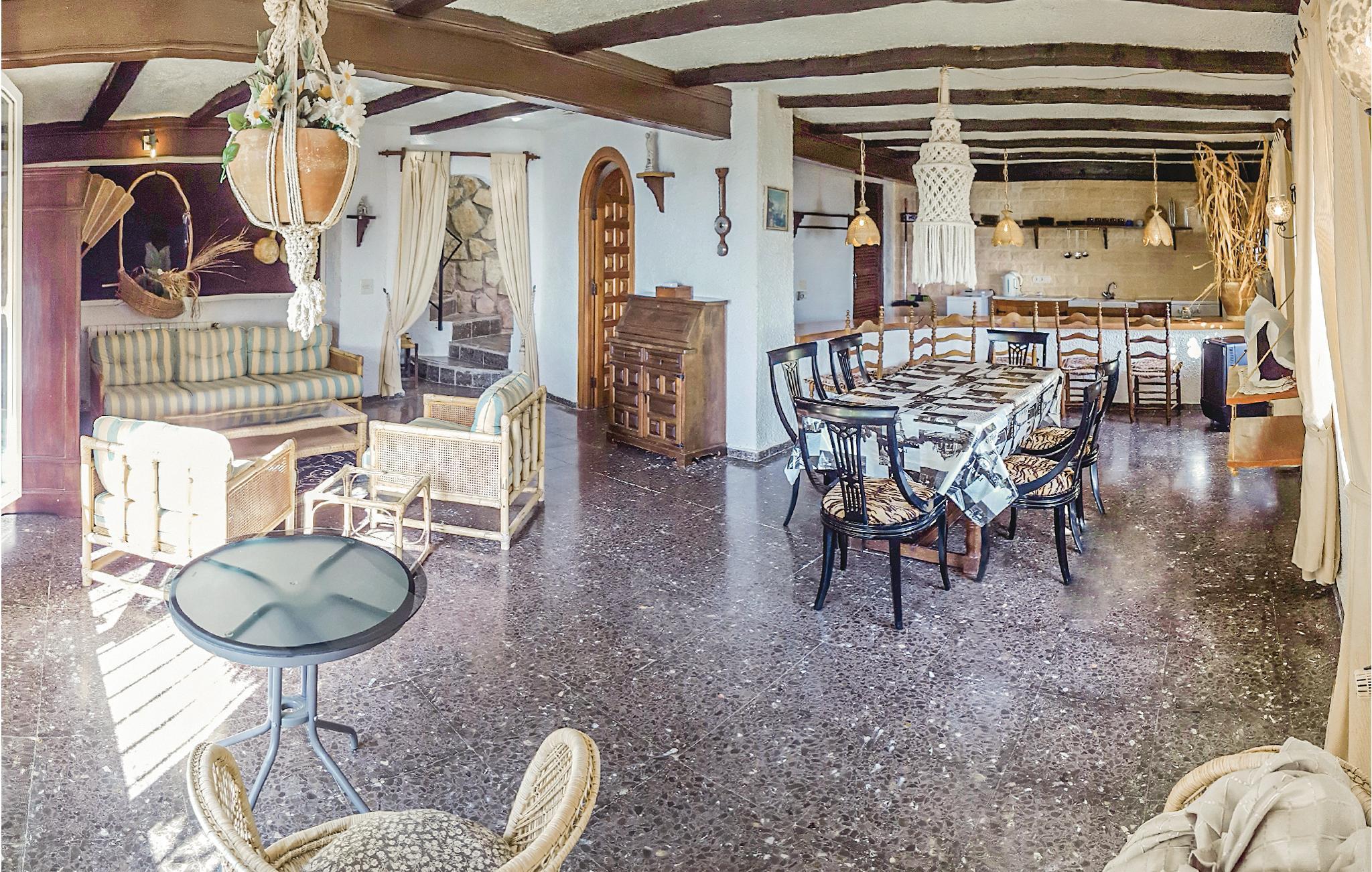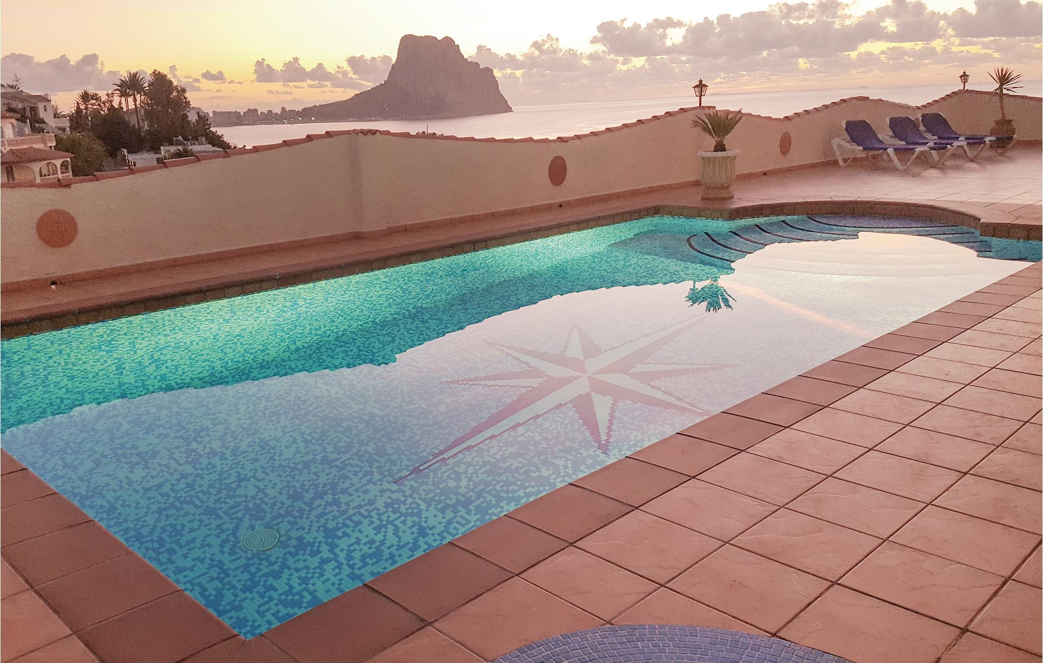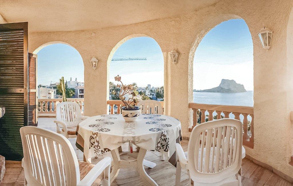 Dieses Haus bietet Ihnen einen traumhaften Panoramablick auf das Meer und den Penon de Ifach. Sie finden es in einer ruhigen Sackgasse der Urbanisation Maryvilla. Auf drei Etagen beherbergt es separate Wohneinheiten, und durch die individuelle Aufteilung der Räumlichkeiten können hier mehrere Familien oder Paare gemeinsam Urlaub machen, aber dennoch getrennt wohnen. Im Obergeschoss befinden sich drei Schlafzimmer, ein Bad, eine Küche sowie ein Wohnzimmer. Auf der Poolebene liegt eine Einheit mit einem Schlafzimmer, Wohnraum, Bad und einer Küche. Im Souterrain schließlich gibt es zwei Schlafzimmer, ein Bad sowie eine Wohnküche. Die Einrichtung ist gemütlich rustikal. Rund um den Pool gibt es viel Platz zum Sonnen und für gemeinsame Abende eine schöne Grillecke. Tennisplätze befinden sich in unmittelbarer Nähe, und der nächste Golfplatz ist 1,5 km entfernt. Für Ausflüge werden im Hafen von Calpe verschiedene Bootstouren angeboten, wo am Abend auch Fischauktionen stattfinden. Die Fischrestaurants hier im Hafen sind auch immer einen Besuch wert. Calpe hat einen ausgedehnten Sandstrand, aber mit teils auch felsigen Abschnitten. Etwas im Hinterland prägen alte Salinen das Bild. Besonders reizvoll ist es, die Costa Blanca während der Mandelblüte im Januar und Februar zu besuchen.