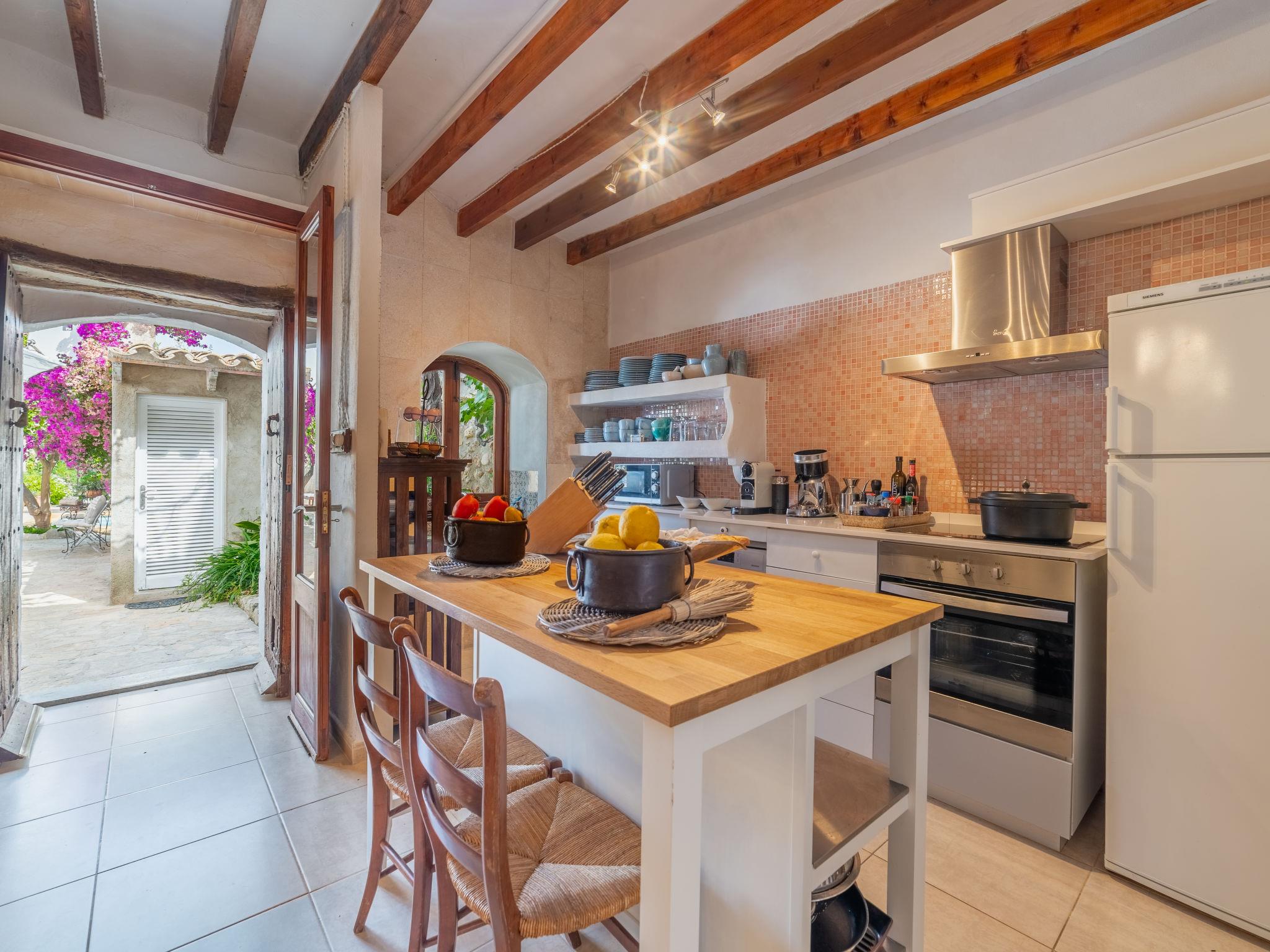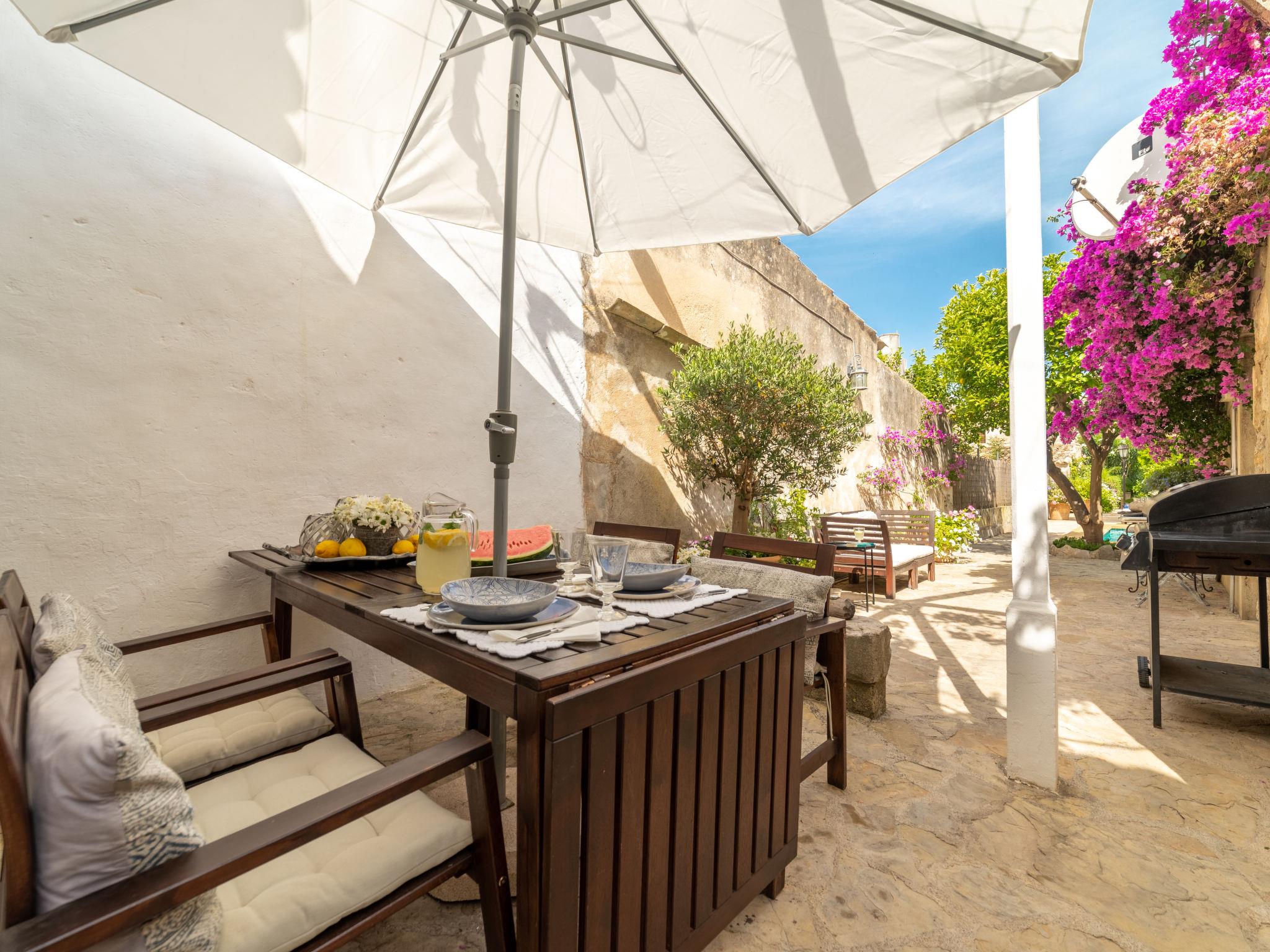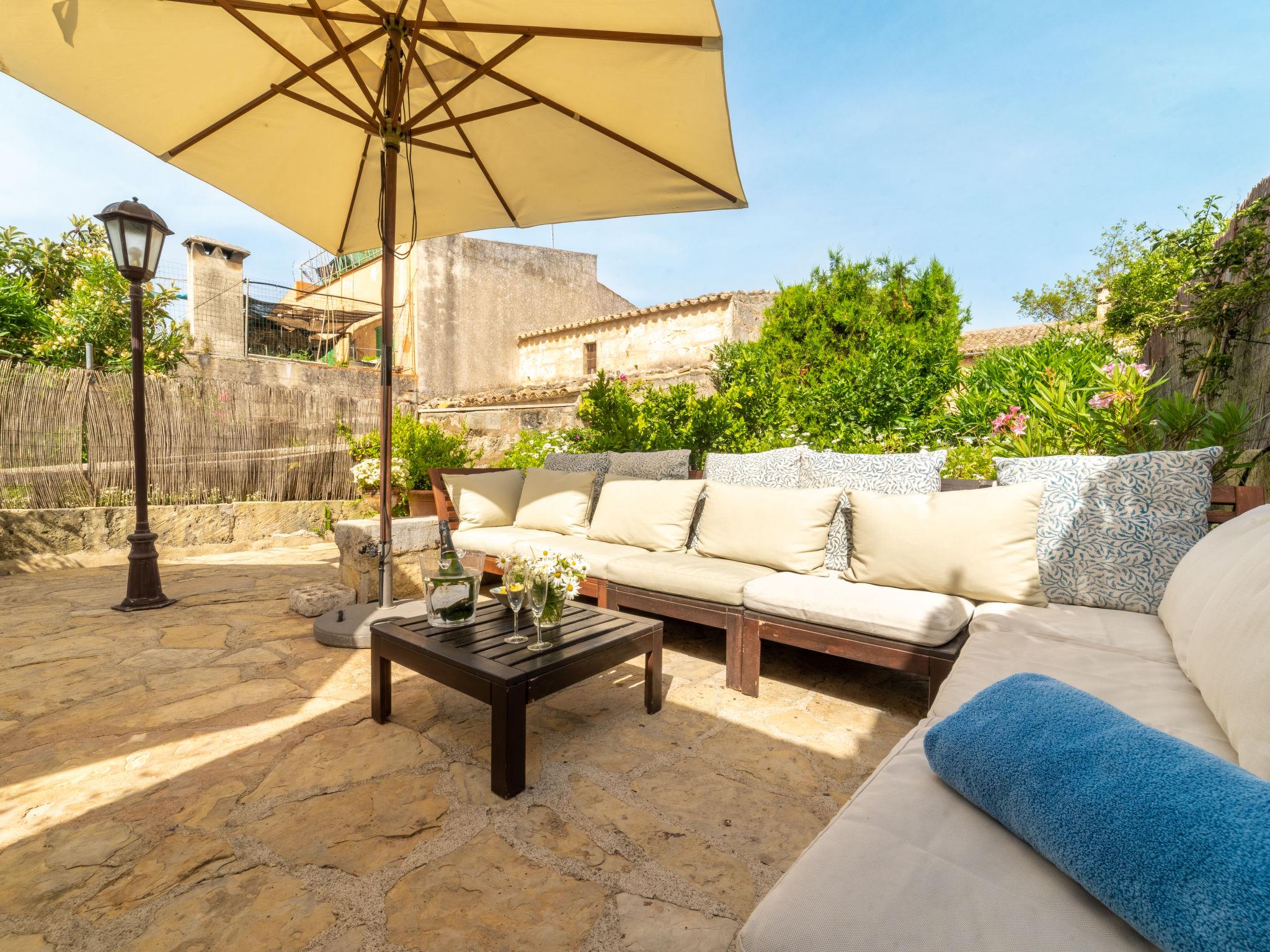 "Sa Teulera", 3-Zimmer-Reihenhaus 150 m2 auf 2 Stockwerken. Objekt geeignet für 6 Erwachsene. Teilweise abgeschrägt, vollständig renoviert, schön und geschmackvoll eingerichtet: Wohnzimmer mit TV und Internationale TV-Sender. Esszimmer mit offenem Kamin, Esstisch und Klimaanlage. Ausgang zum Gartensitzplatz, zum Schwimmbad. Küche (Backofen, Geschirrspüler, 3 Glaskeramikplatten, Mikrowelle, Tiefkühler, elektrische Kaffeemaschine, Kochinsel) mit Esstisch. Ausgang zum Gartensitzplatz, zum Schwimmbad. Obergeschoss: 1 Doppelzimmer mit 1 franz. Bett, TV, Klimaanlage und Warmluftheizung. 1 Doppelzimmer mit 2 franz. Betten, Klimaanlage und Warmluftheizung. Bad/Dusche. Natursteinboden. Komfortable Einrichtung im Landhausstil. Grosser Gartensitzplatz. Terrassenmöbel, Gartengrill, Liegestühle, Sitzplatz. Eingeschränkte auf das Schwimmbad, den Garten, die Landschaft und die Ortschaft. Zur Verfügung: Waschmaschine, Bügeleisen, Kinderhochstuhl, Babybett bis 2 Jahre. Internet (WLAN, gratis). Beim Haus. Geeignet für Familien. ETV12662 // Reg. Nr.: ESFCTU0000070220002601330000000000000000000ETV/126623